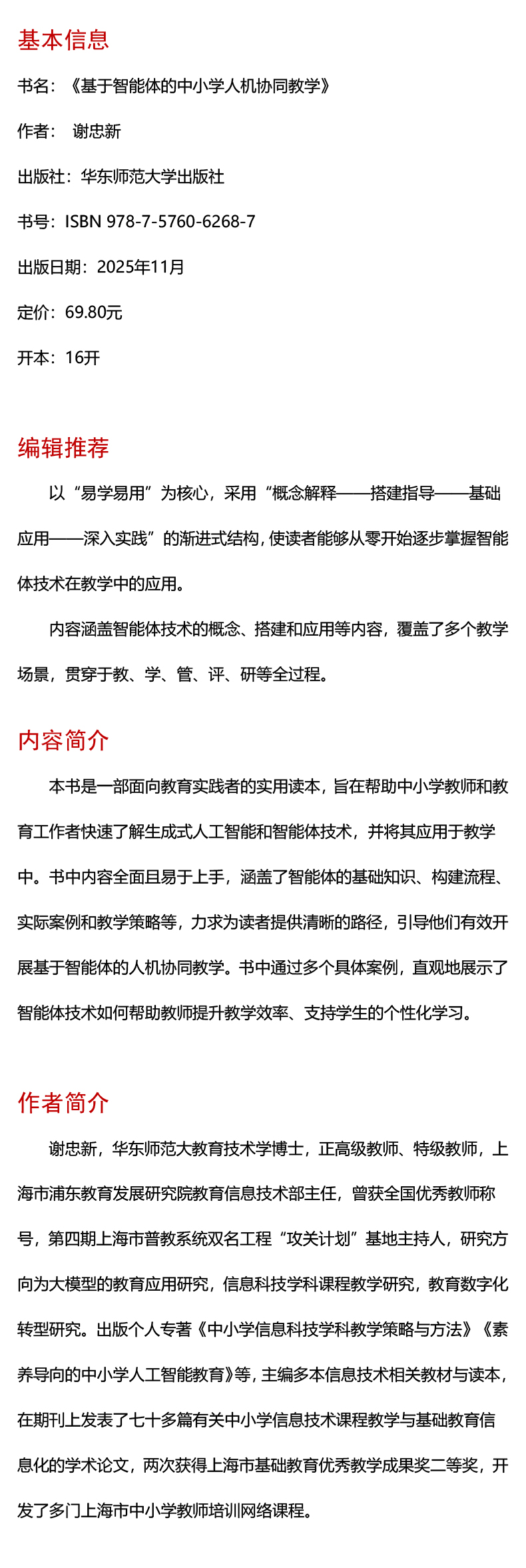 基于智能体的中小学人机协同教学 谢忠新 人工智能 智能体技术