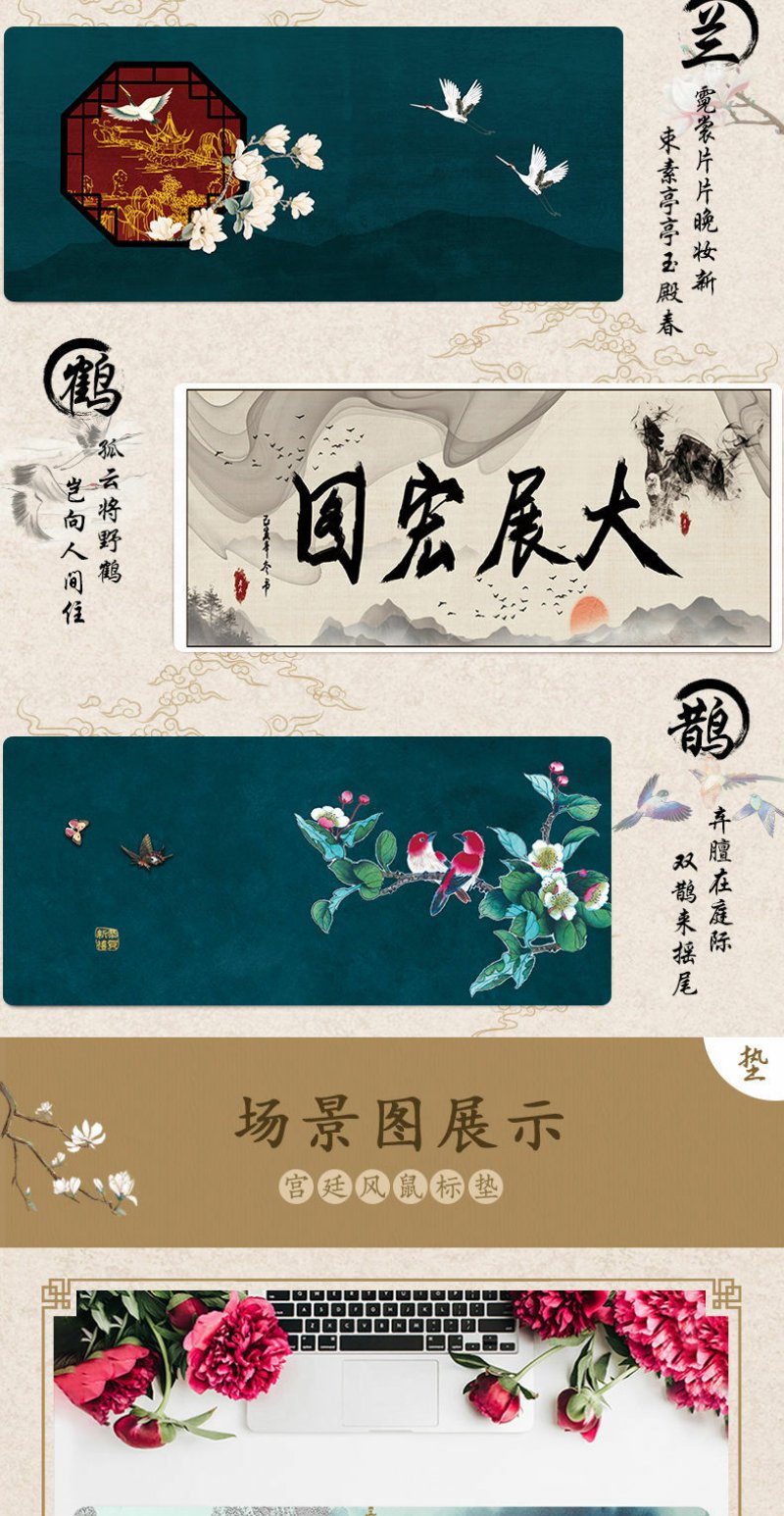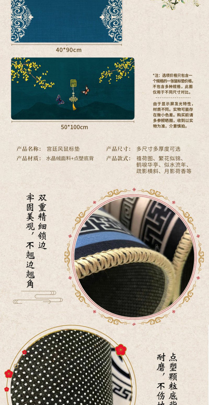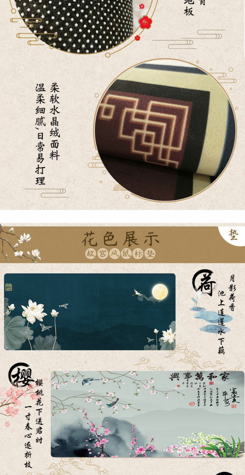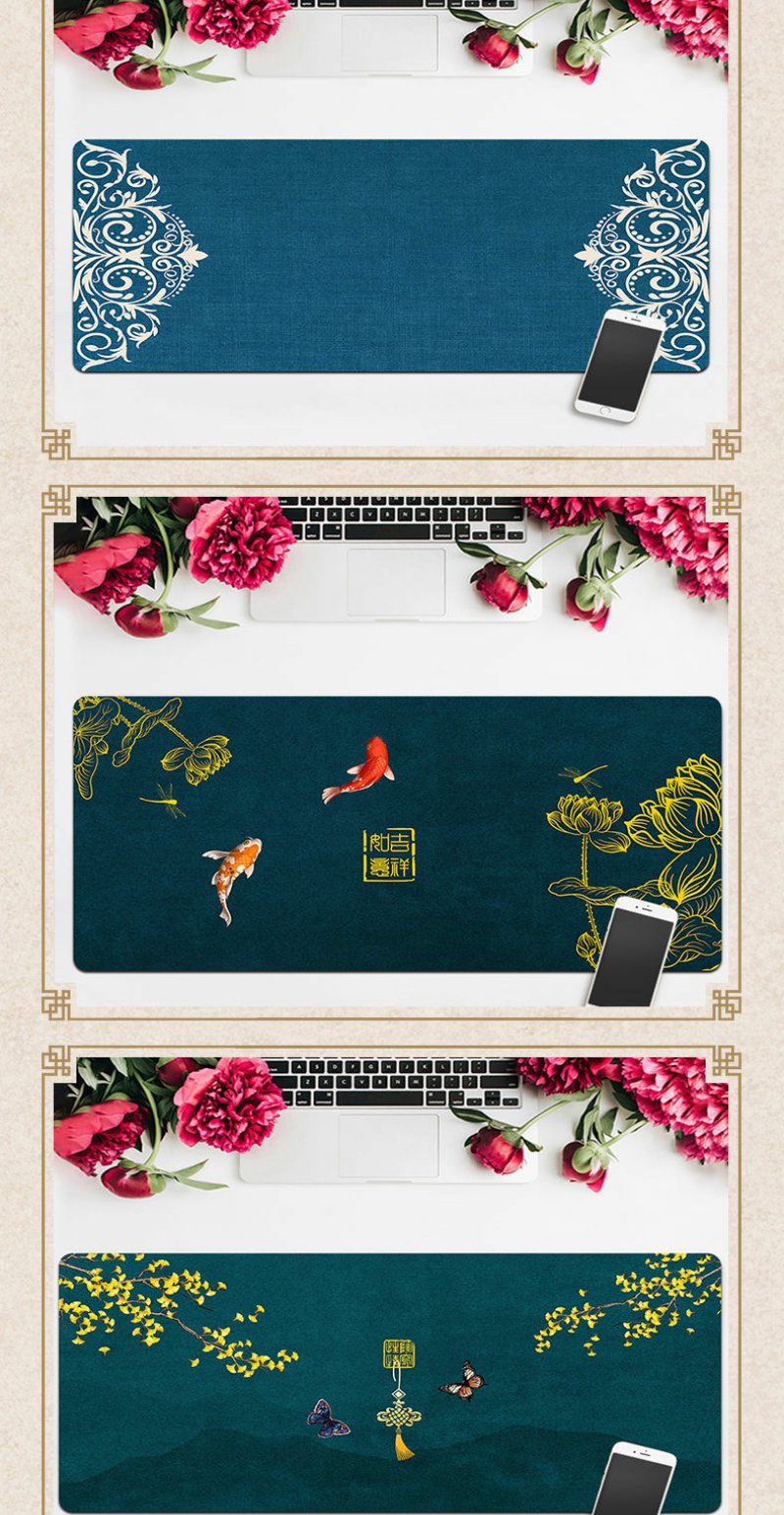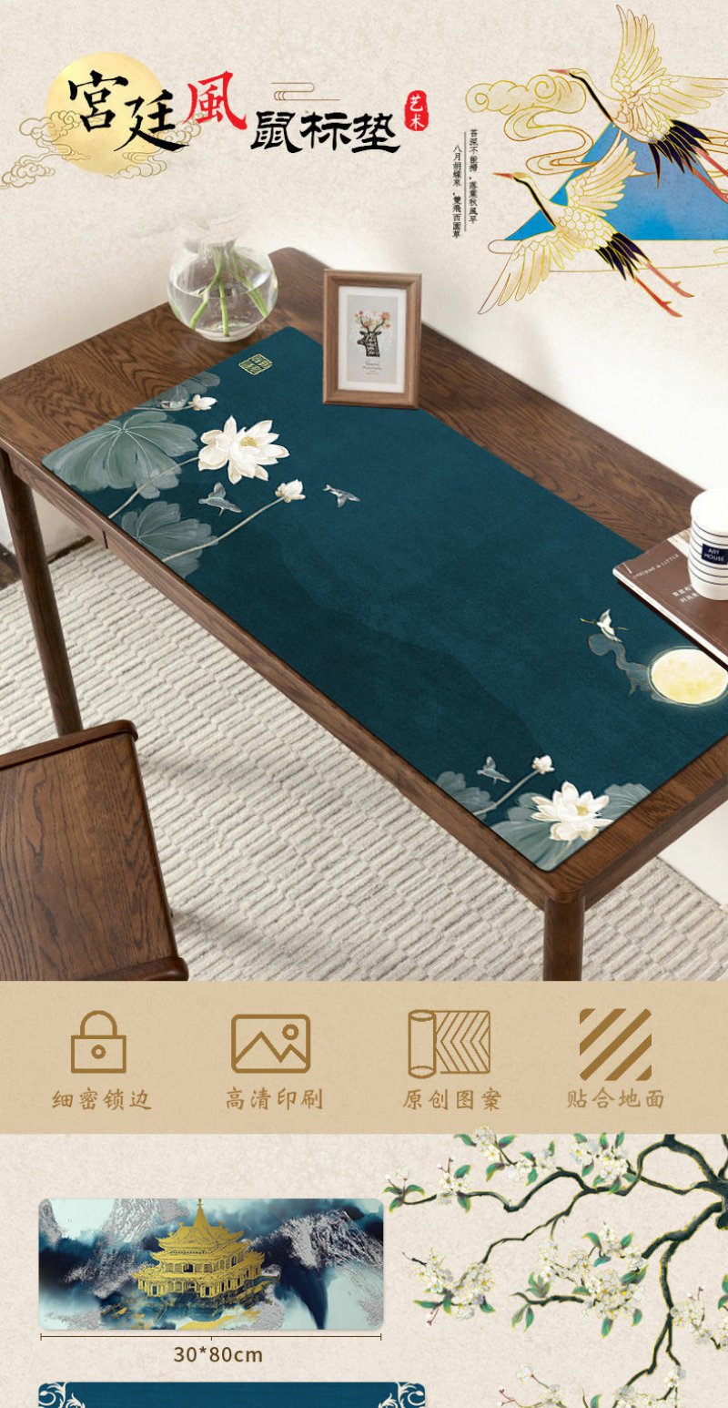 鼠标垫超大号国潮中国风电脑桌垫创意加厚锁边文艺办公桌垫键盘垫