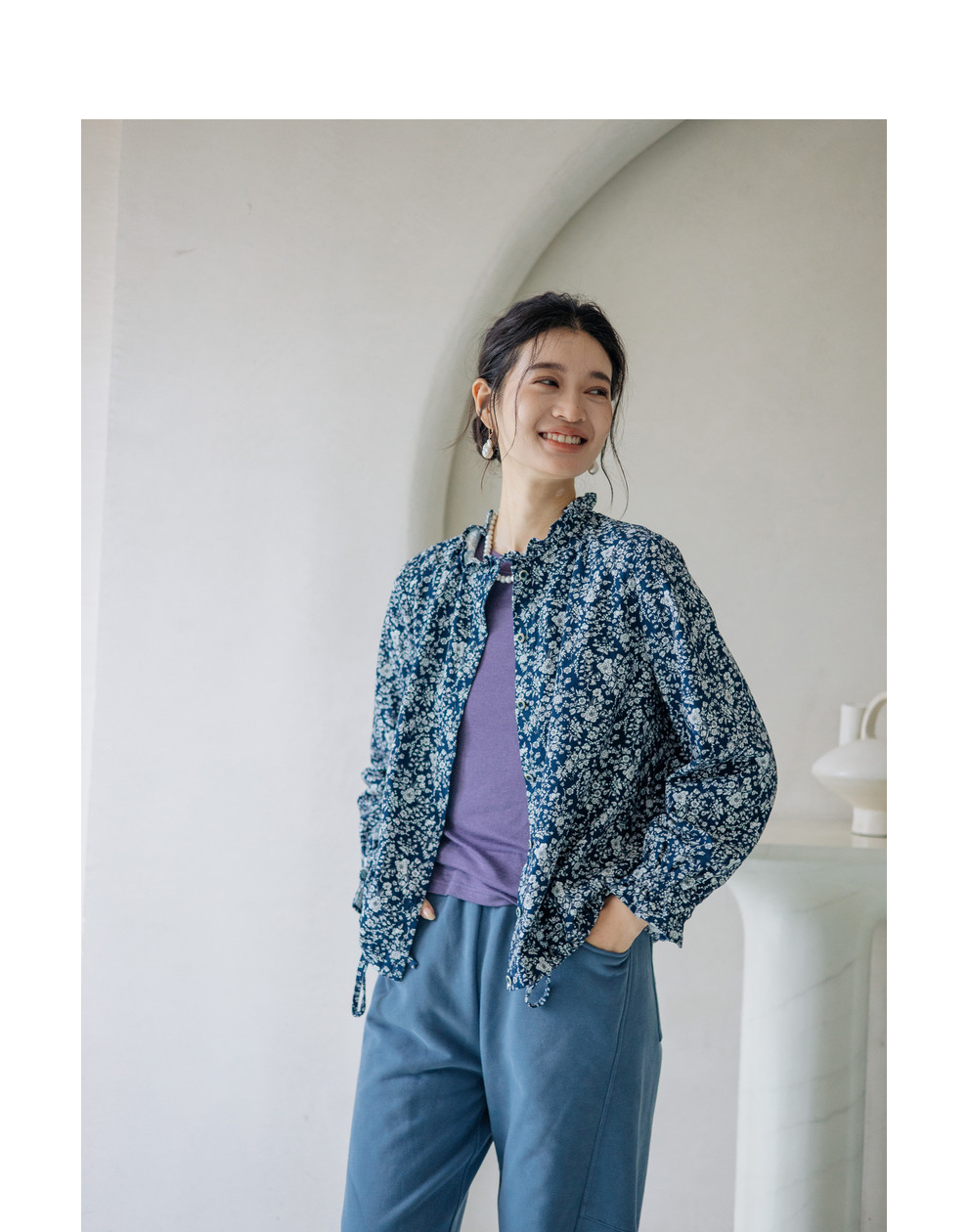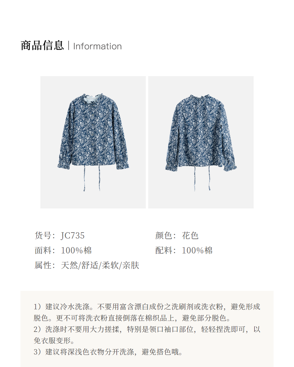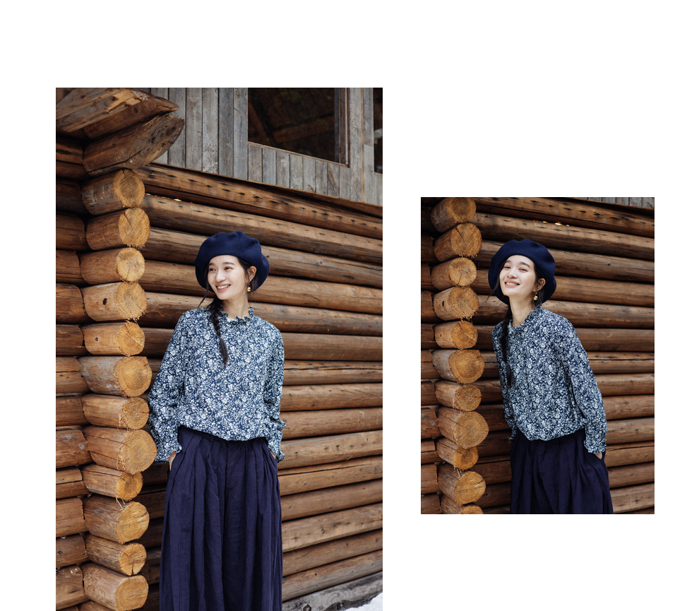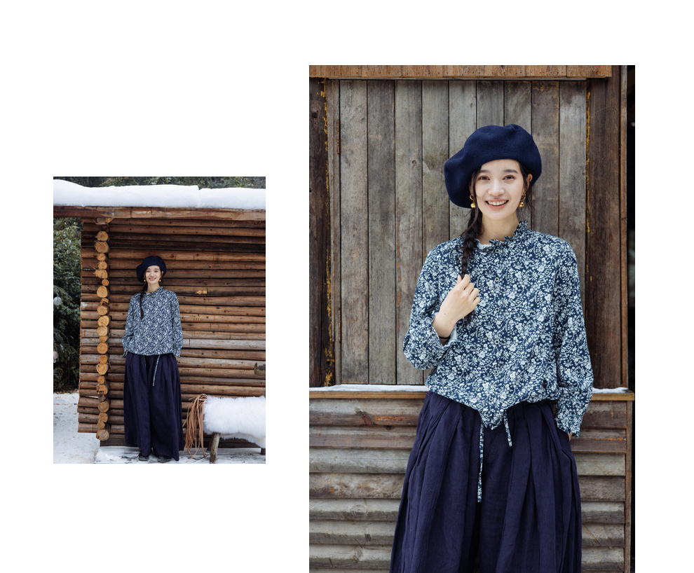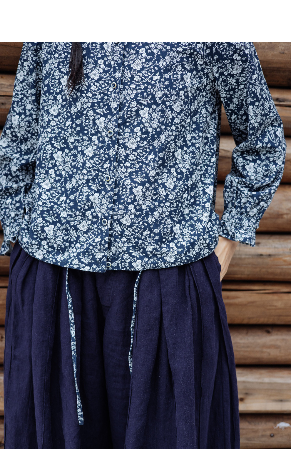 绽放735朵/碎花木耳边拼接国风感印花叠穿系带开襟文艺长袖衬衫
