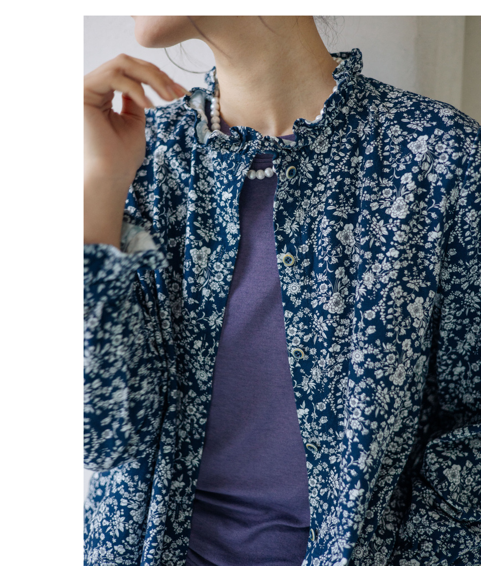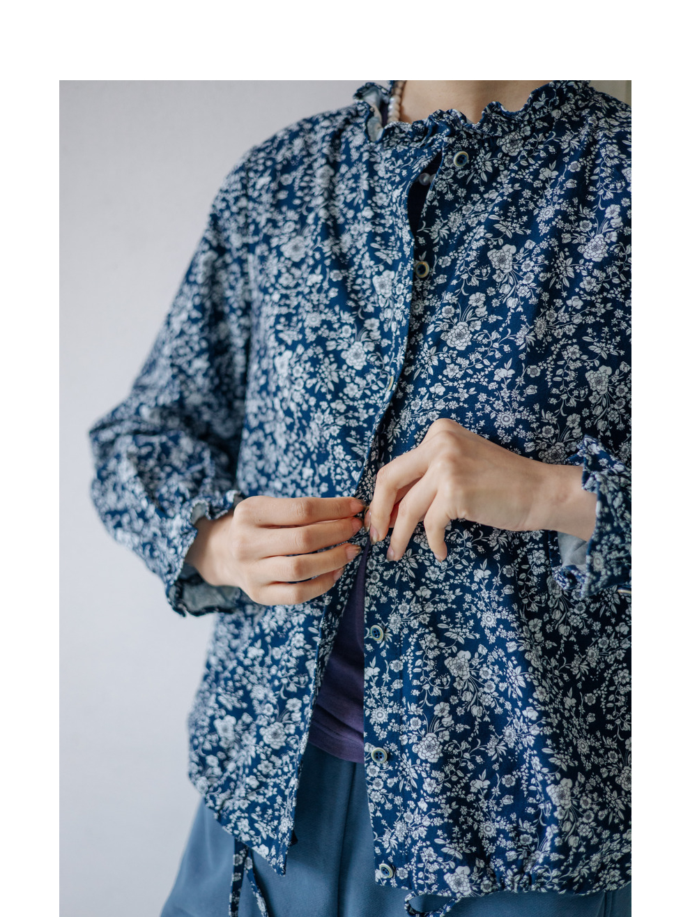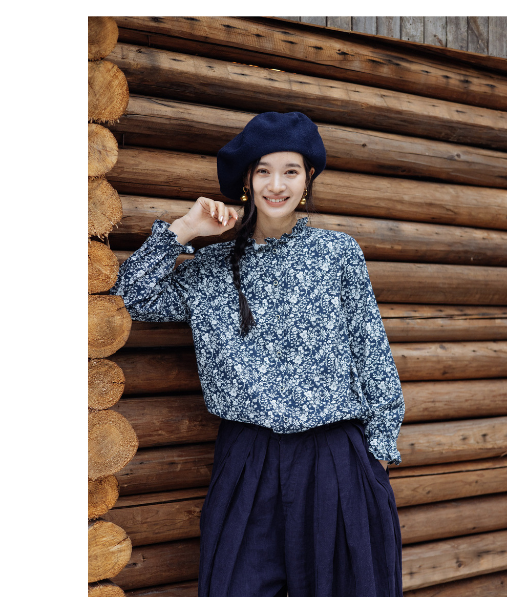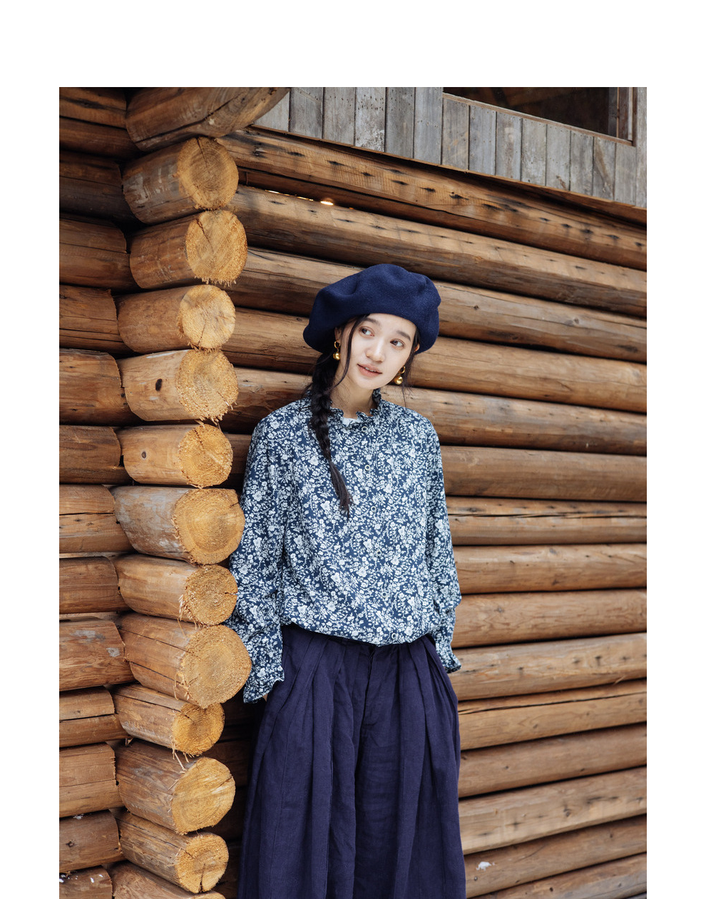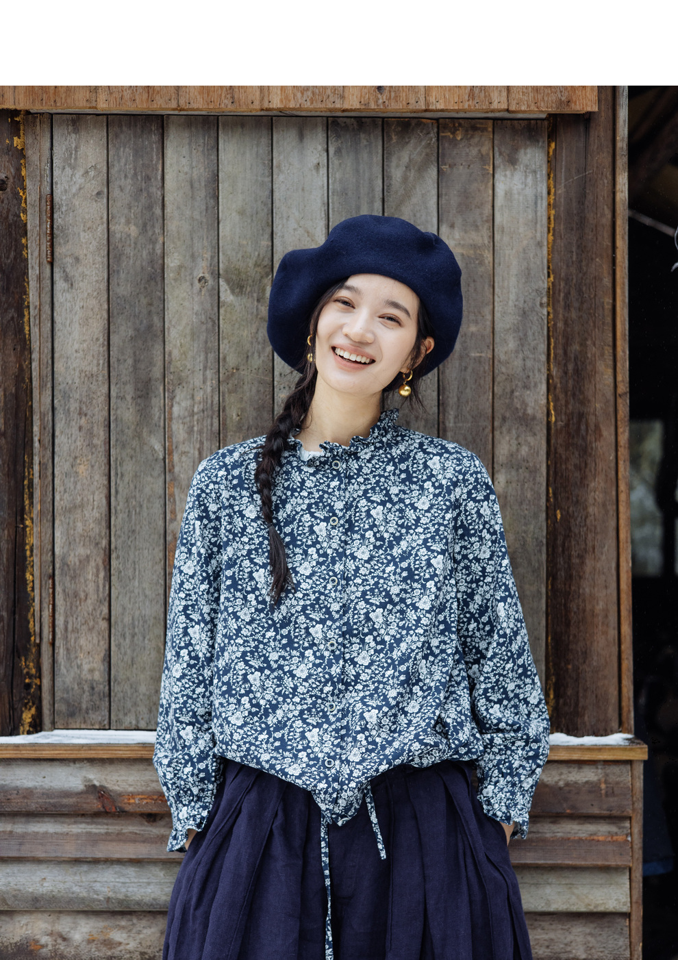 绽放735朵/碎花木耳边拼接国风感印花叠穿系带开襟文艺长袖衬衫