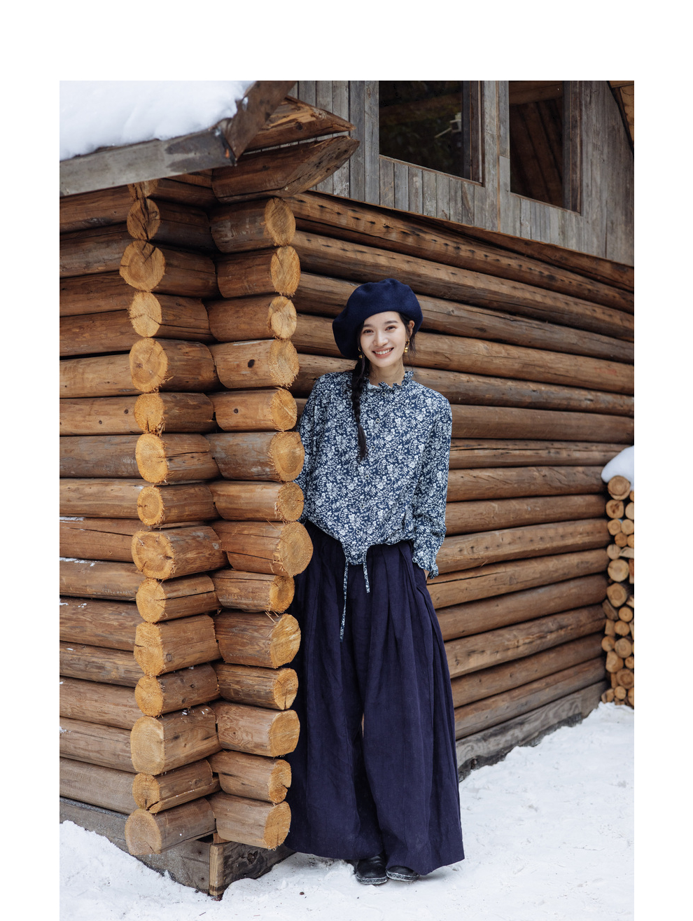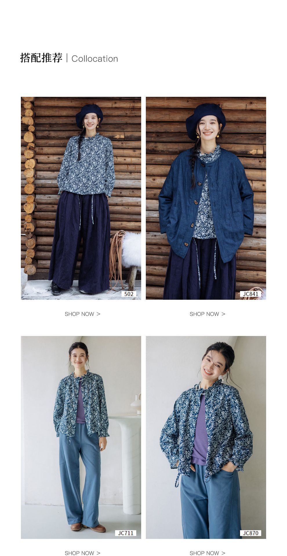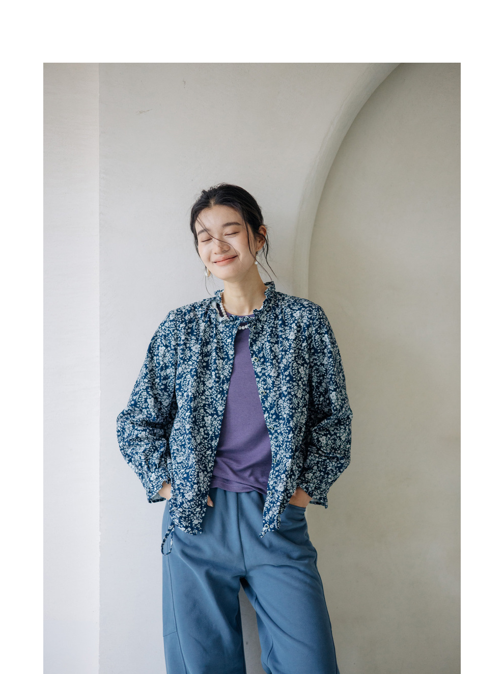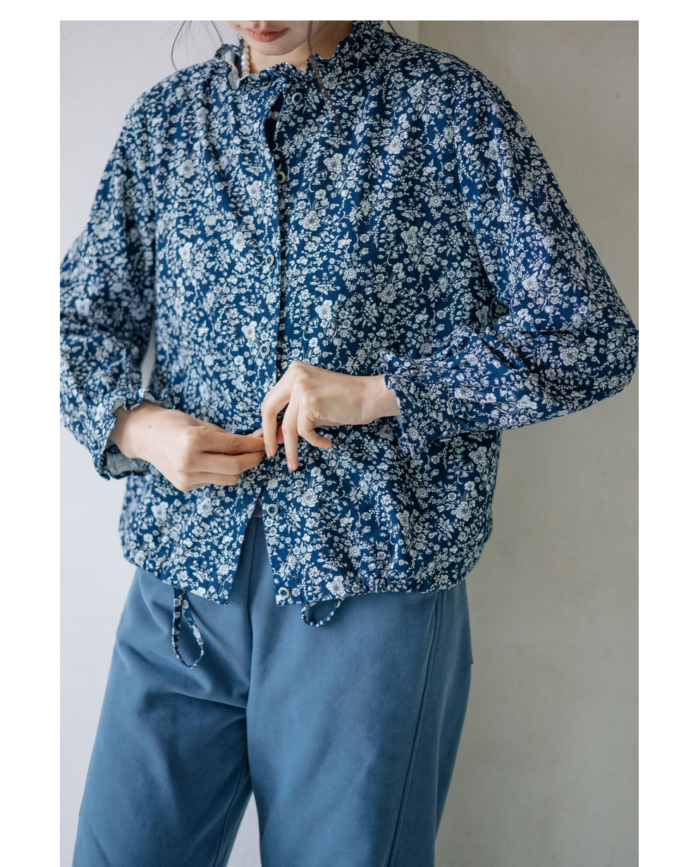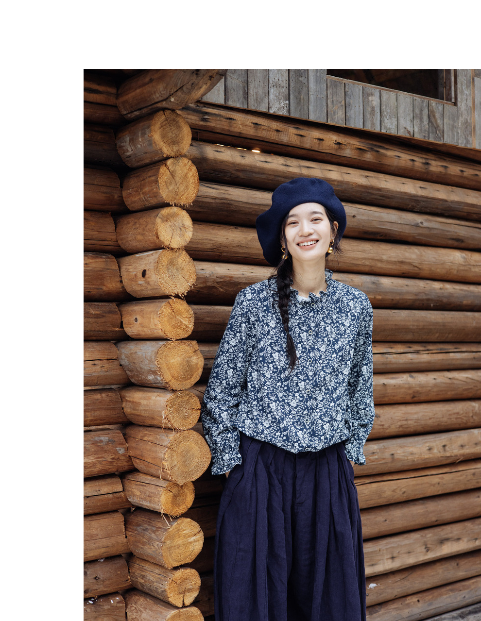 绽放735朵/碎花木耳边拼接国风感印花叠穿系带开襟文艺长袖衬衫