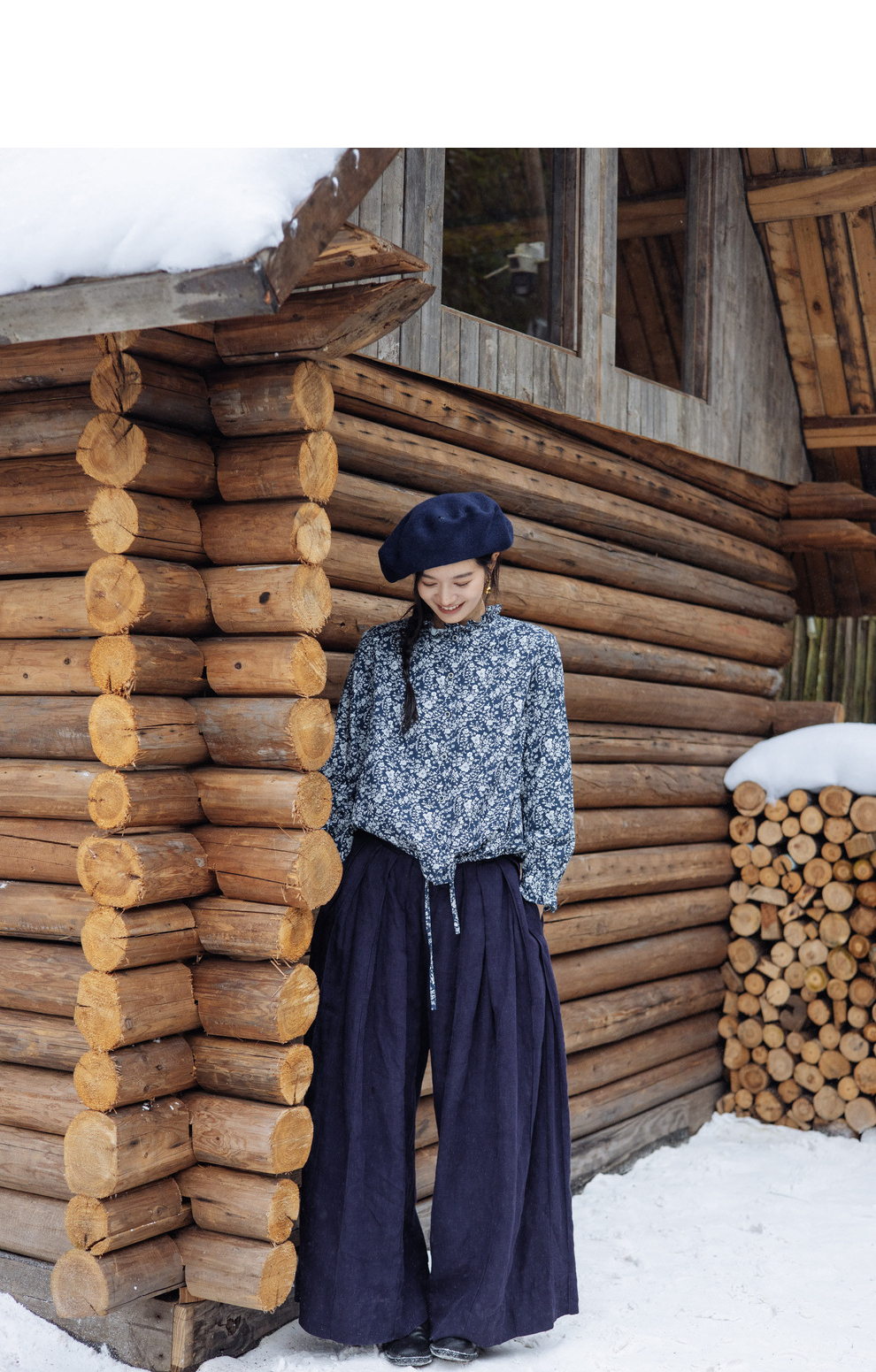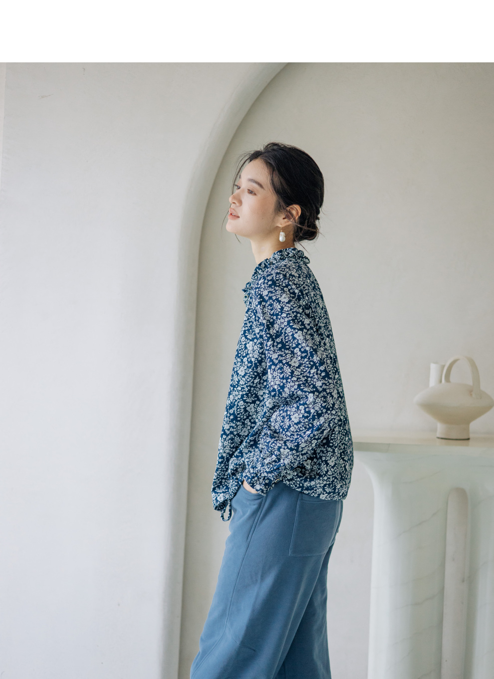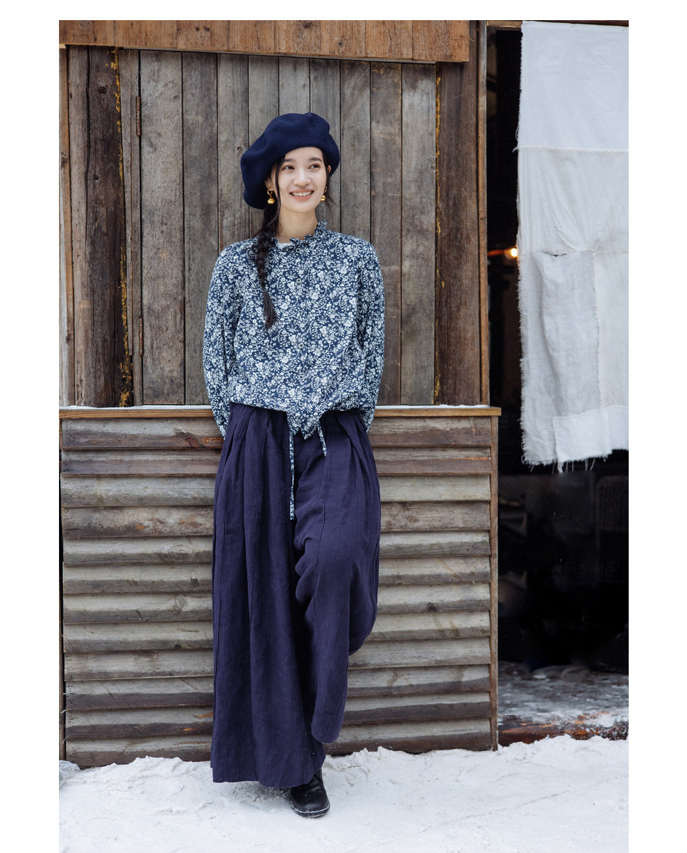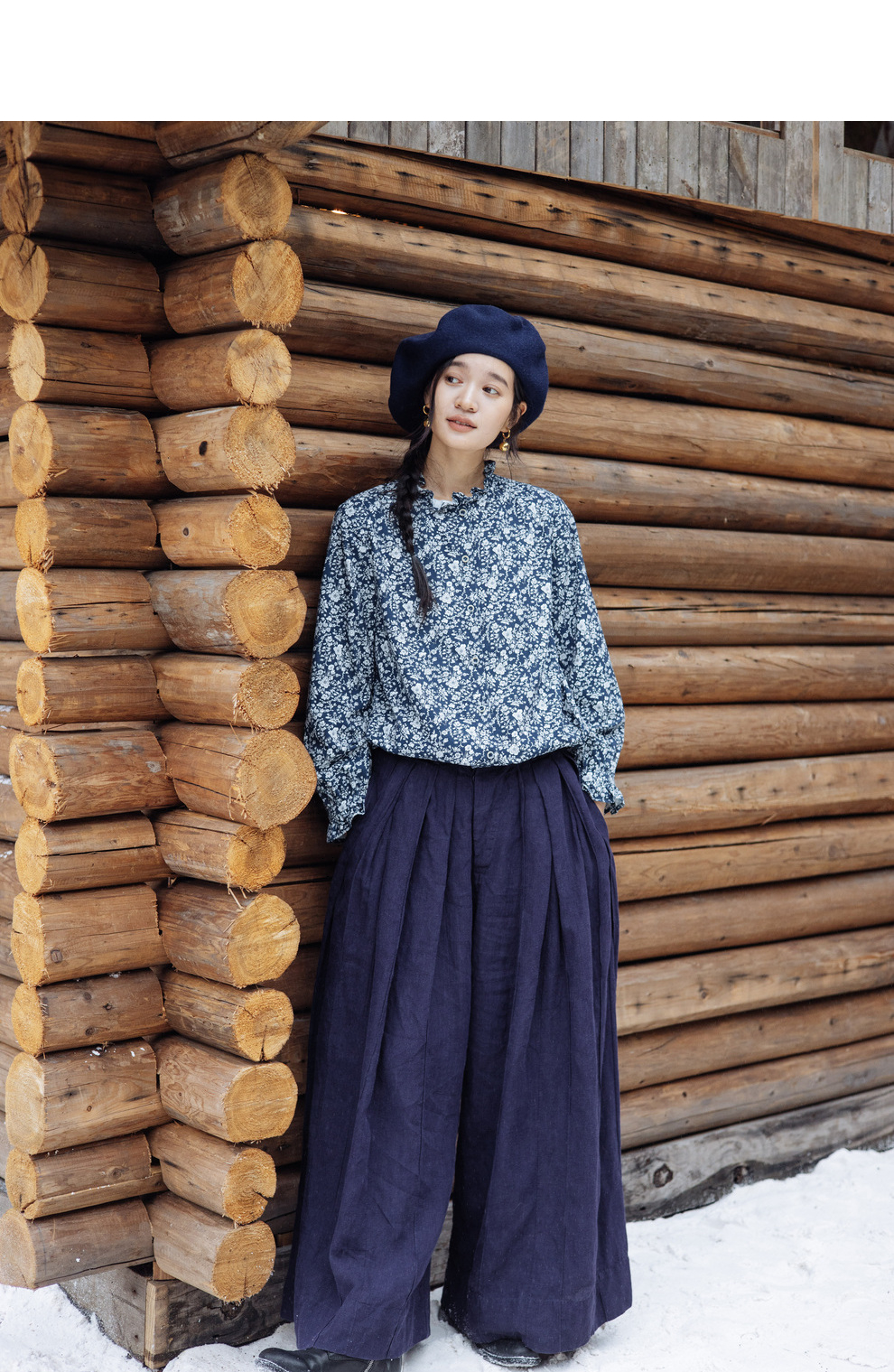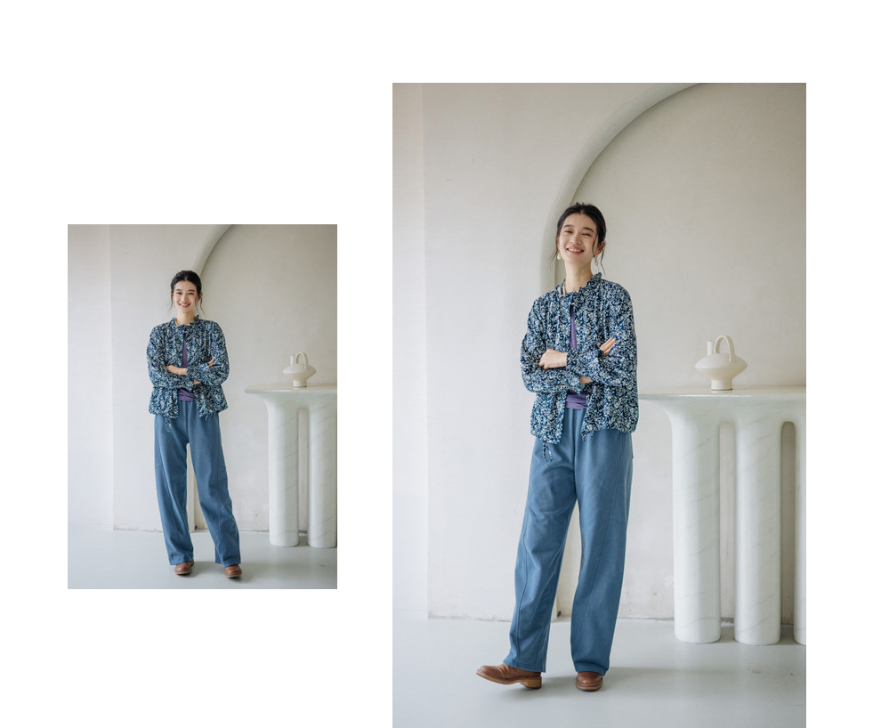 绽放735朵/碎花木耳边拼接国风感印花叠穿系带开襟文艺长袖衬衫