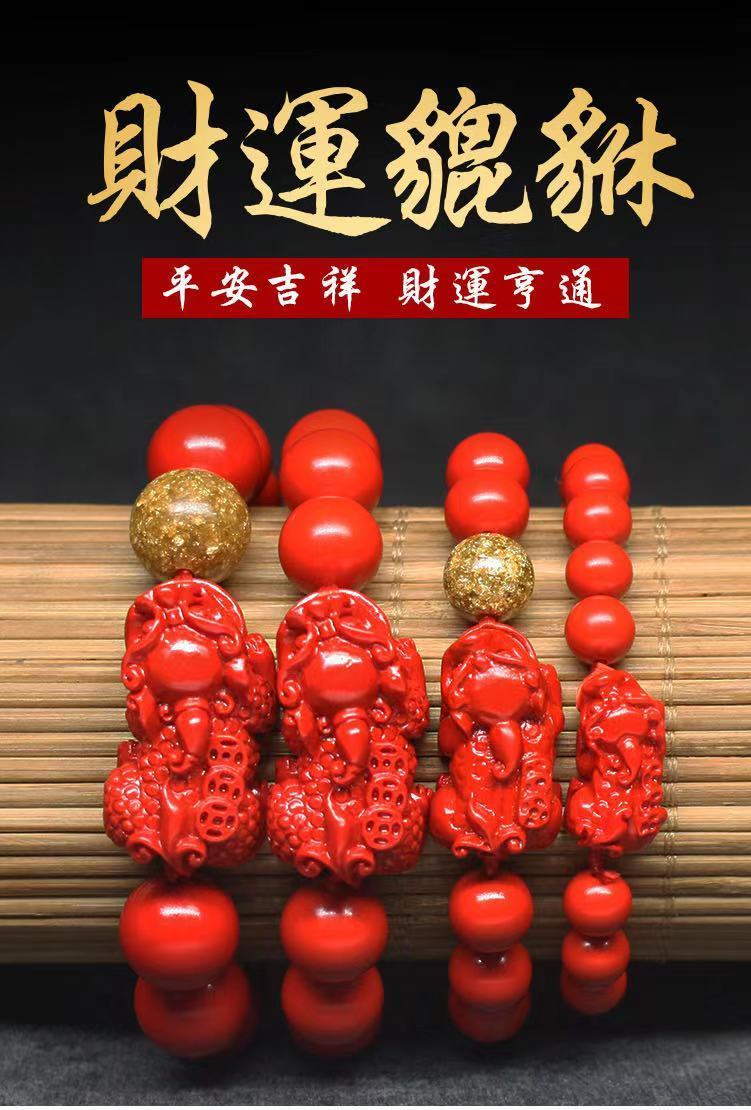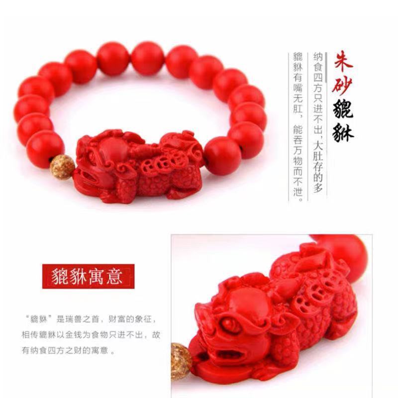 朱砂貔貅手链男士女款手串圆珠红色本命年