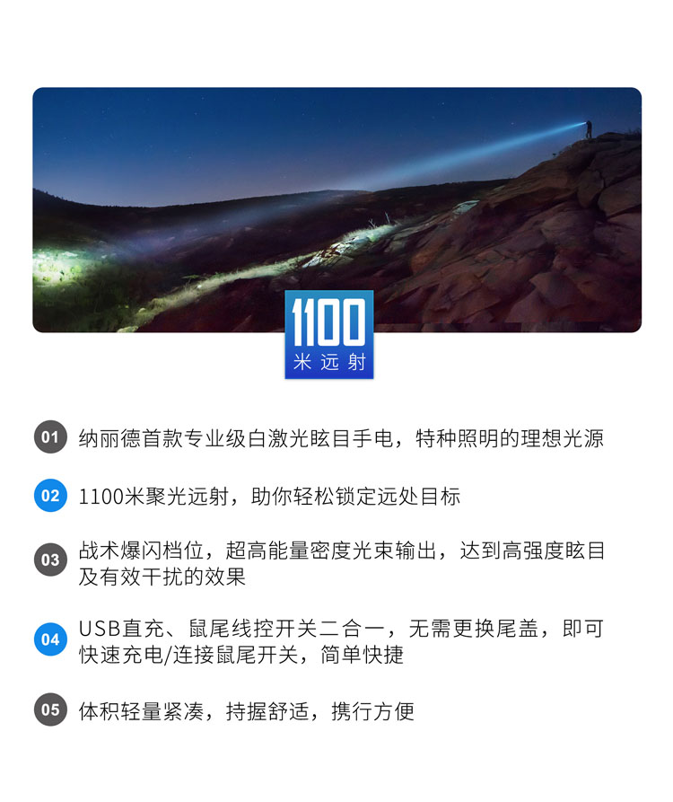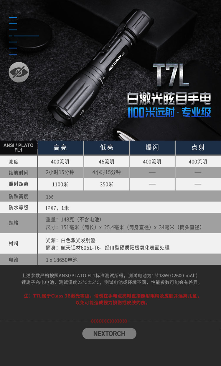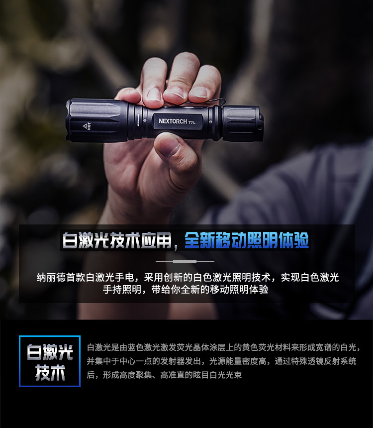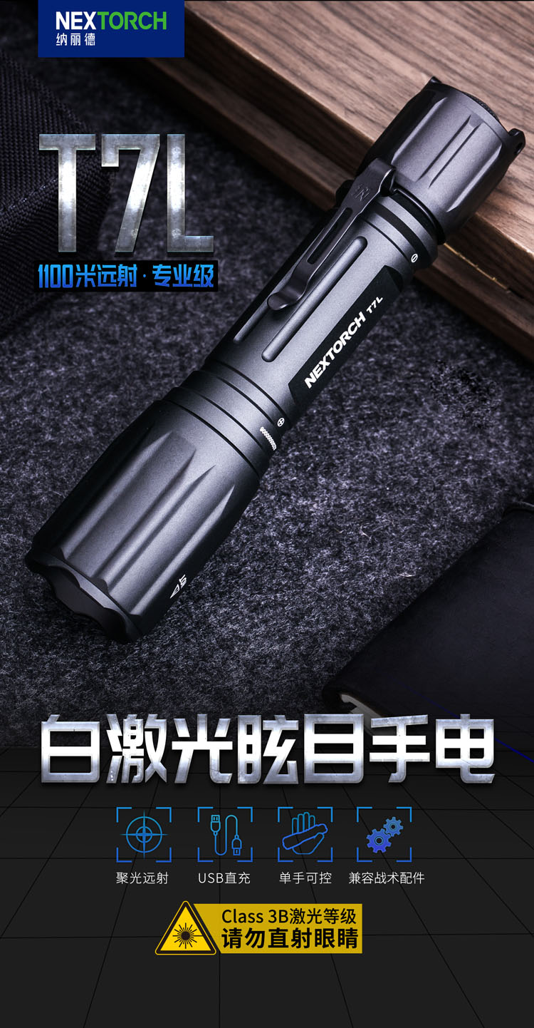 纳丽德(NEXTORCH)T7L白激光战术强光远射1100米搜索防水手电筒