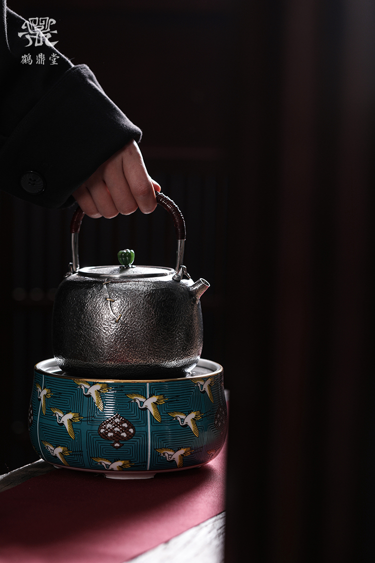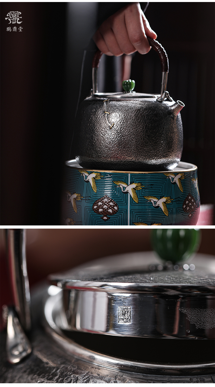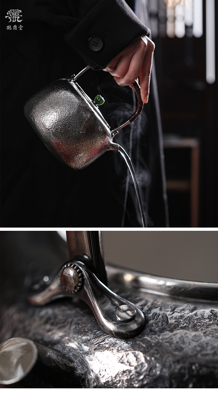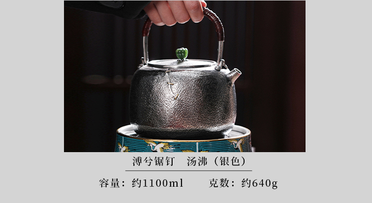鹤鼎堂银壶闻天系列漙兮麻纹锯钉水汤沸(银色)(缺货)