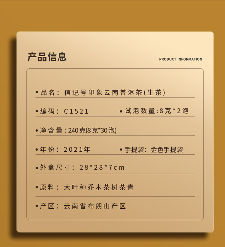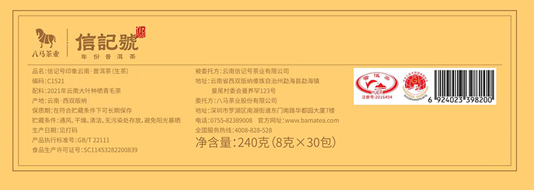 八马茶业 | 信记号印象云南普洱茶(生茶)240g
