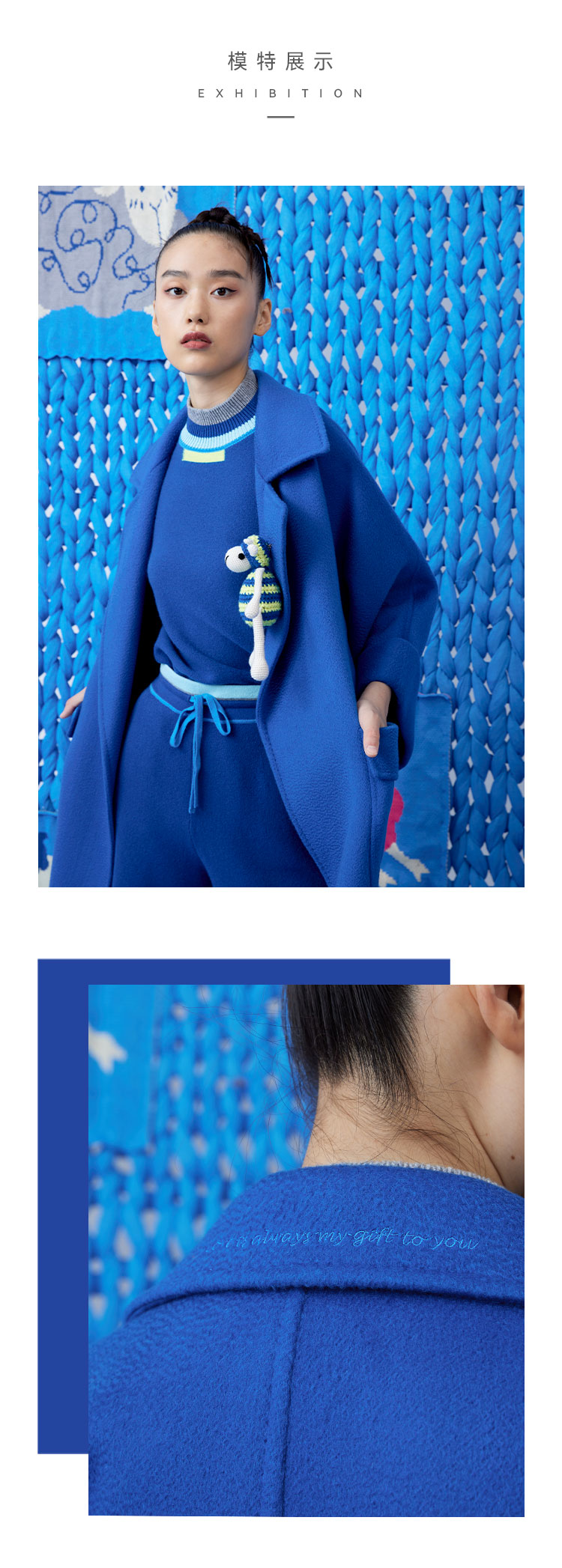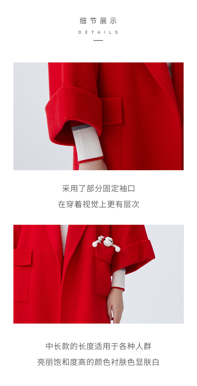 双层领宽袖水波纹羊绒呢女长大衣 SJF93W845N