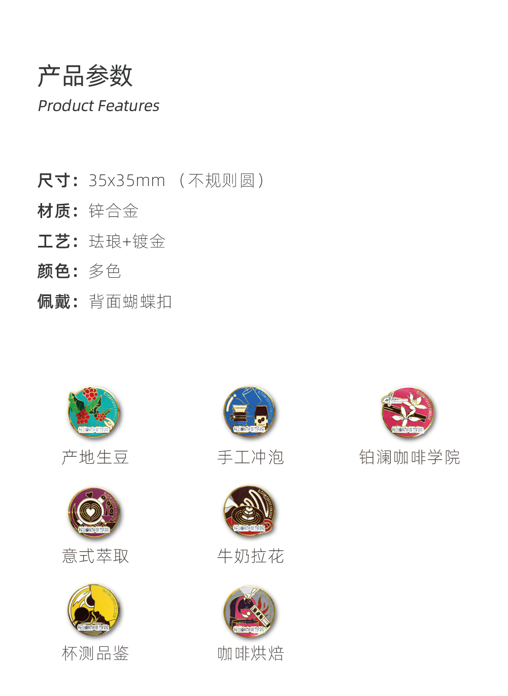 铂澜原创学院胸牌咖啡打工人胸针咖啡师徽章别针创意个性珐琅合金