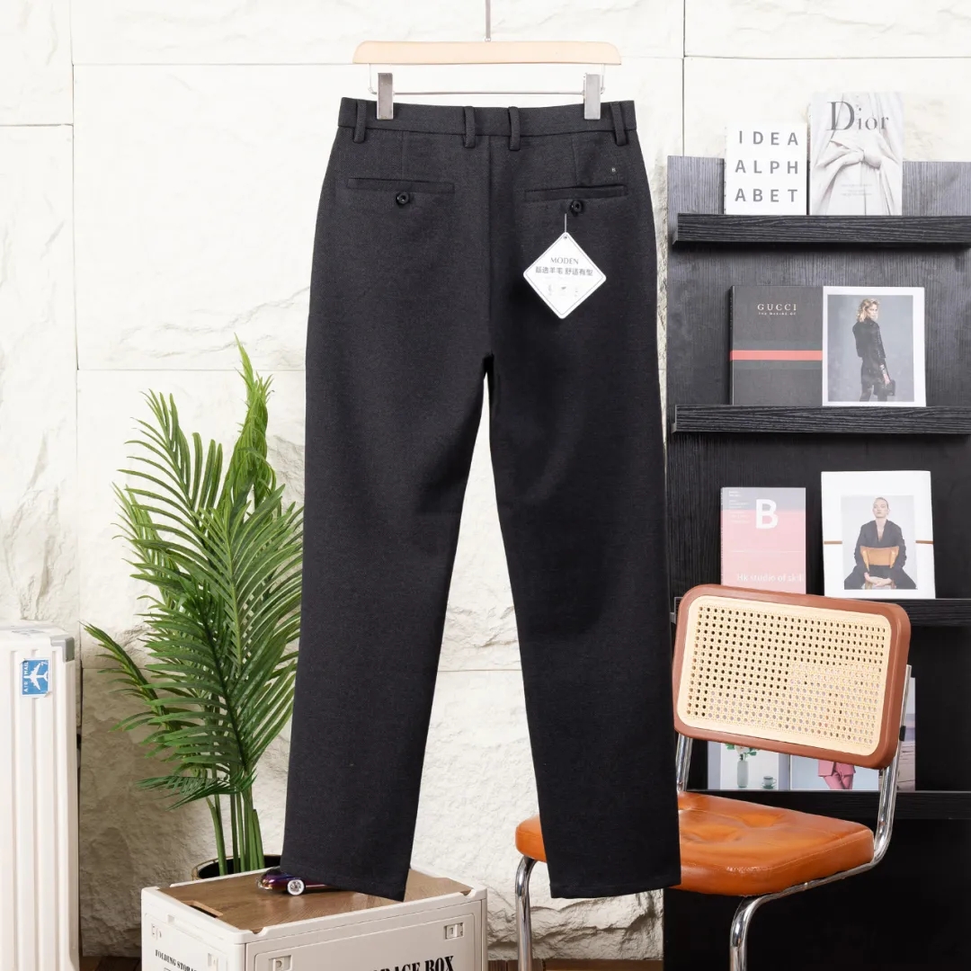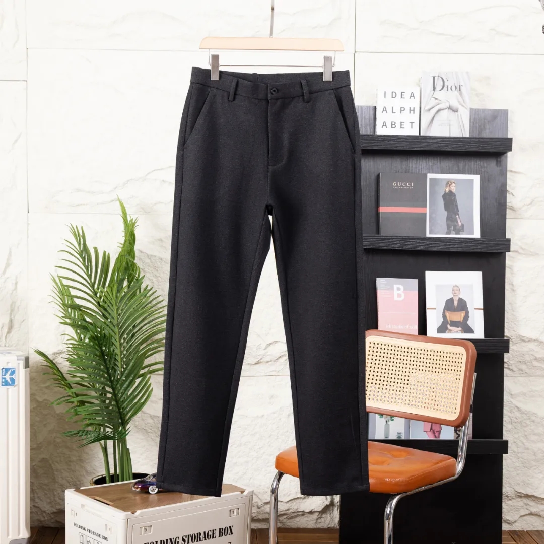 F031604秋冬男士羊毛呢轻商务修身包边小直筒休闲长裤