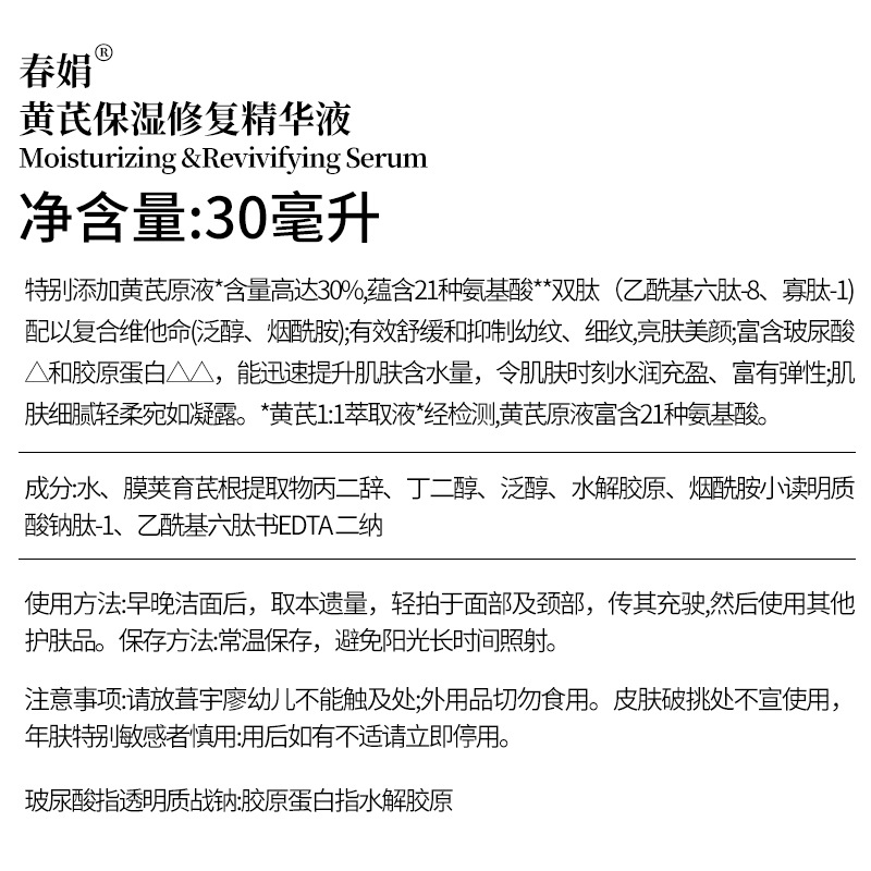 【美妆个护】-春娟黄芪保湿修复精华液30ml面部精华