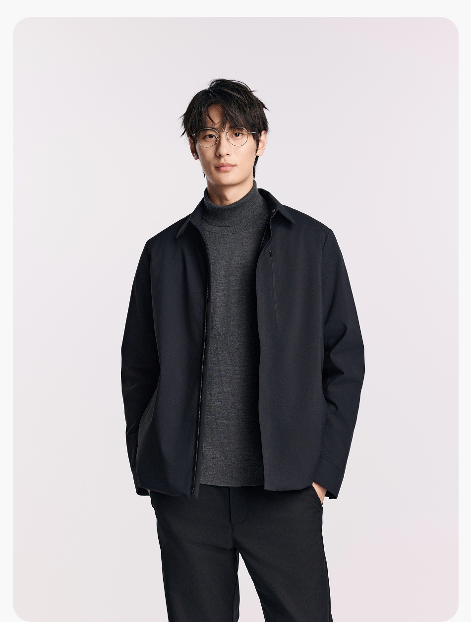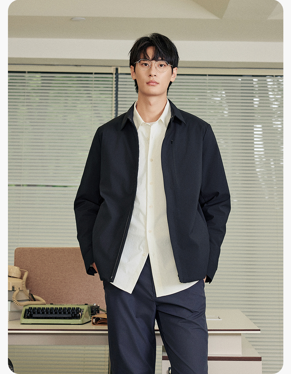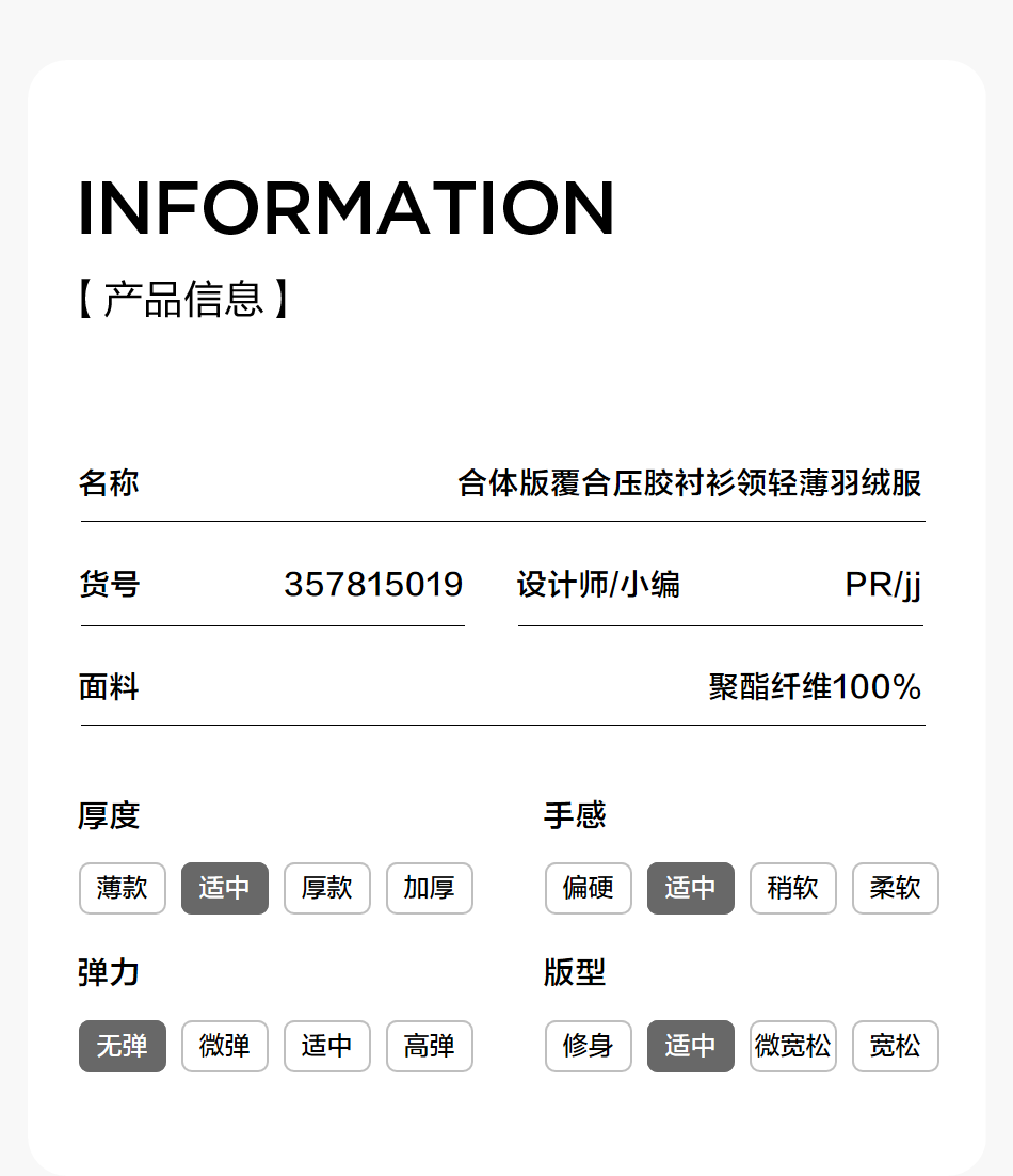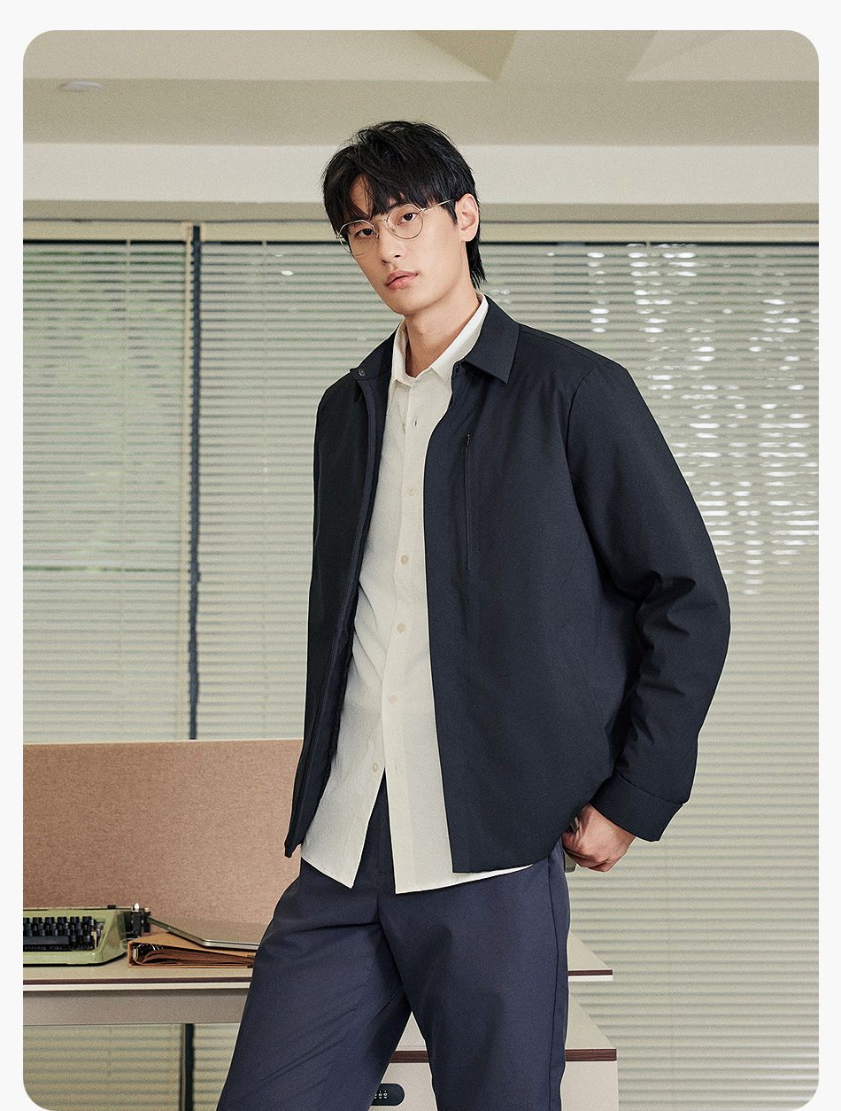 棉仓357815019-合体版覆合压胶衬衫领轻薄羽绒服