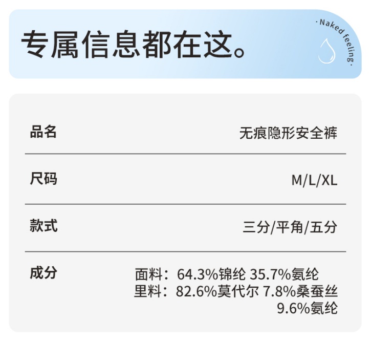 粉底液安全裤尺码: