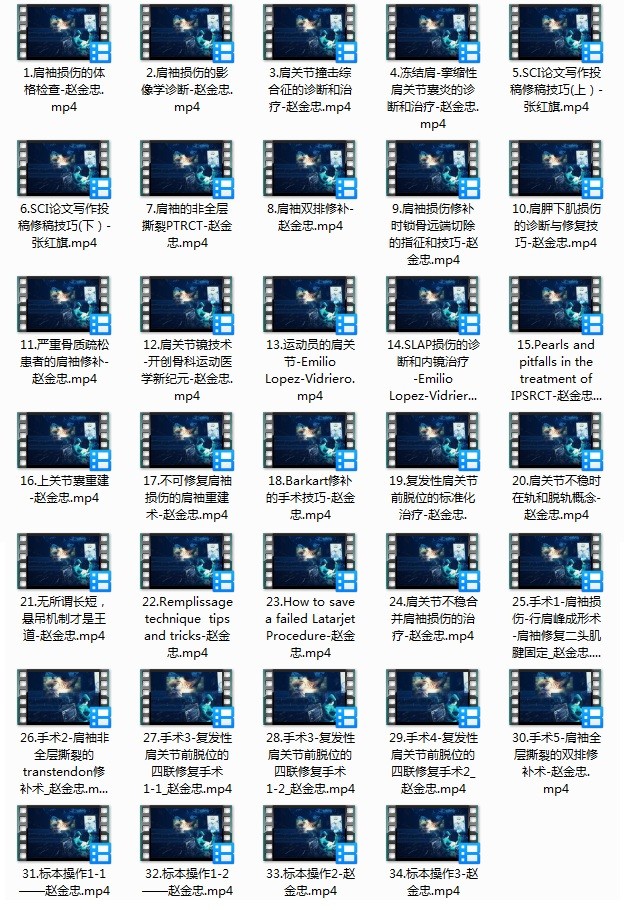 本U盘视频完全源自授课内容,共有34个相关视频可供关节外科医生和研究生学习。清晰的学术大餐,将给您身临其境的绝佳感受。