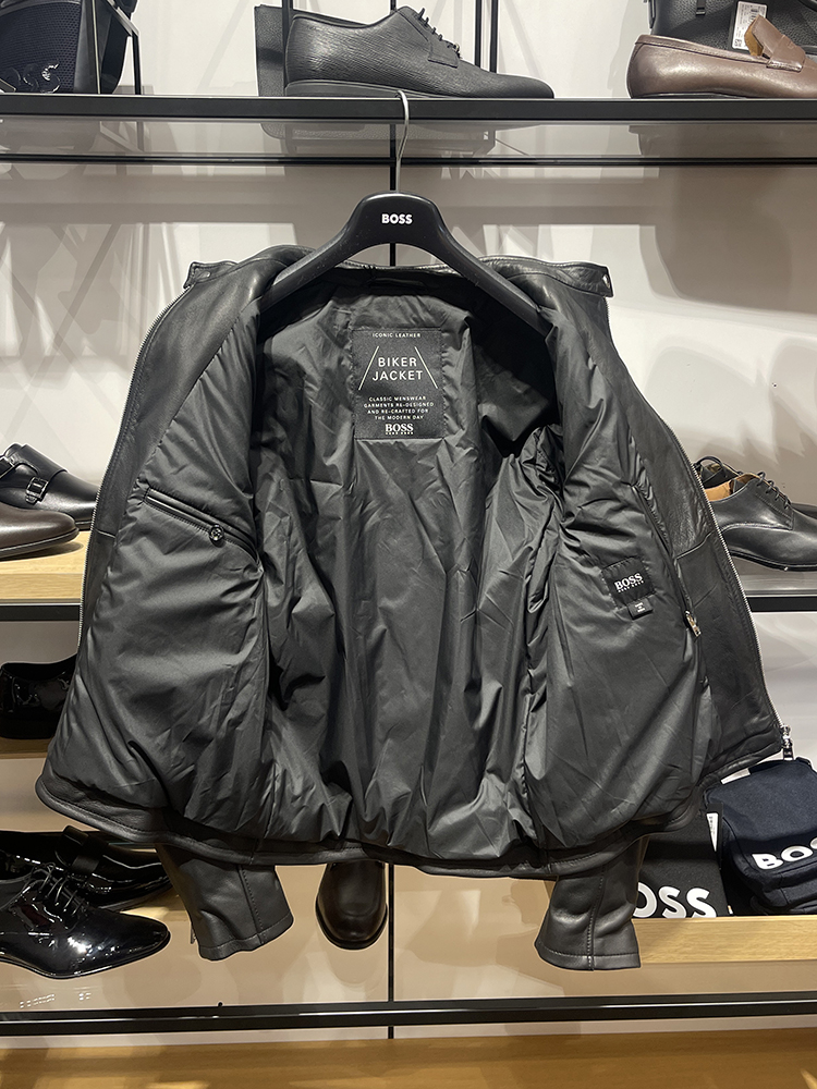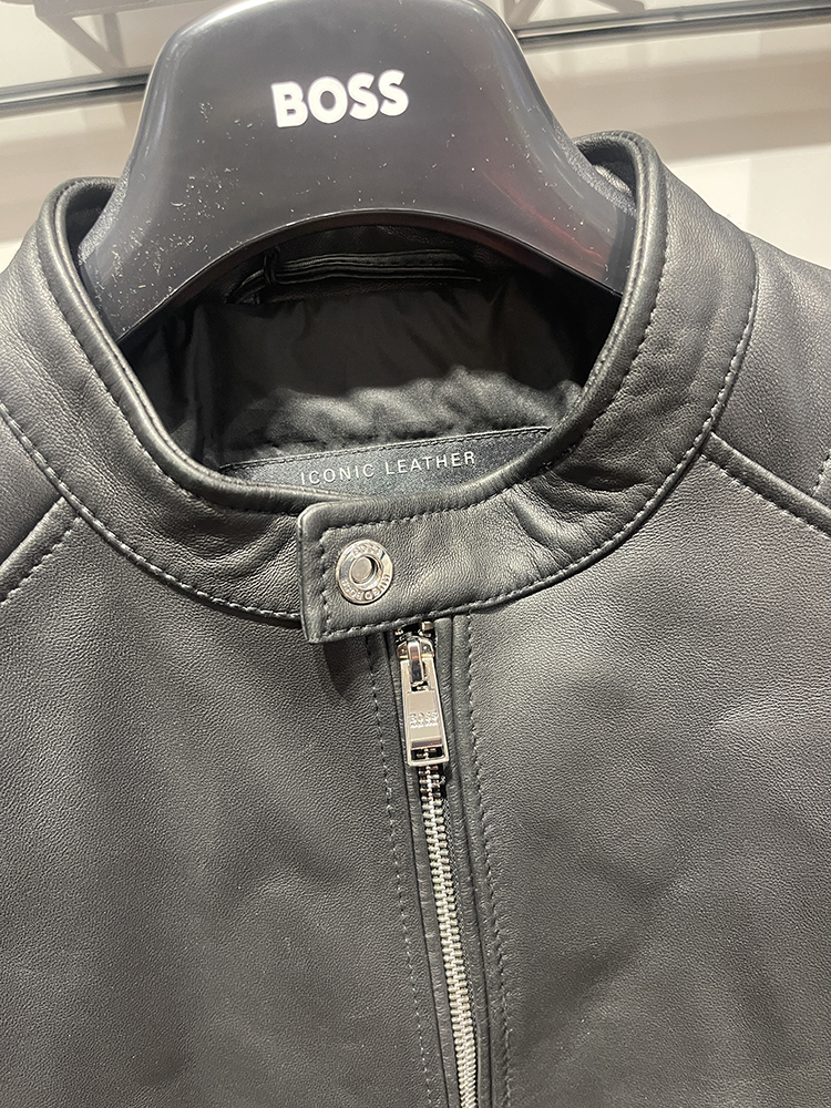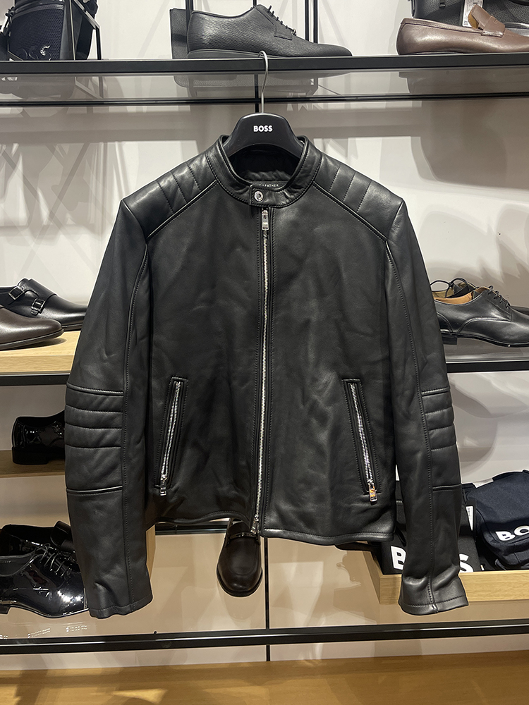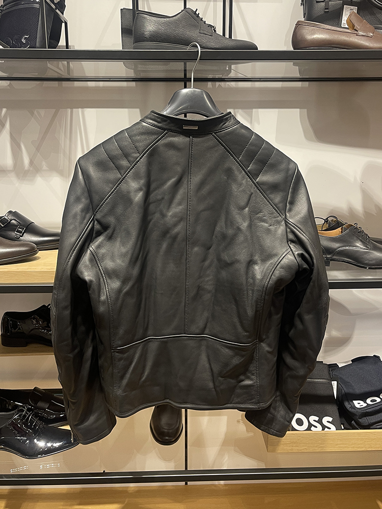 瑕疵HUGO BOSS/胡戈波士 男士羔羊皮黑标纯色长袖机车皮衣夹克外套