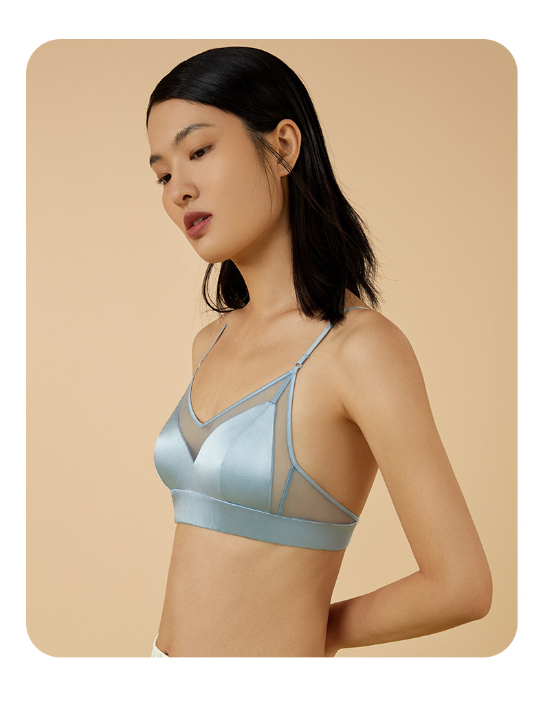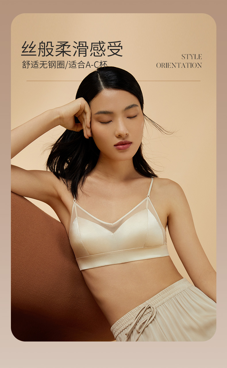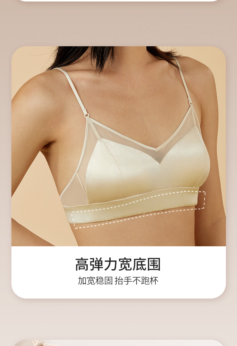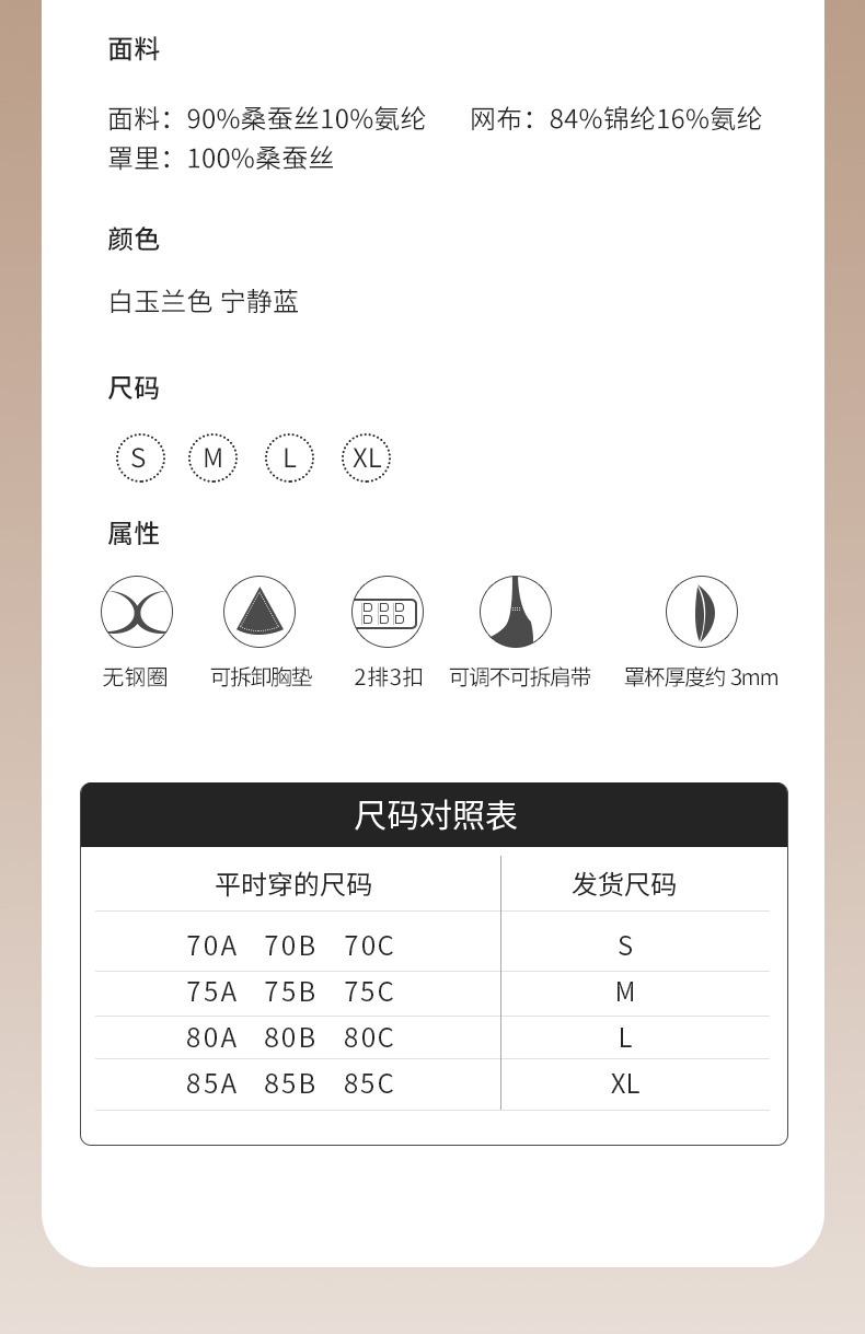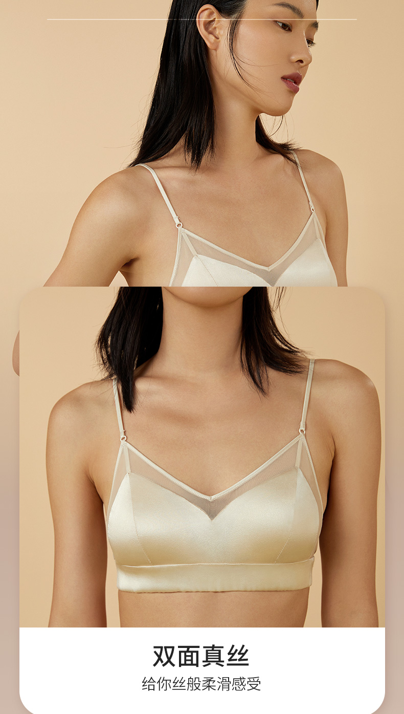 金三塔双面真丝无钢圈带胸垫舒适透气女士桑蚕丝缎面文胸内衣新品 NZFCA315