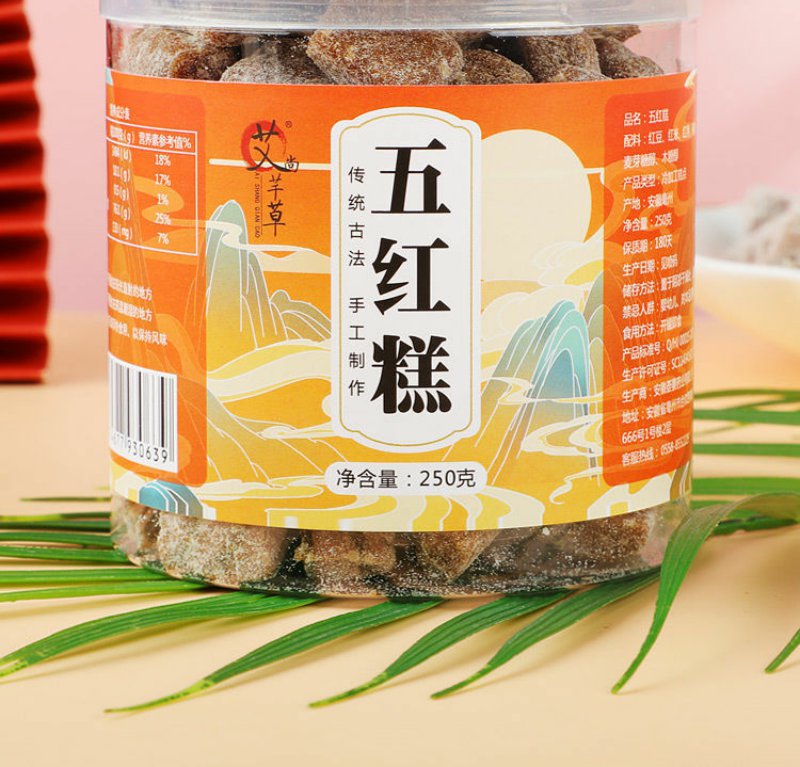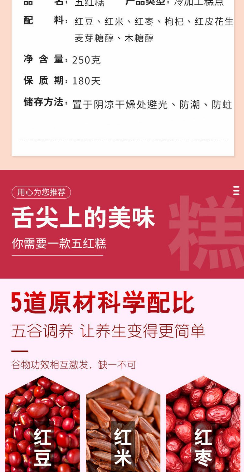 五红糕 红豆补枸杞气血红米养红枣颜五红汤玫瑰木糖醇养生糕点
