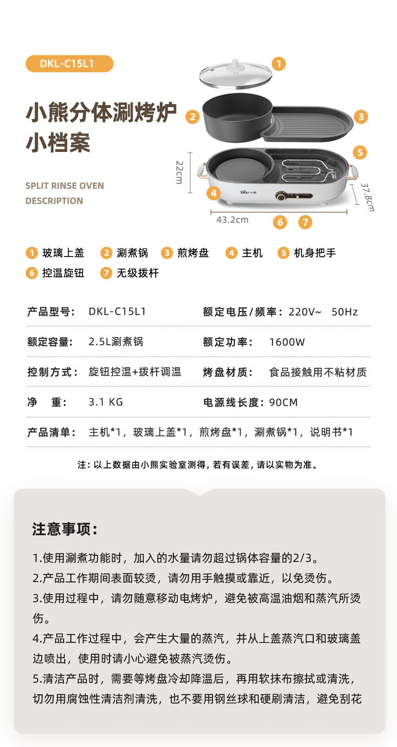 小熊bear电烧烤炉电烤炉 DKL-C15L1
