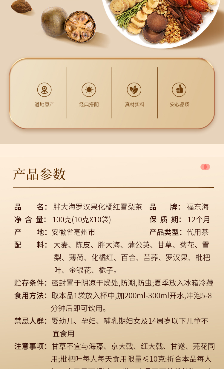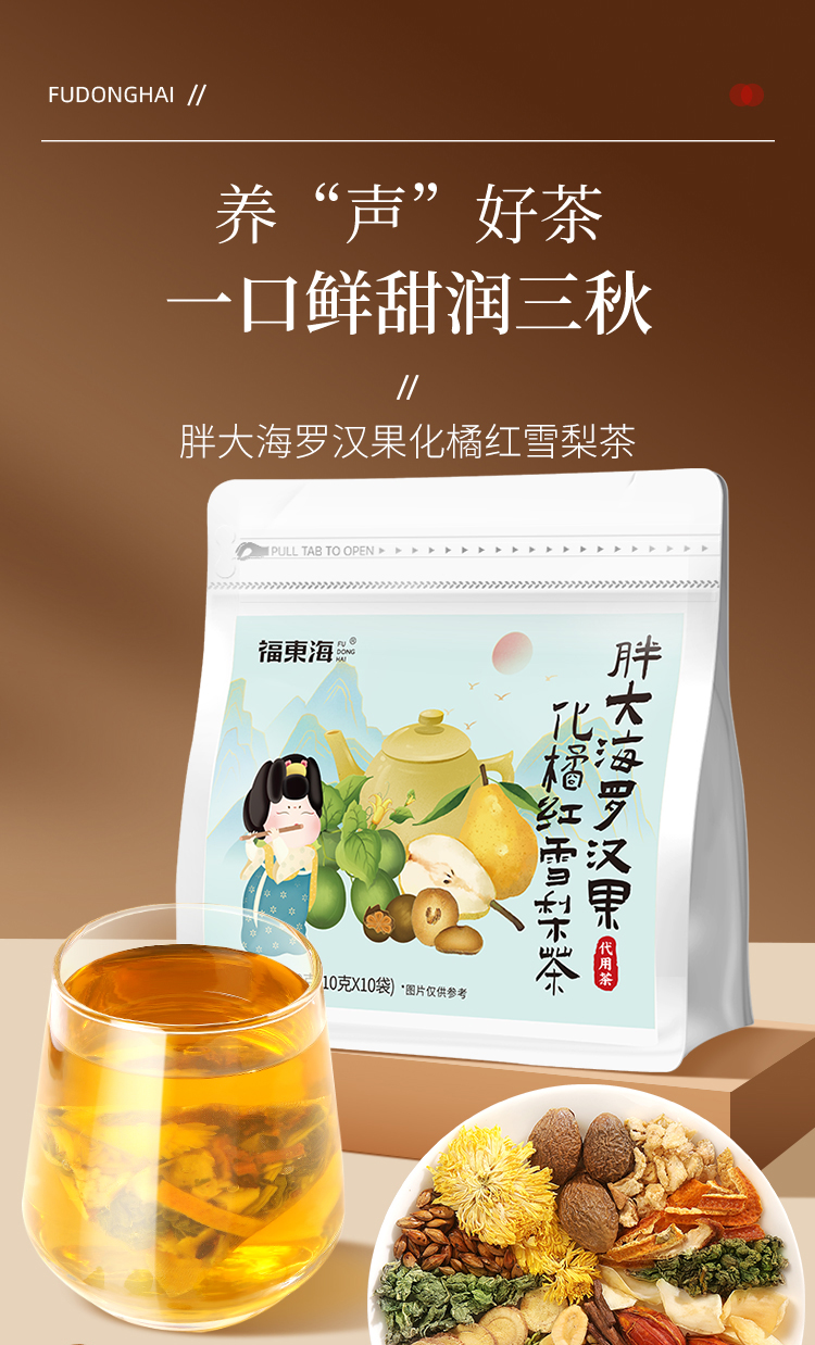 【咽喉伴侣】福东海 胖大海罗汉果化橘红雪梨茶100克(10克*10袋) 独立袋装养生茶