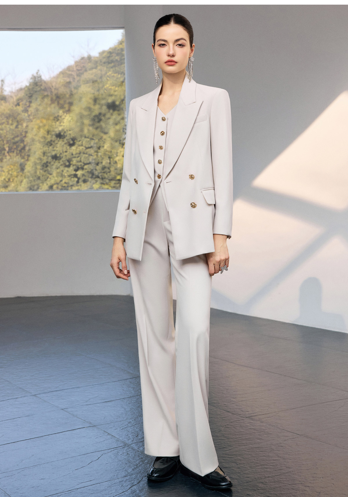 艾尚臣2026新款西装三件套女春季米白色通勤风修身气质OL西服套装