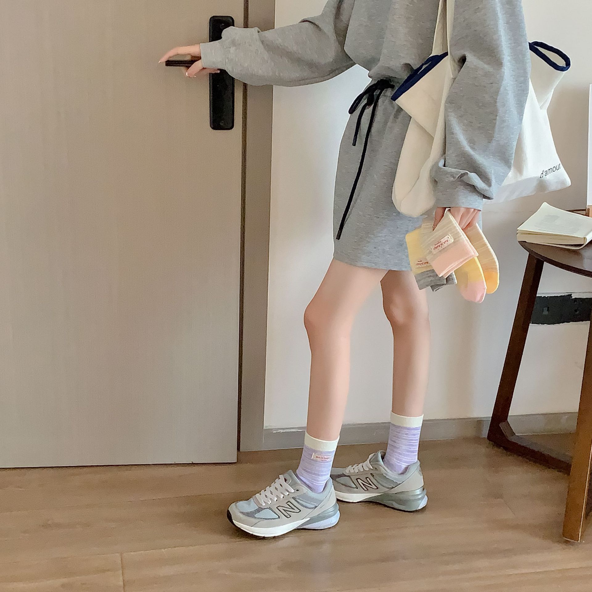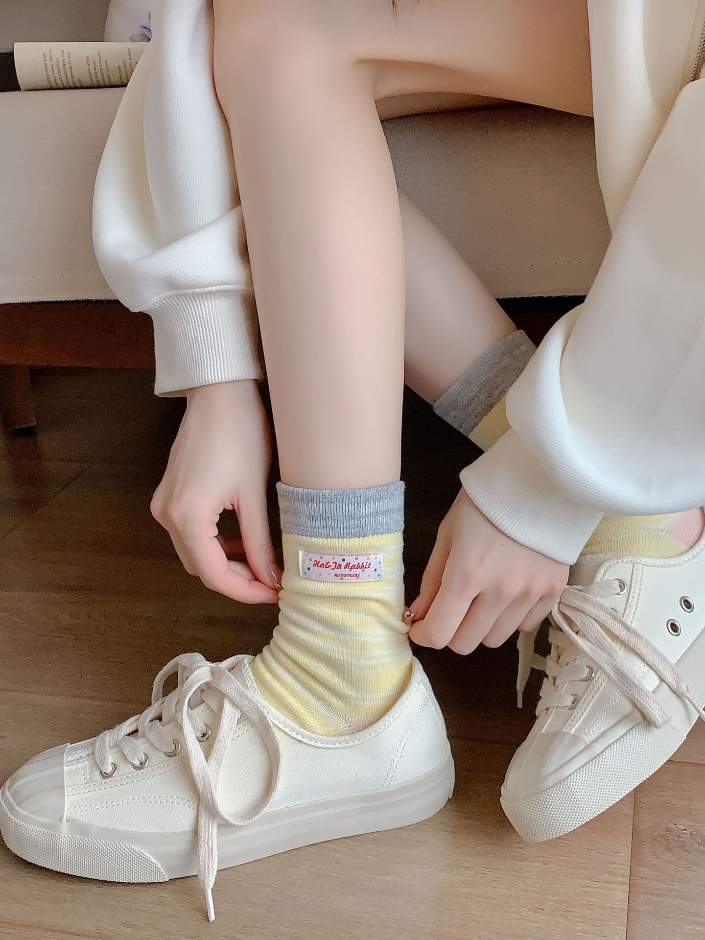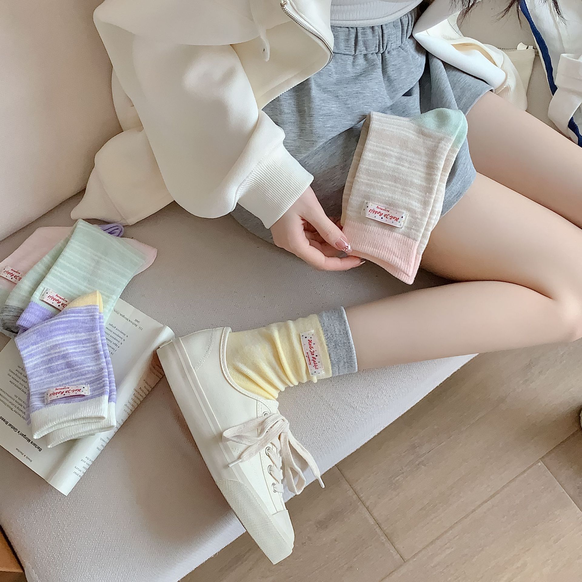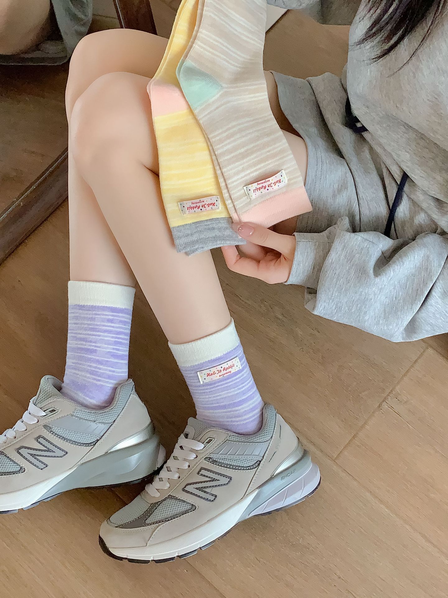 5双一组!花田兔费尔岛油画棒系列马卡龙杂色中筒袜子女日系春夏设计款棉袜