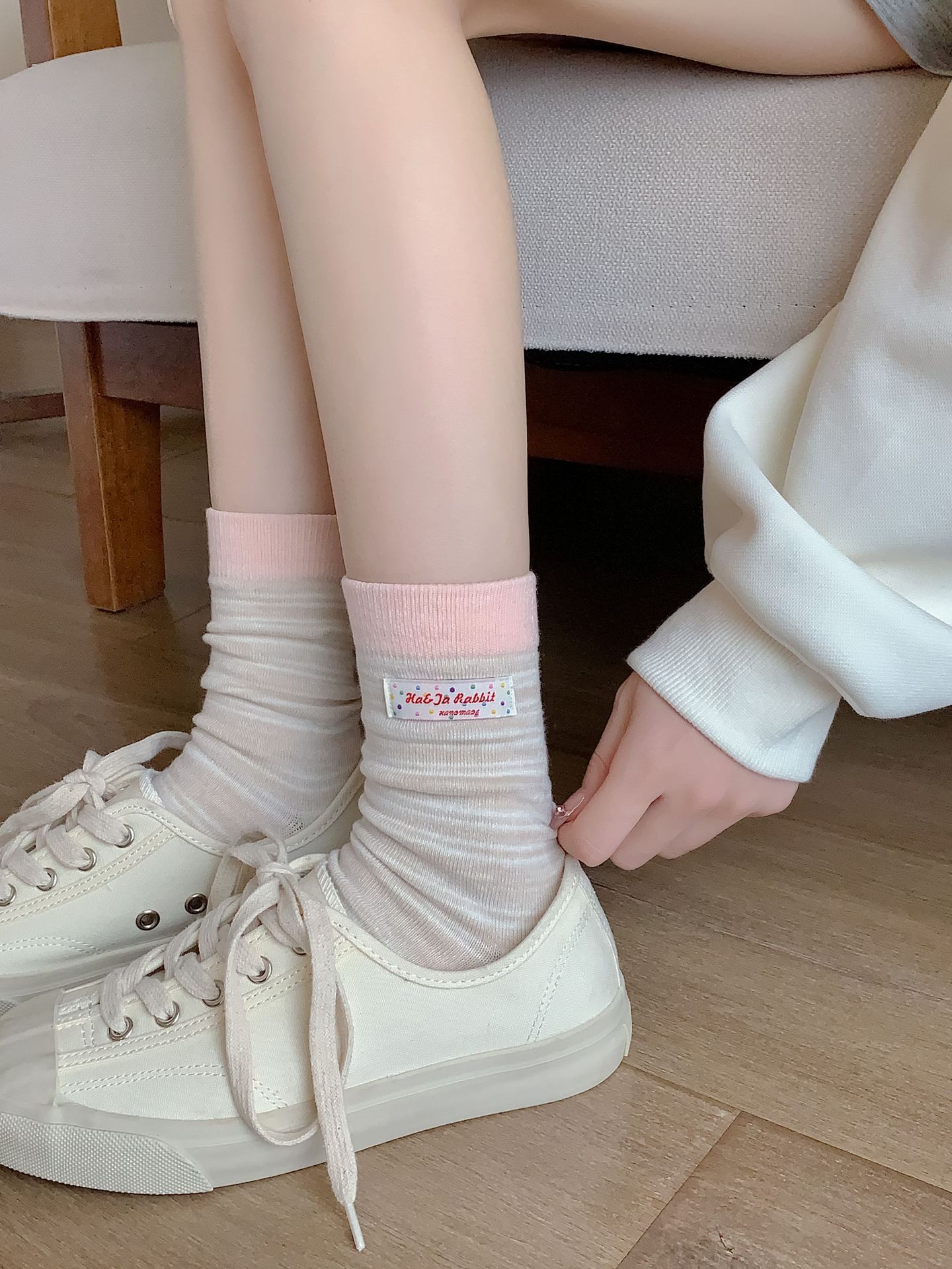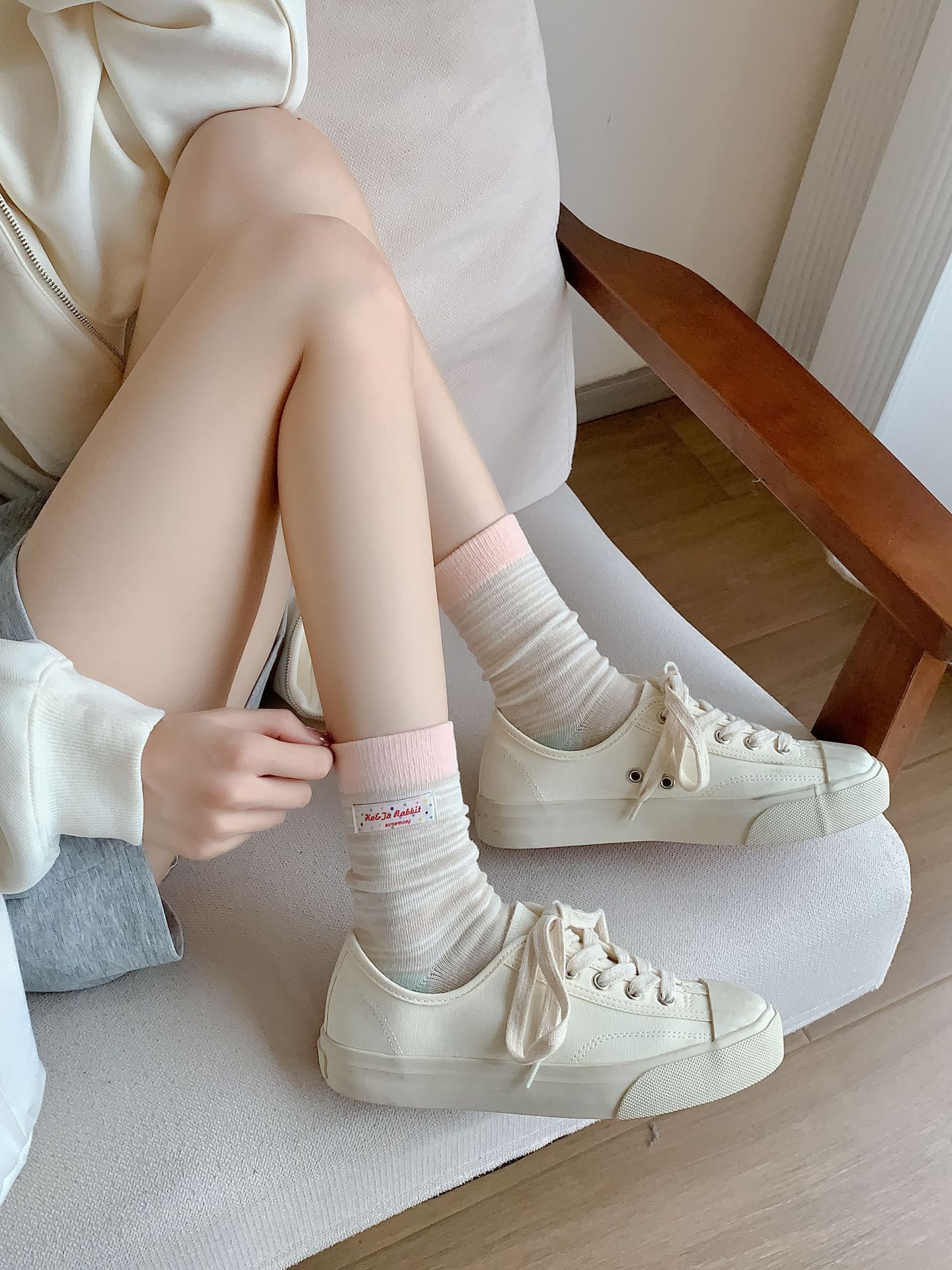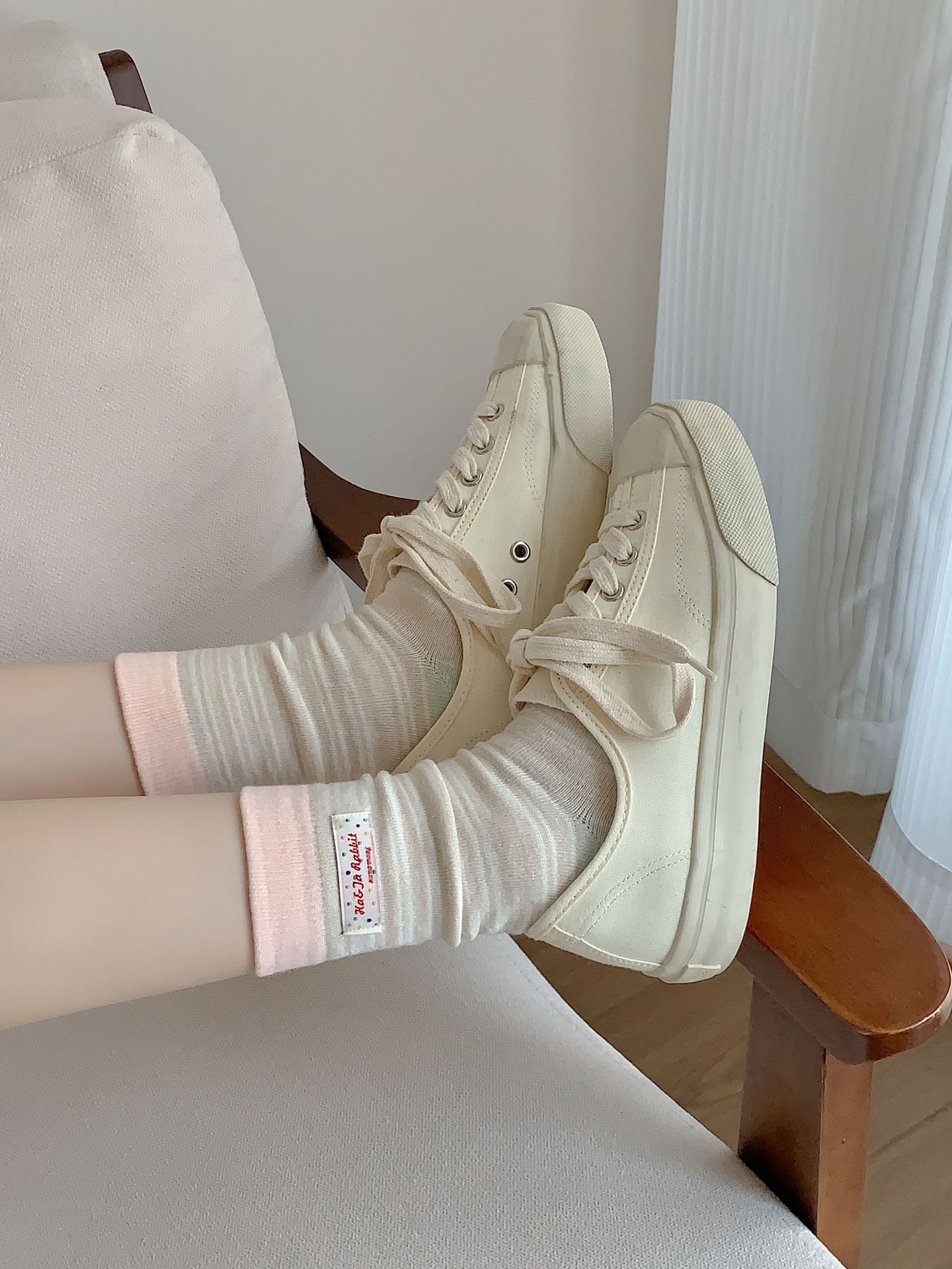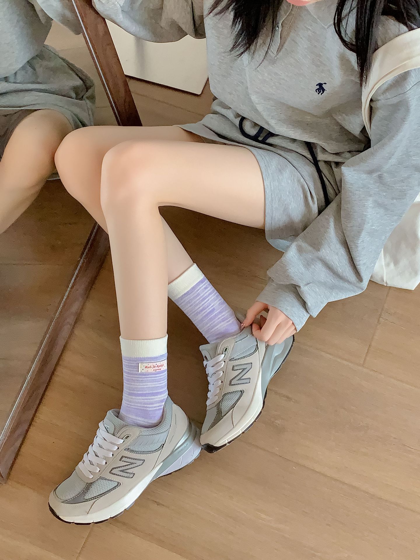 5双一组!花田兔费尔岛油画棒系列马卡龙杂色中筒袜子女日系春夏设计款棉袜