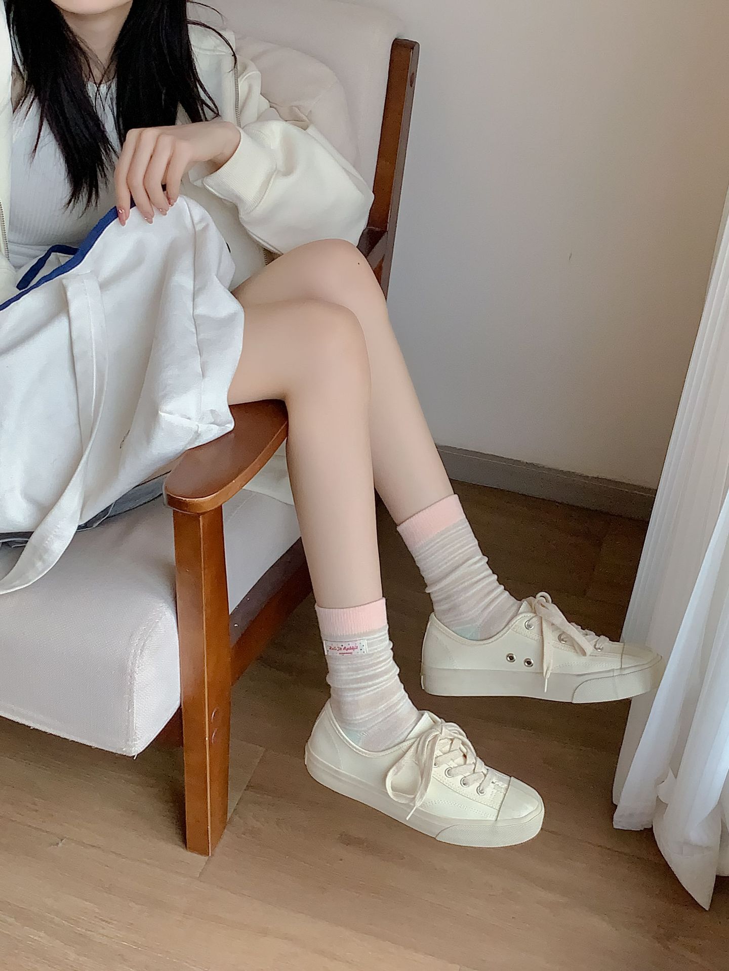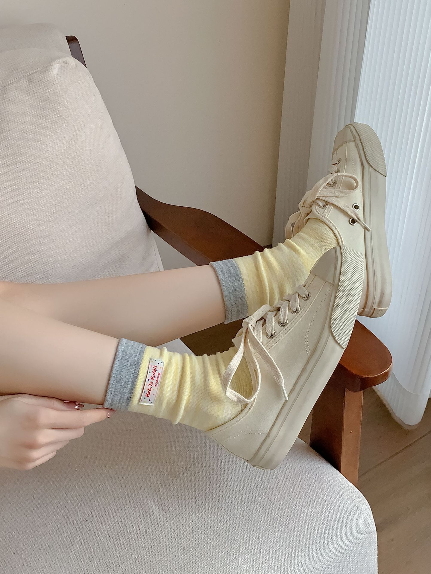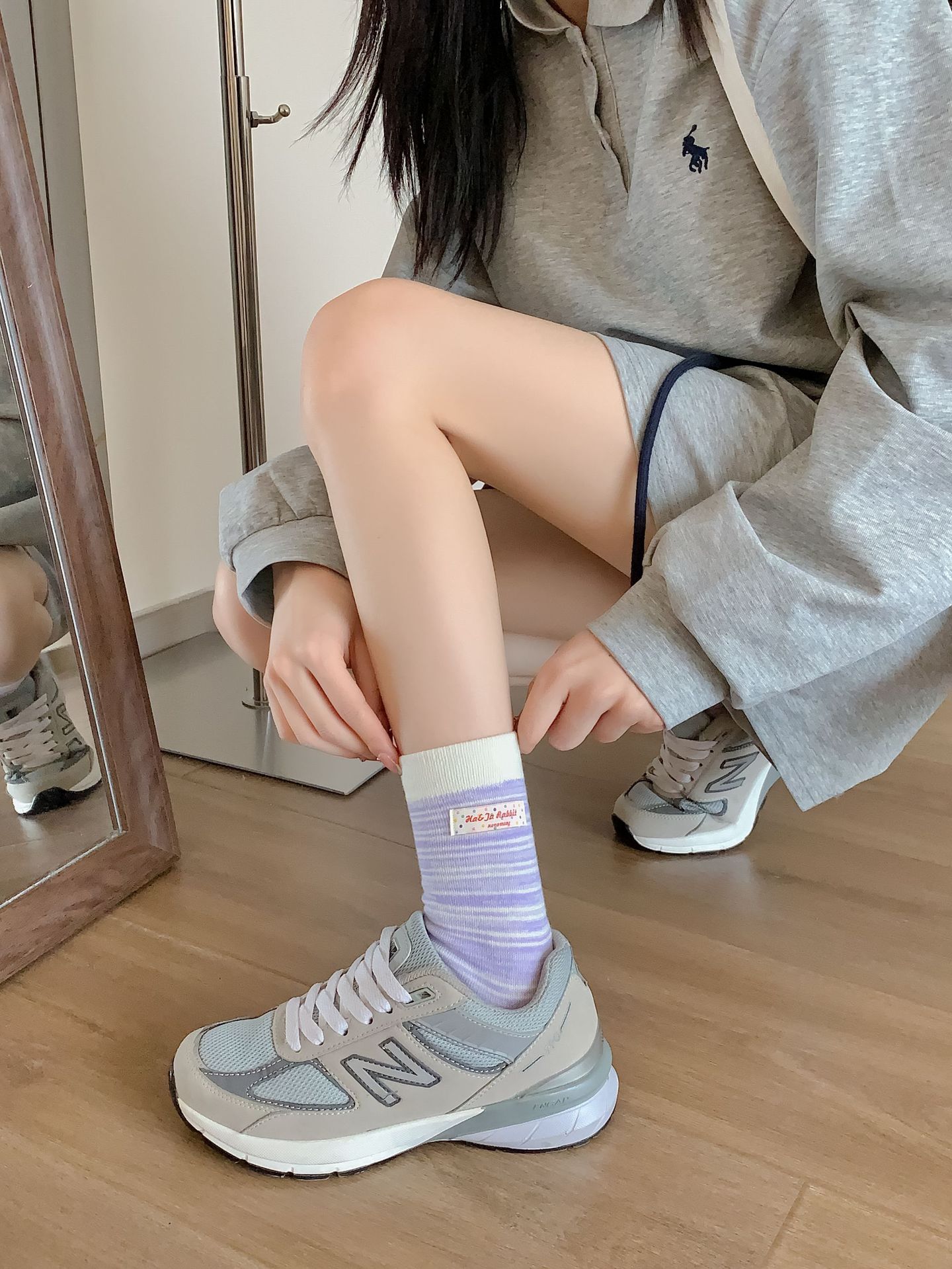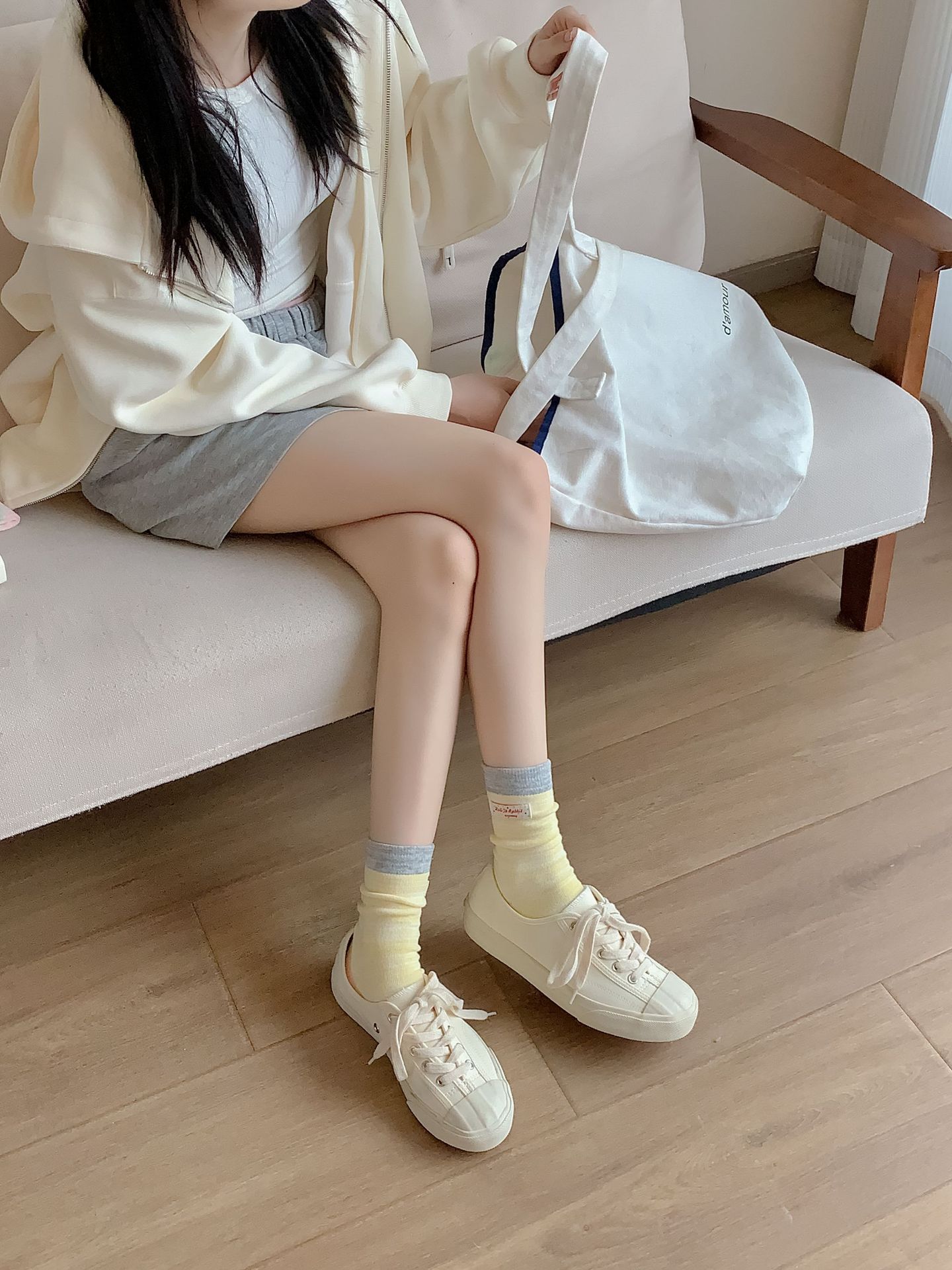 5双一组!花田兔费尔岛油画棒系列马卡龙杂色中筒袜子女日系春夏设计款棉袜
