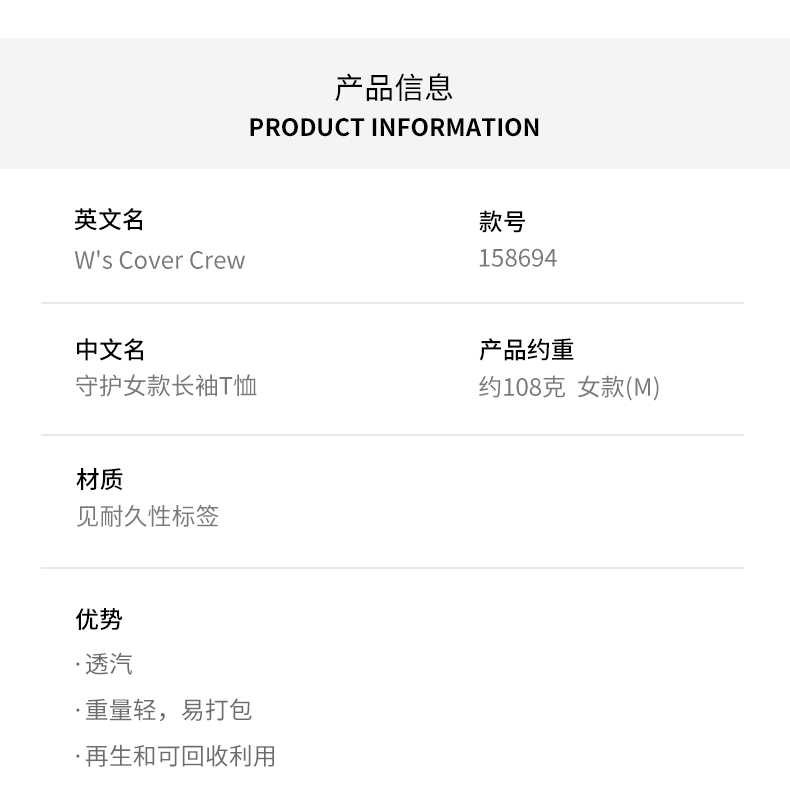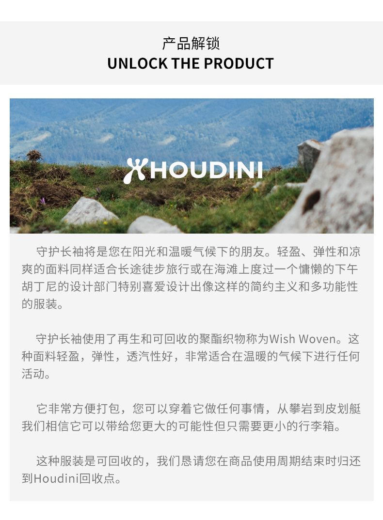 HOUDINI胡丁尼 Cover Crew 守护 女款户外速干长袖T恤158694