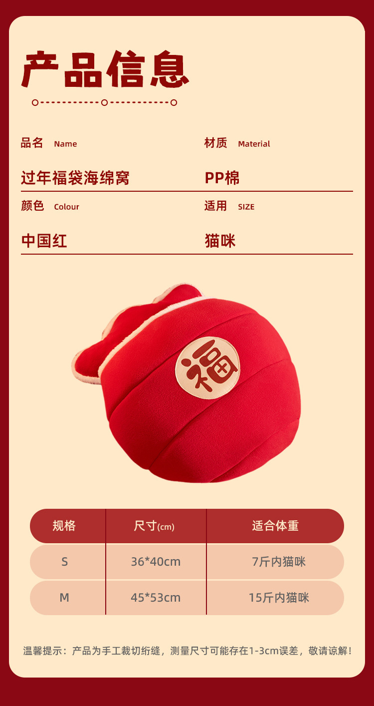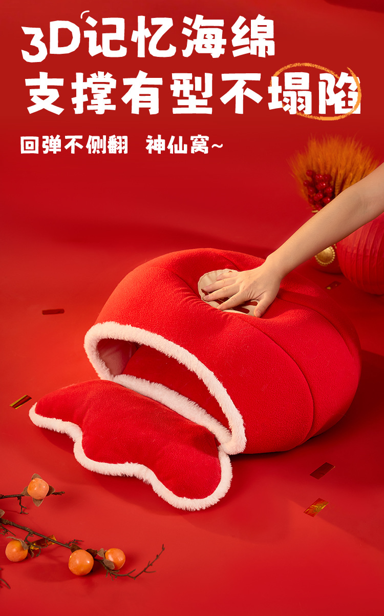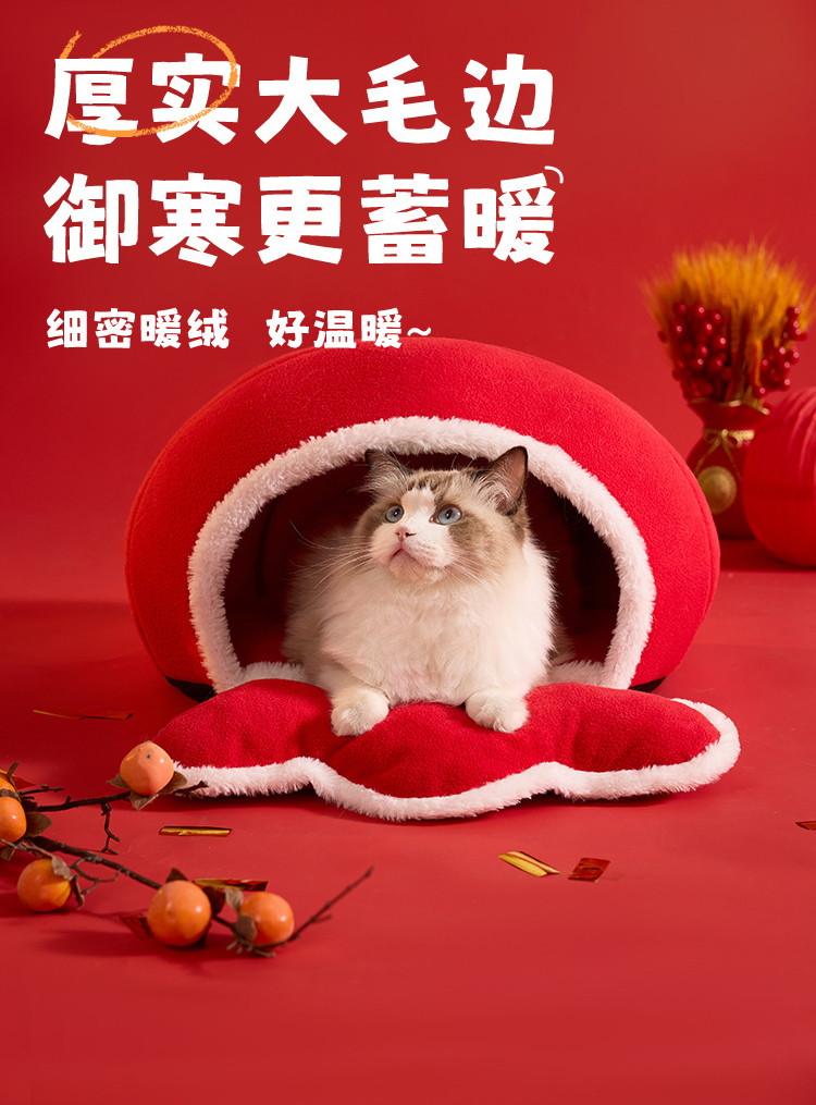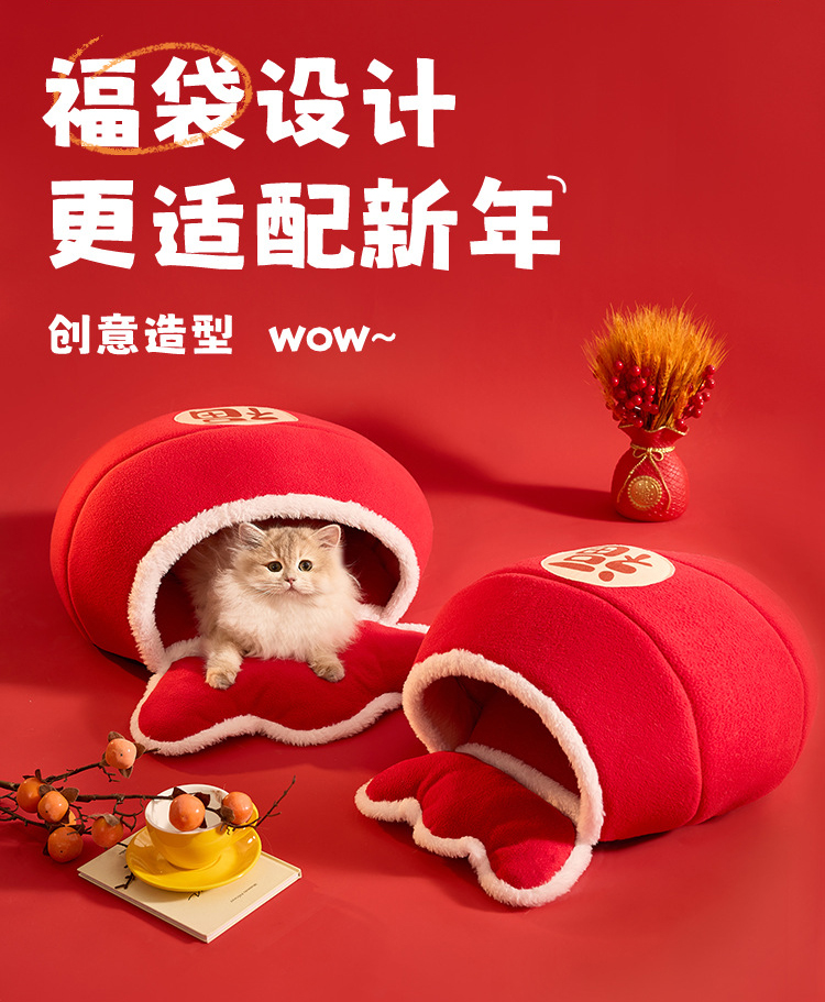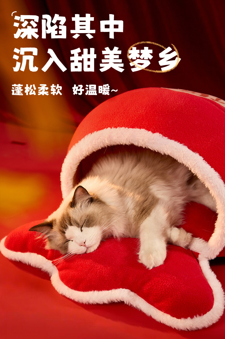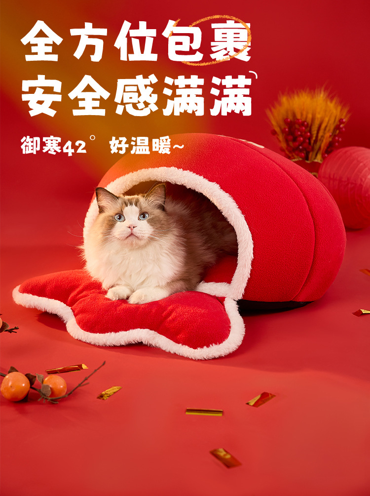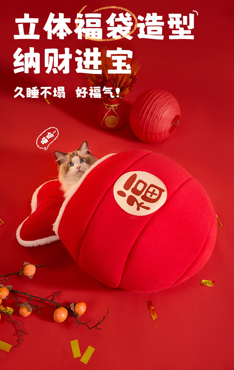 新年款保暖猫窝国潮新年风海绵加厚猫窝蛇年狗窝福袋造型