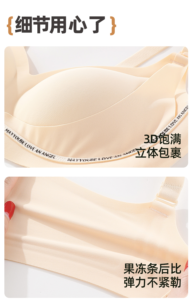 雅黛丽内衣女无痕小胸聚拢显大文胸无钢圈收副乳一片式光面胸罩女