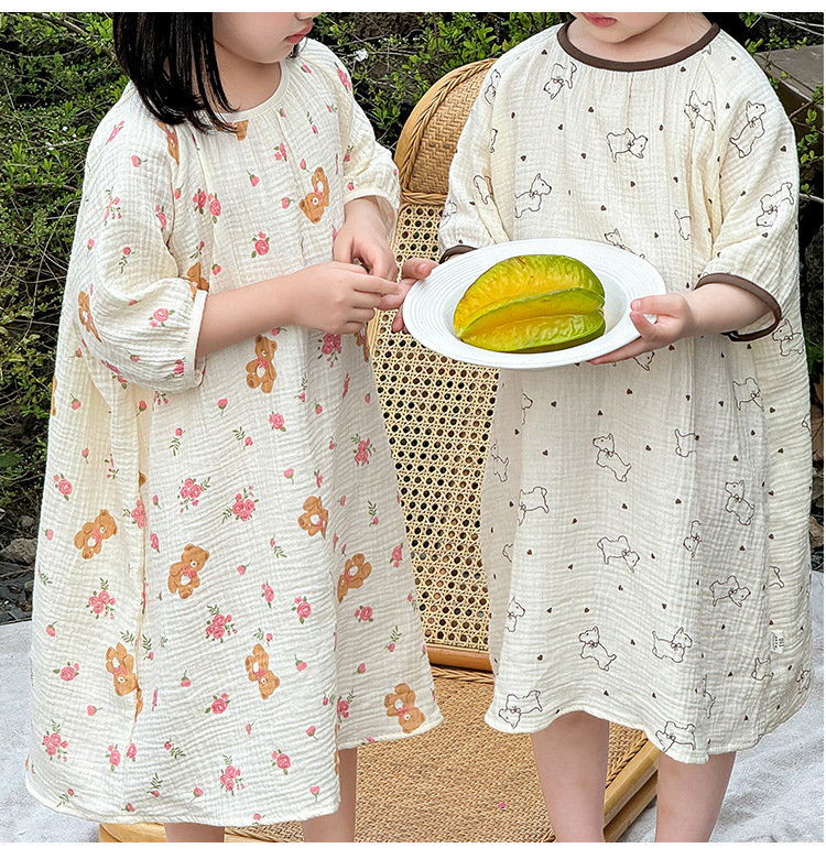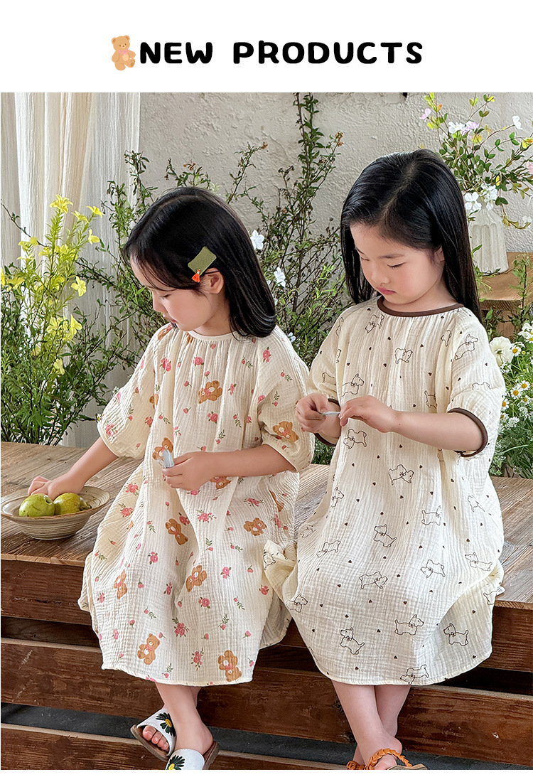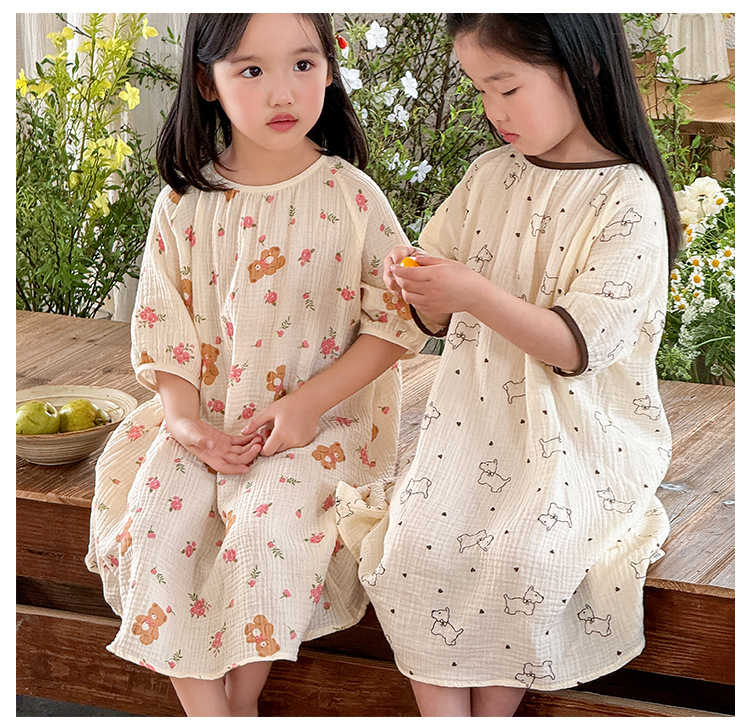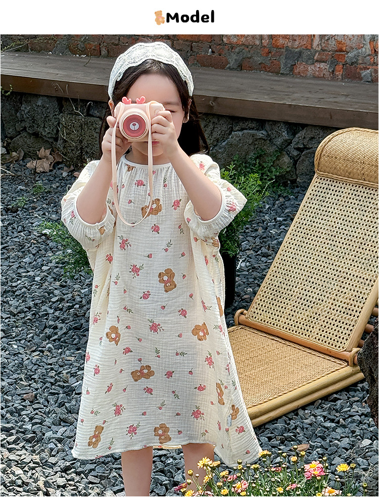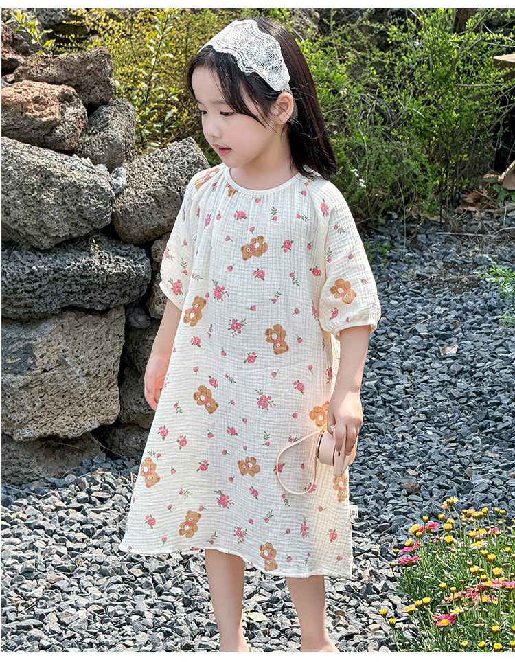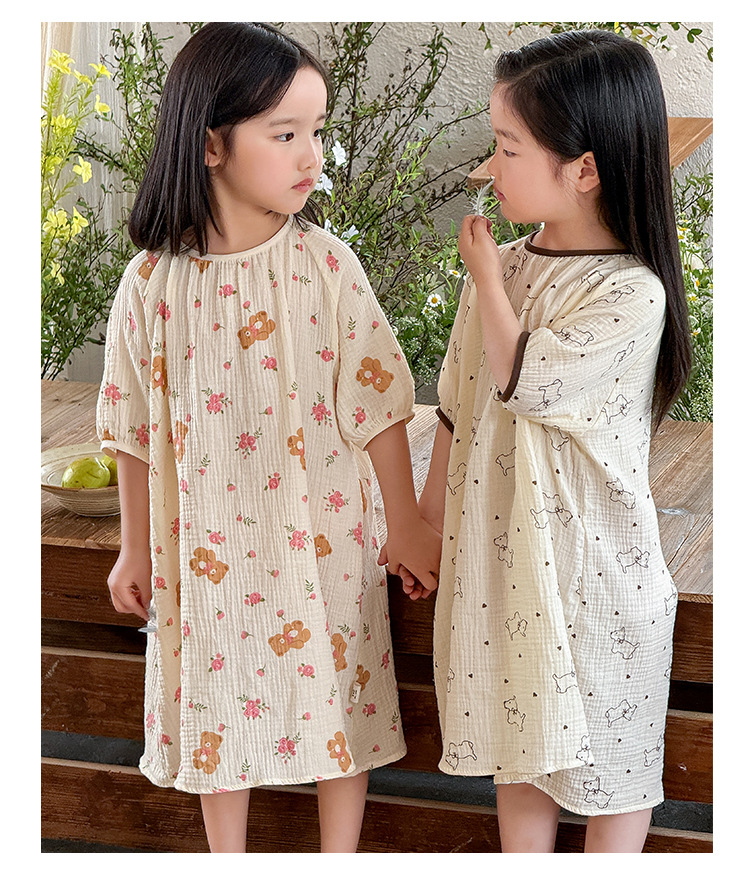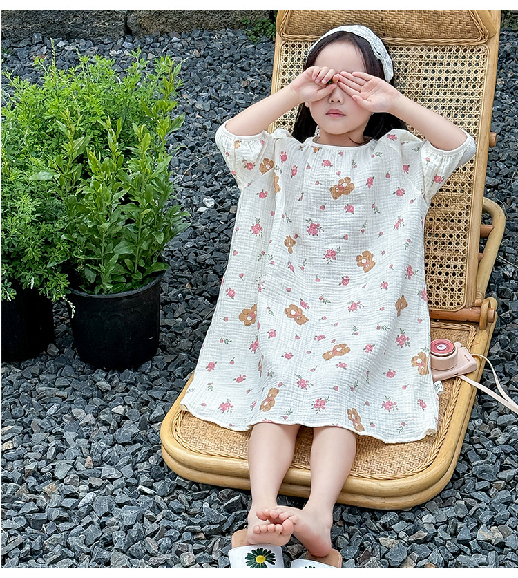 【夏季新款女童纯棉纱布睡裙】女童睡裙2025夏季纯棉纱布,越洗越软吸汗透气不闷热,薄款短袖睡衣中大童甜美居家儿童连衣裙睡衣QQ