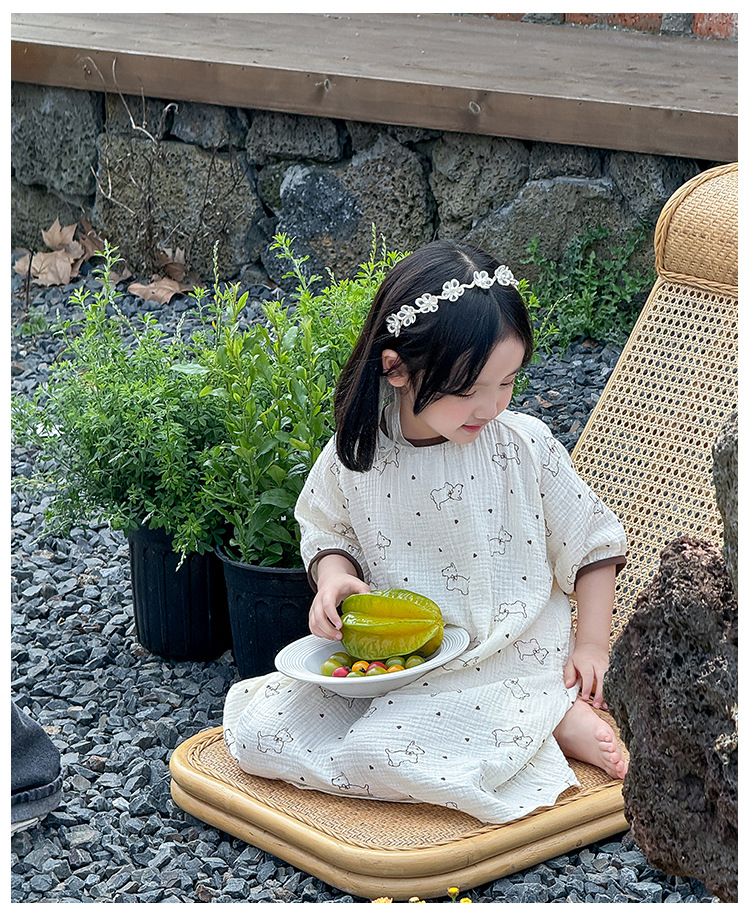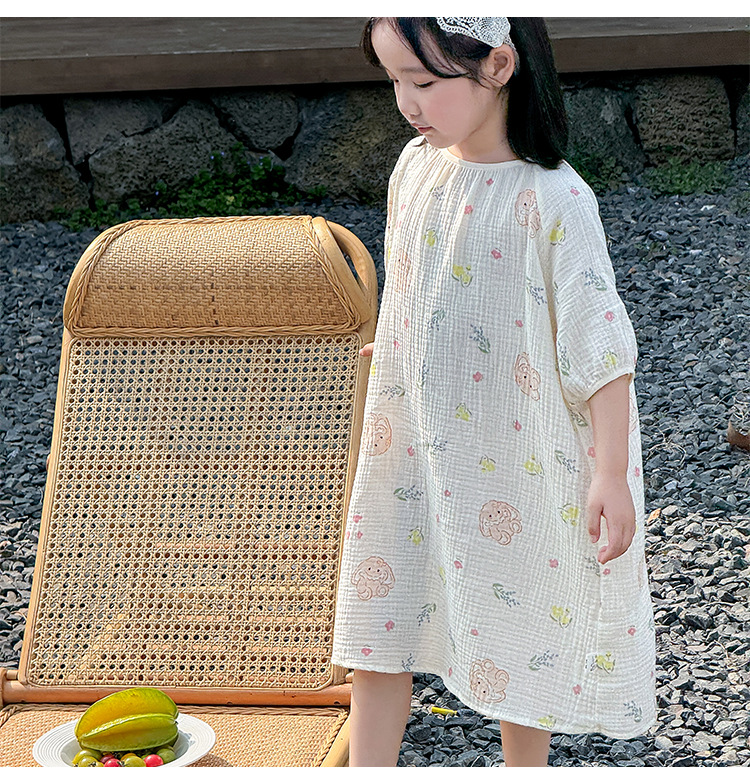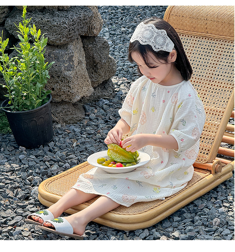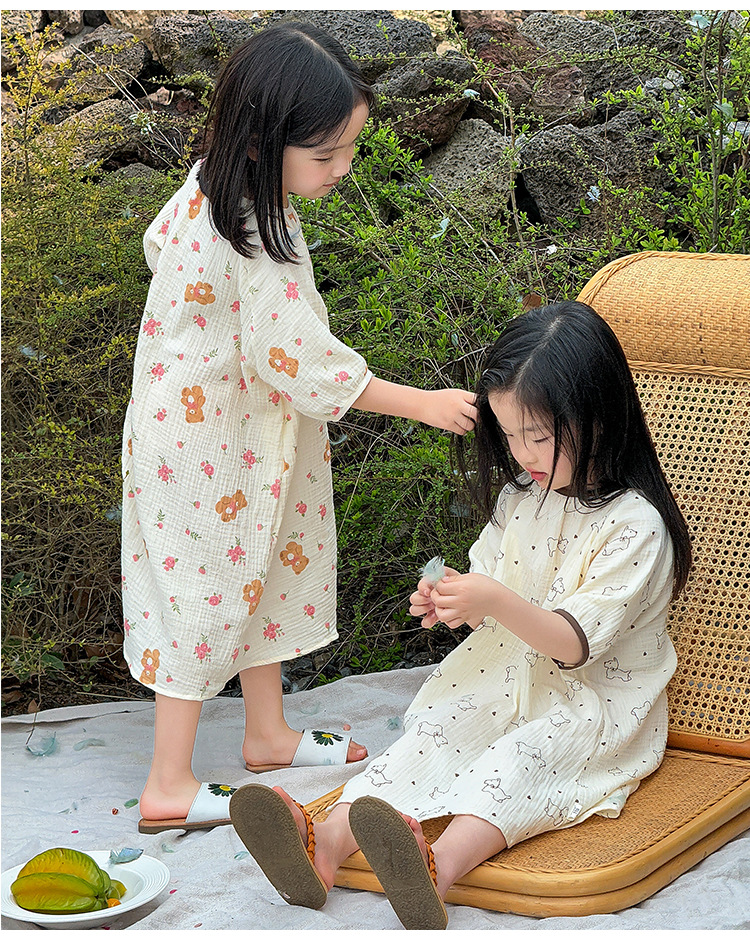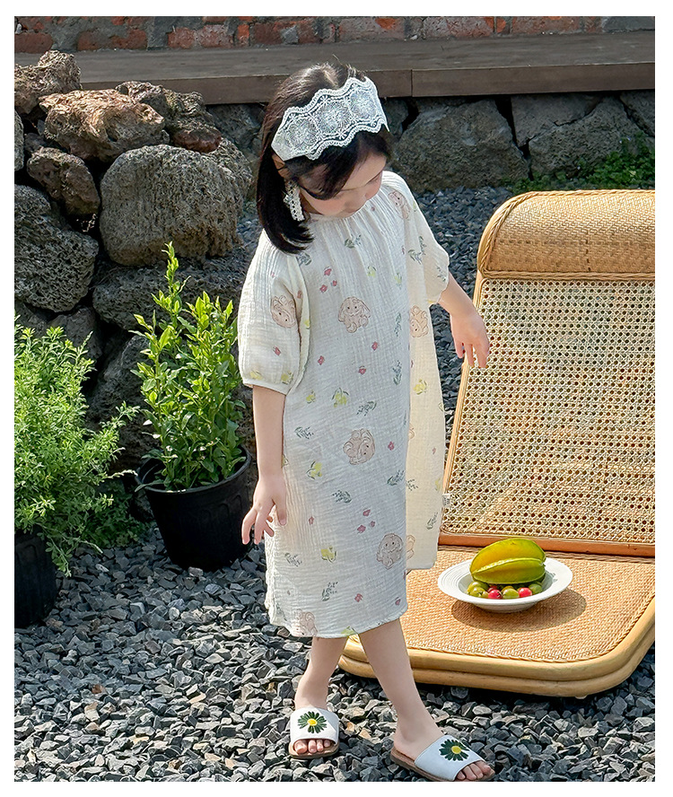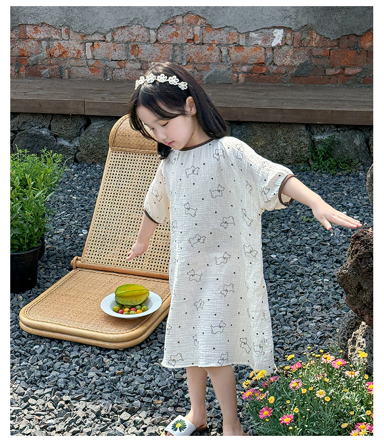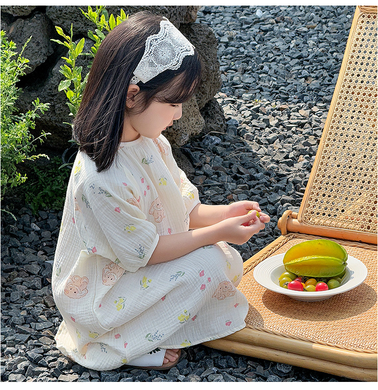 【夏季新款女童纯棉纱布睡裙】女童睡裙2025夏季纯棉纱布,越洗越软吸汗透气不闷热,薄款短袖睡衣中大童甜美居家儿童连衣裙睡衣QQ