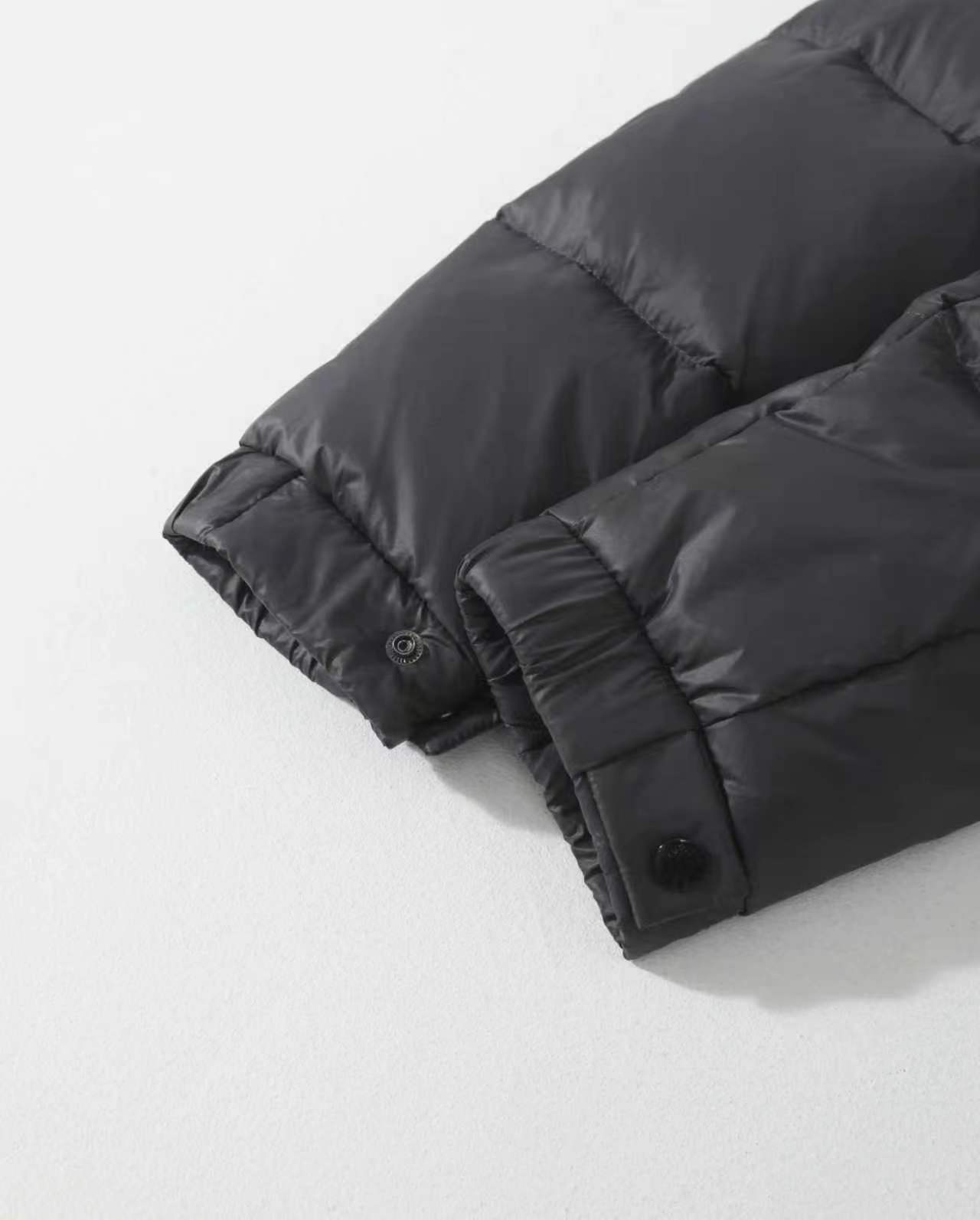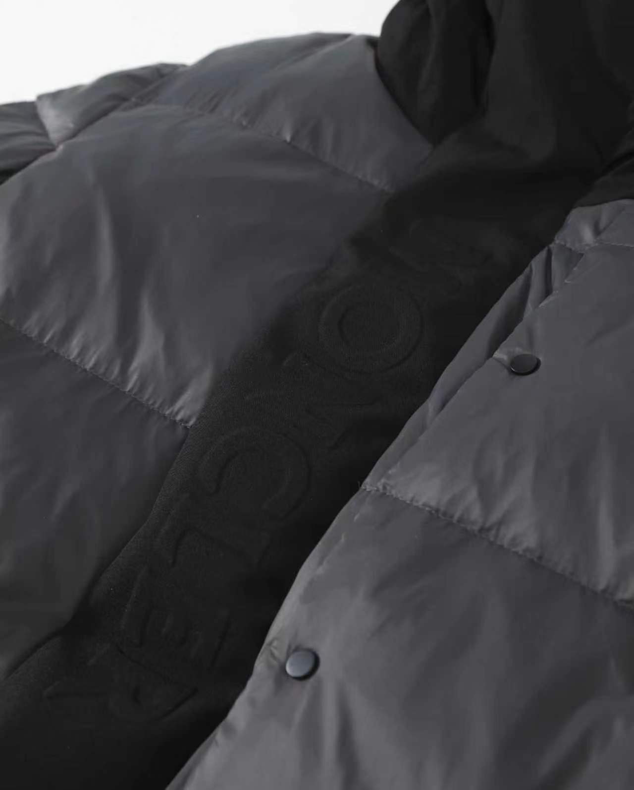 黑武士三色短款羽绒服浮雕门禁羽绒服 面包服,内填充90%白鹅绒,保暖舒适且不臃肿,大方块而形成的面包服版型,每块方格都是均匀的分配,牢牢的锁住羽绒,温暖着你的身形!内里采用的是黑标主唛全新设计,不失个性,又显低调! 门襟,凸显了品牌,又有着一定的美感,层次感!原版定制面料,密度超高高,带着一定的色泽感!内里撞色面料,是先去定染颜色的,版型干净利落的剪裁,上身一点都不显臃肿!让你温柔的度过寒冷的冬季!没有华丽的装饰,也没有特殊的设计,就是简简单单。但是会让你有着怦然心动的感觉!