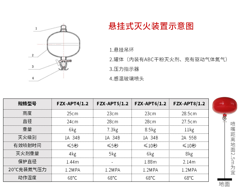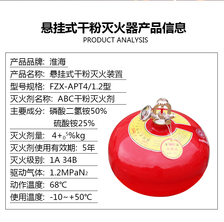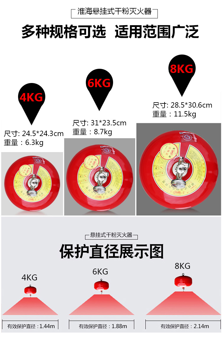 6公斤 吊挂悬挂式干粉灭火器 球形装置 工厂店铺仓库学校医院