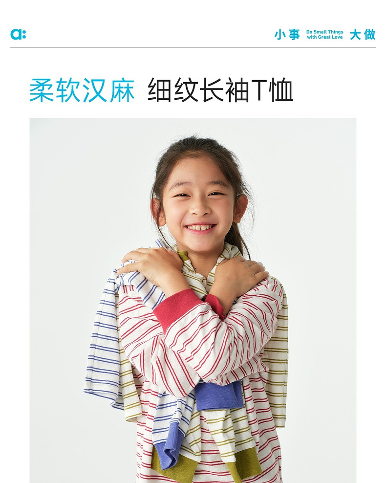 【春Vol.3】allblu幼岚【柔软汉麻】儿童细纹长袖T恤26春夏男童女童吸湿透气