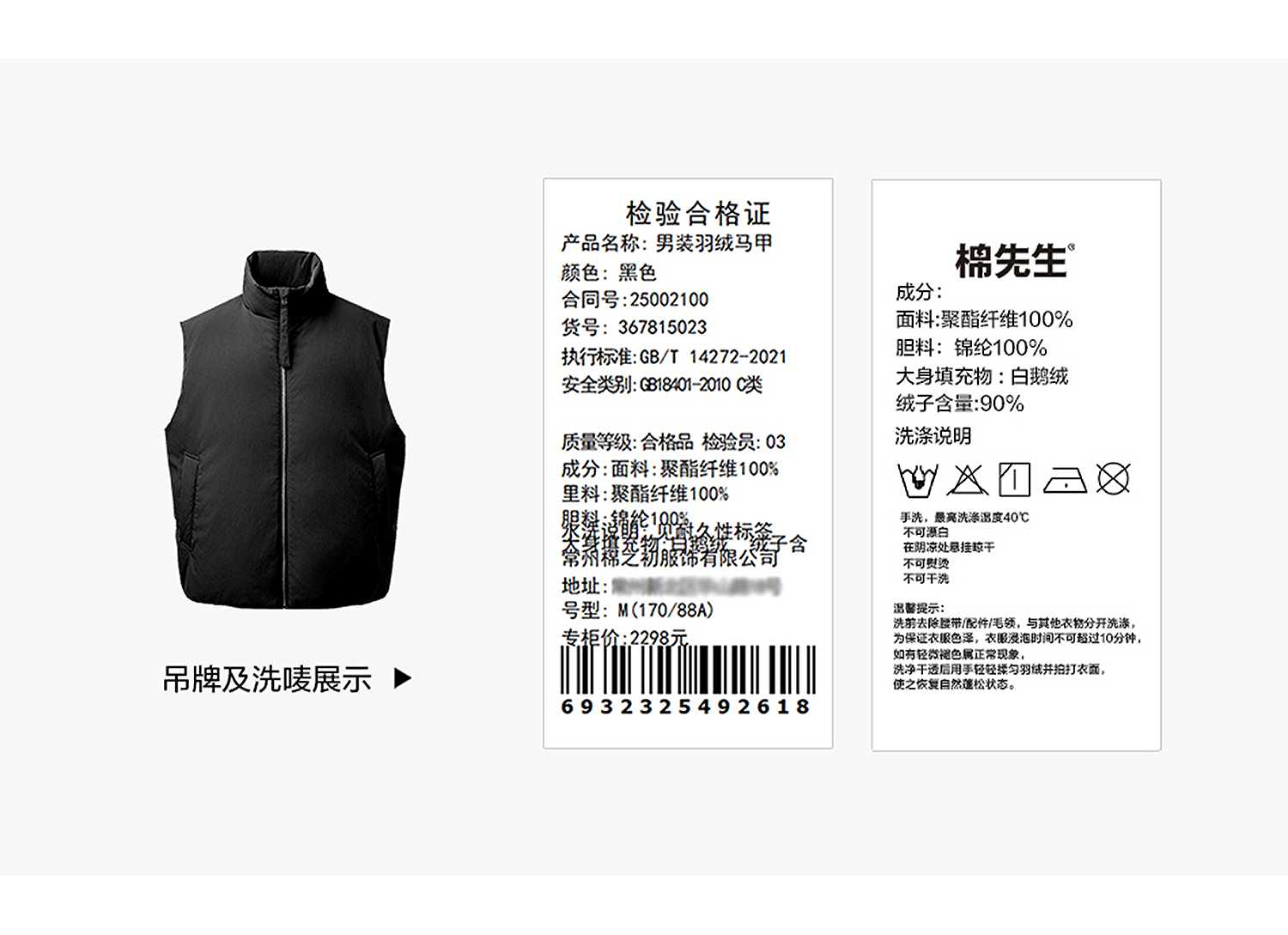 棉仓367815023-安心白鹅绒酵醒棉三防立领羽绒马甲