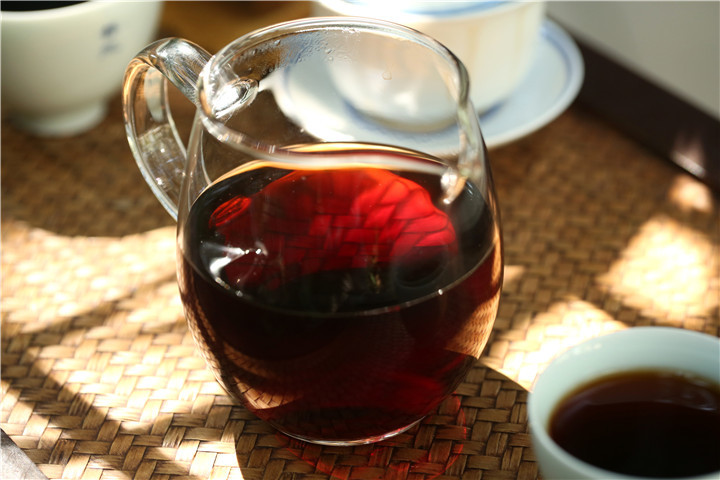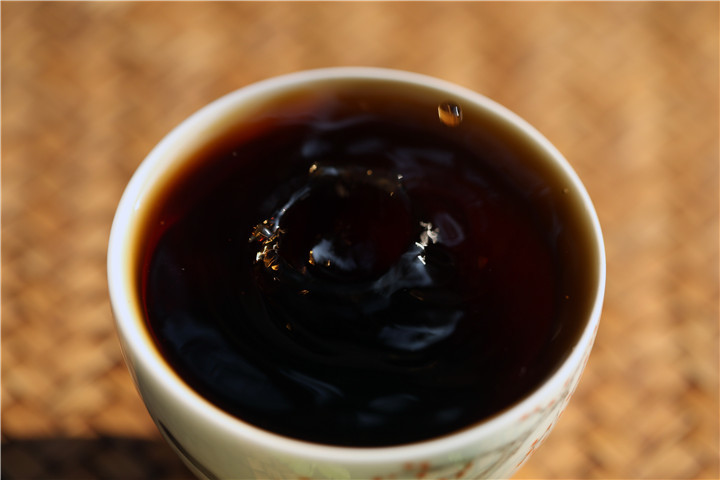 茶汤酽红浓艳,通透莹澈。杯底留香兼具焦糖香、陈香。