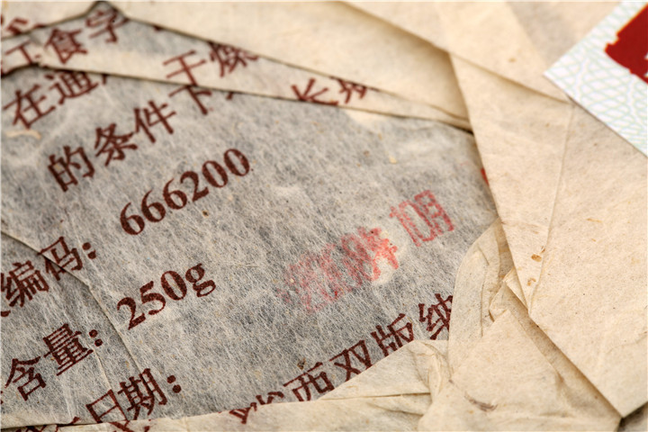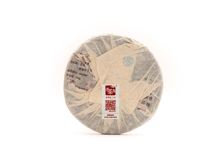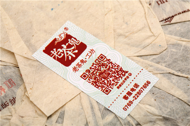 出仓后,单饼、整筒均加注老茶鬼品质核验标志。