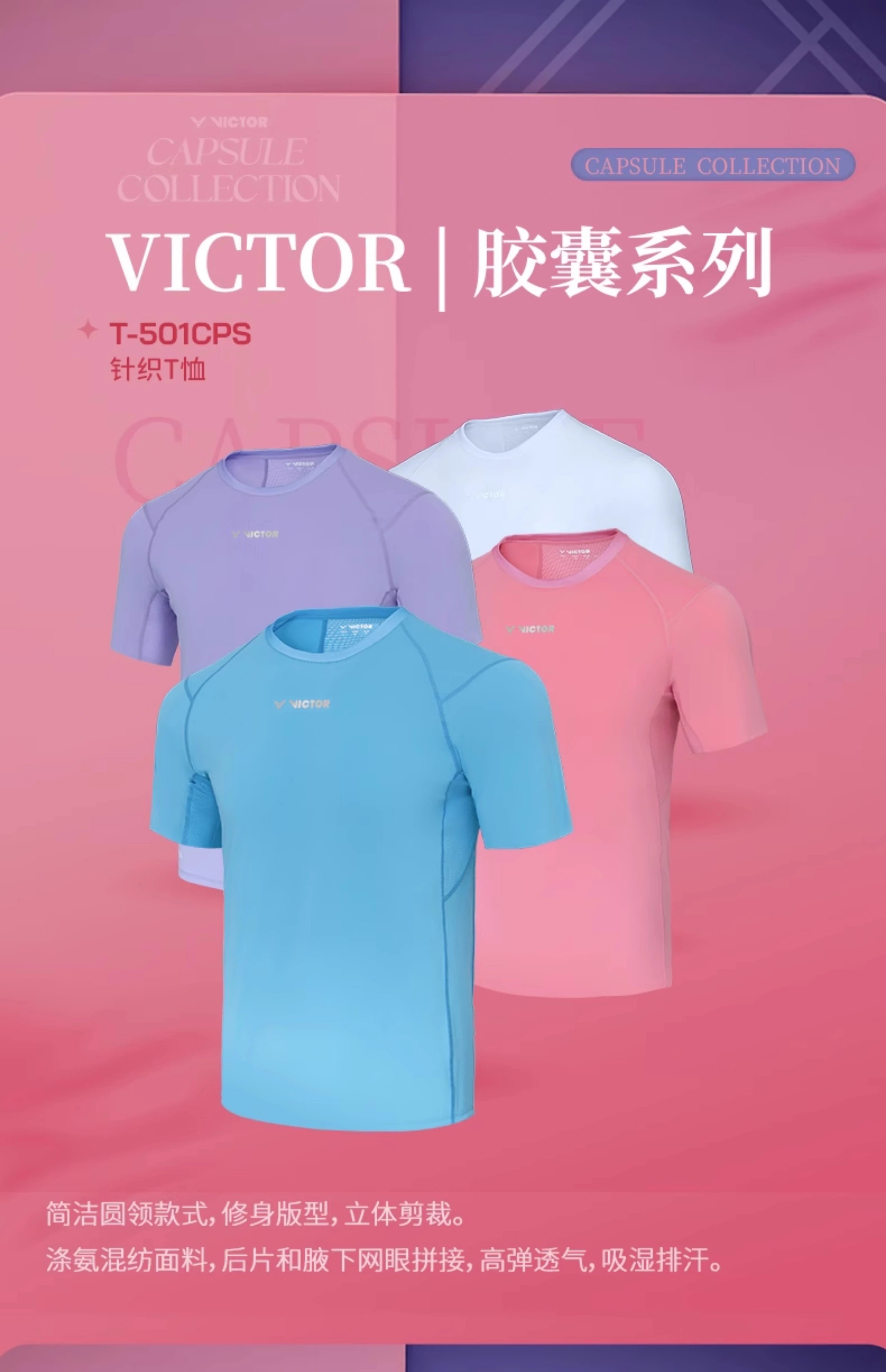 胜利威克多 胶囊系列 中性款 运动针织T恤 T-501CPS