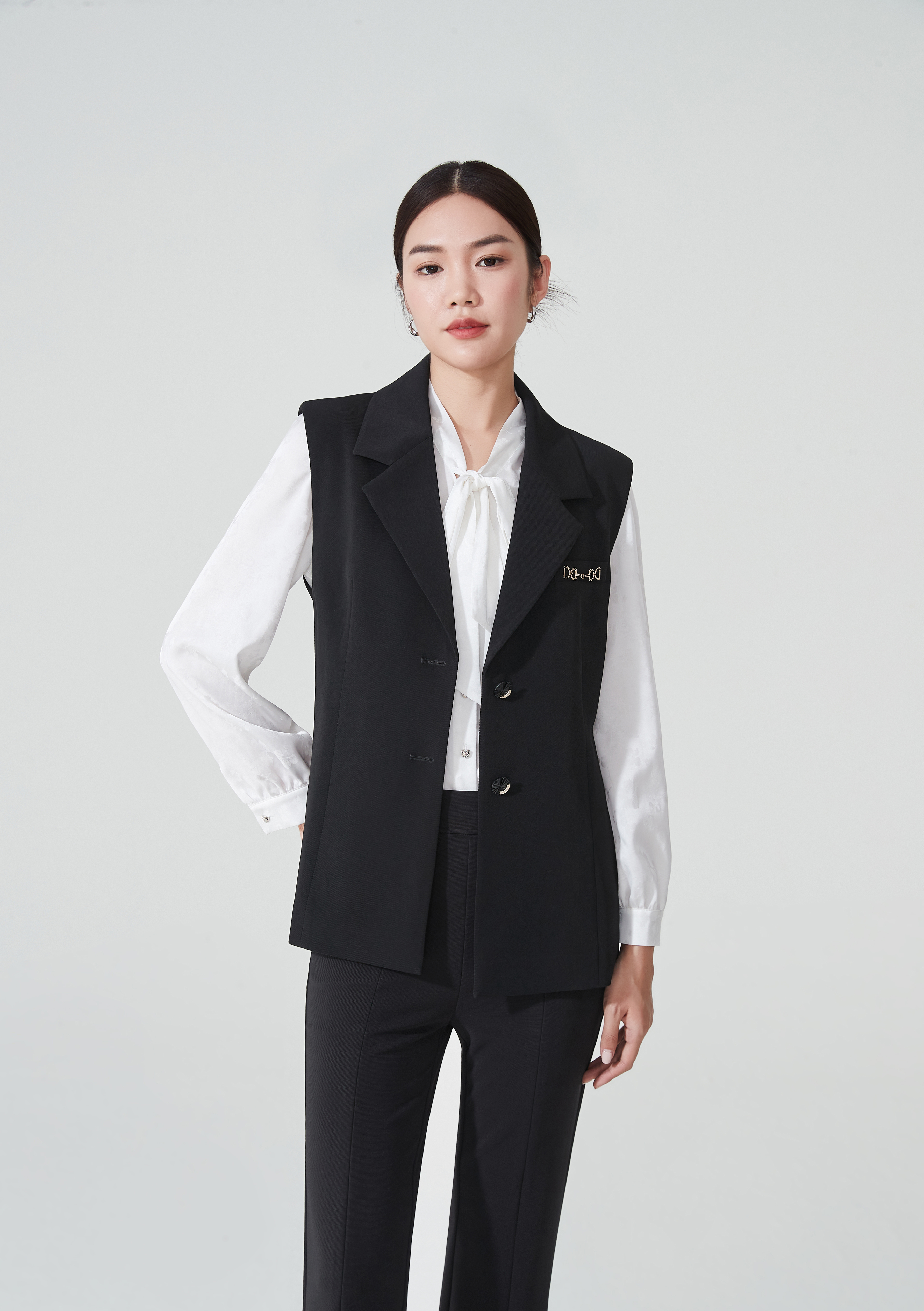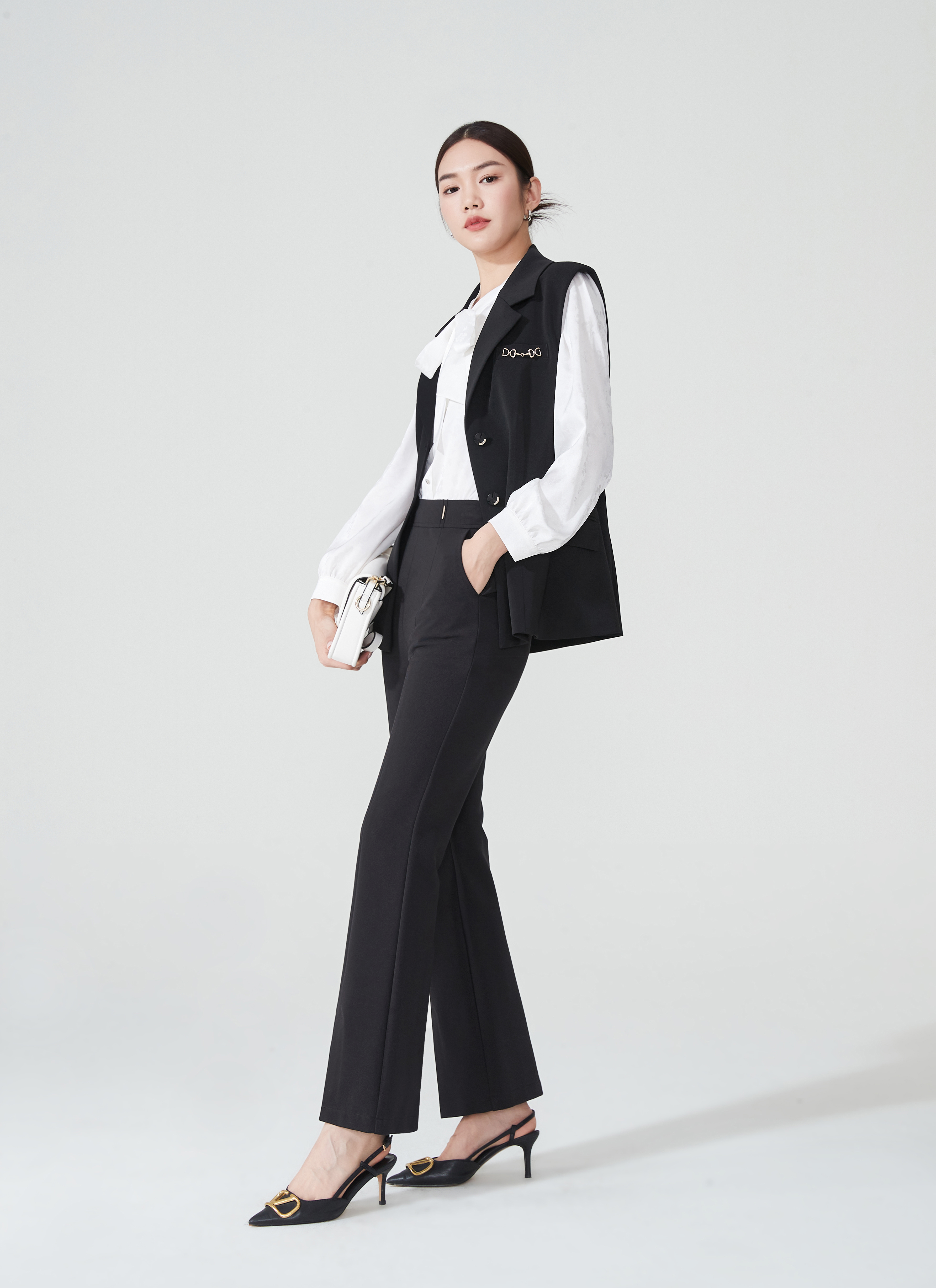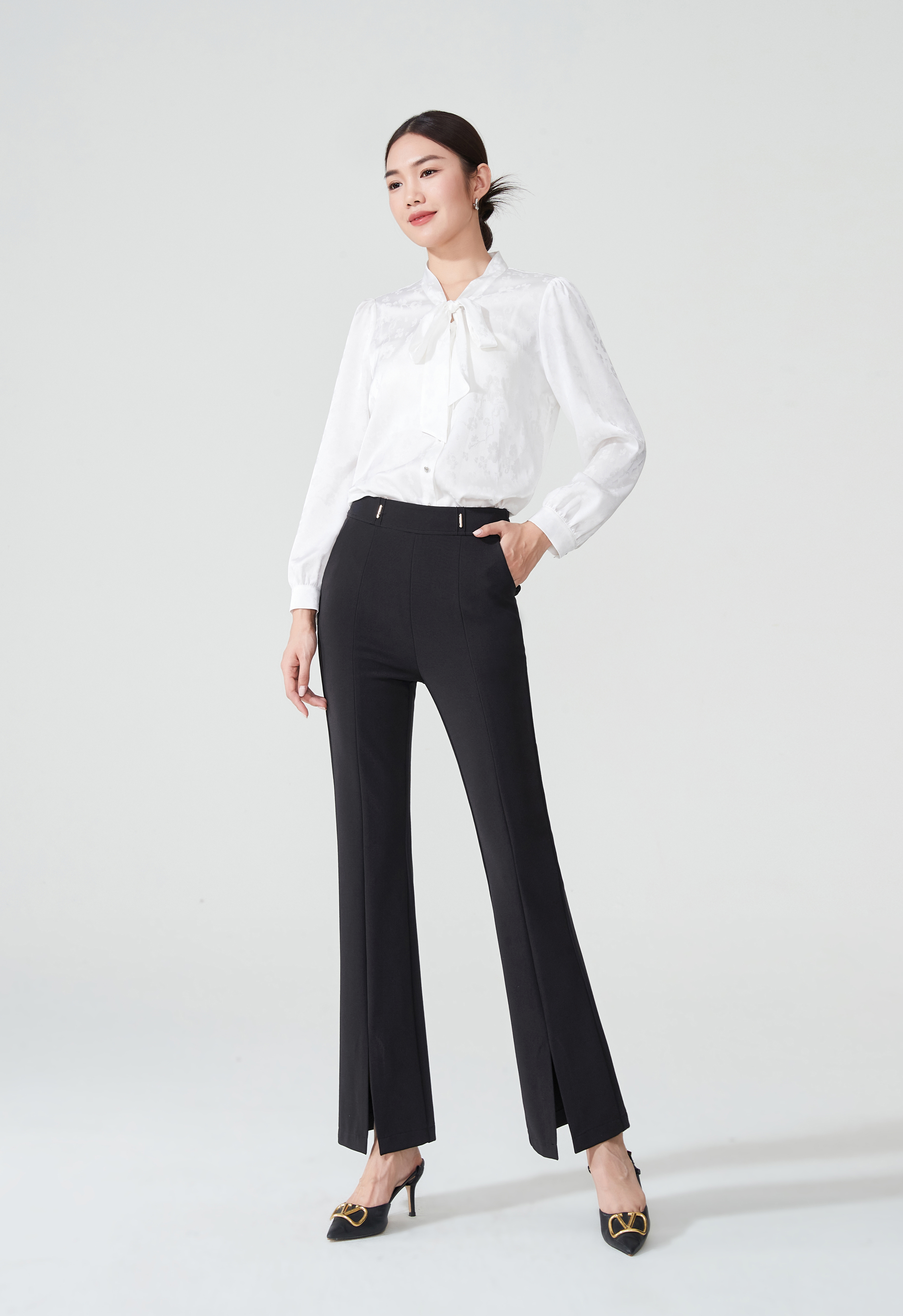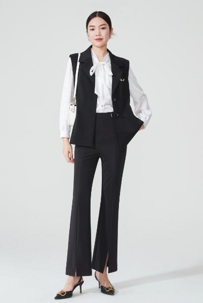 SZ2L57_漆黑色_裤子_夏季_高腰开叉微喇九分显瘦气质通勤_高级女装_BERNIEELEN 伯妮斯茵