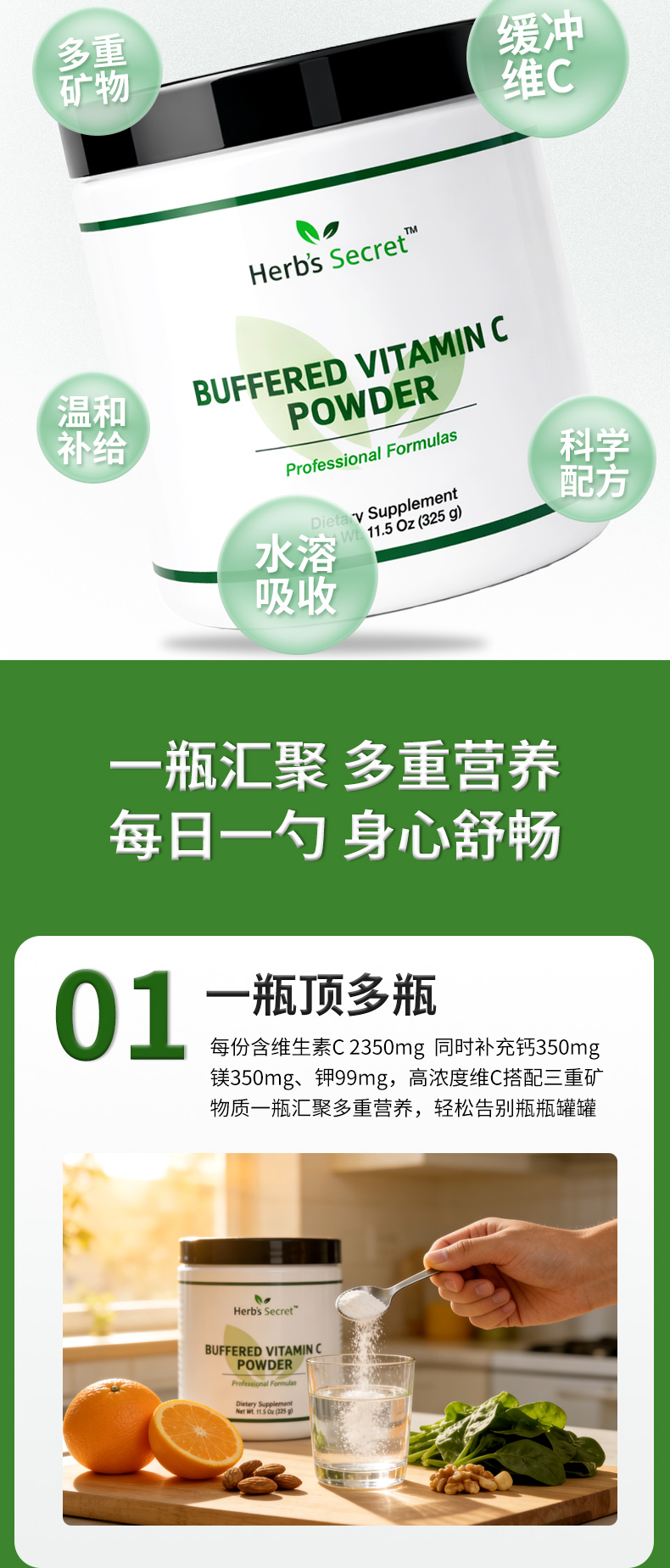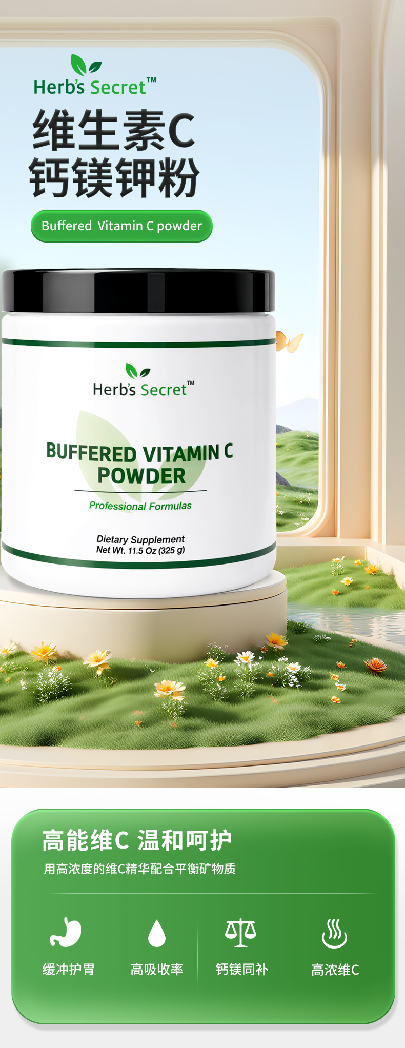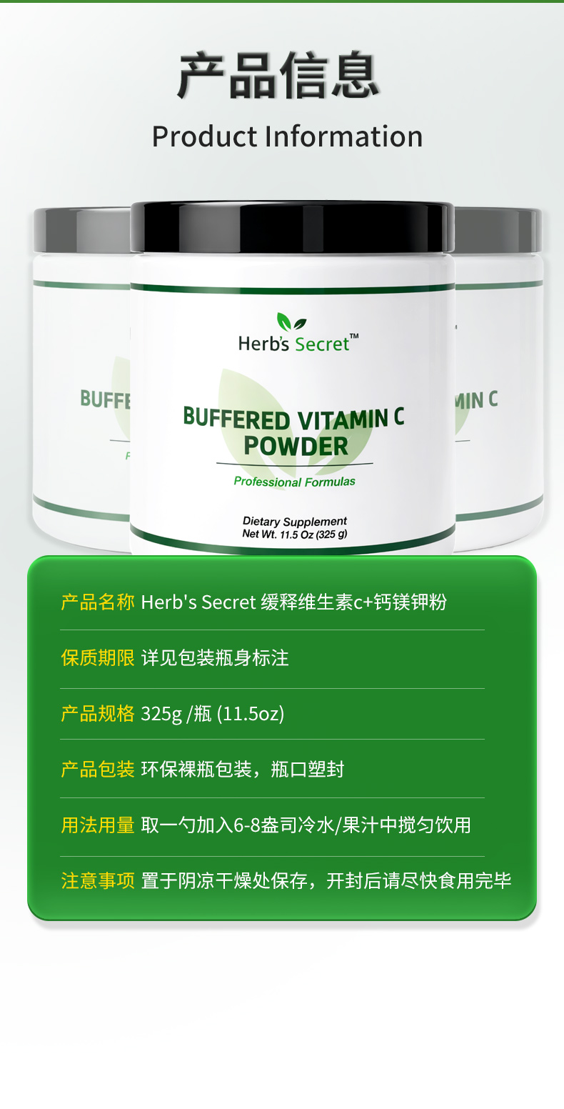 Herb’s secret缓释维生素c+钙镁钾粉VC 325g