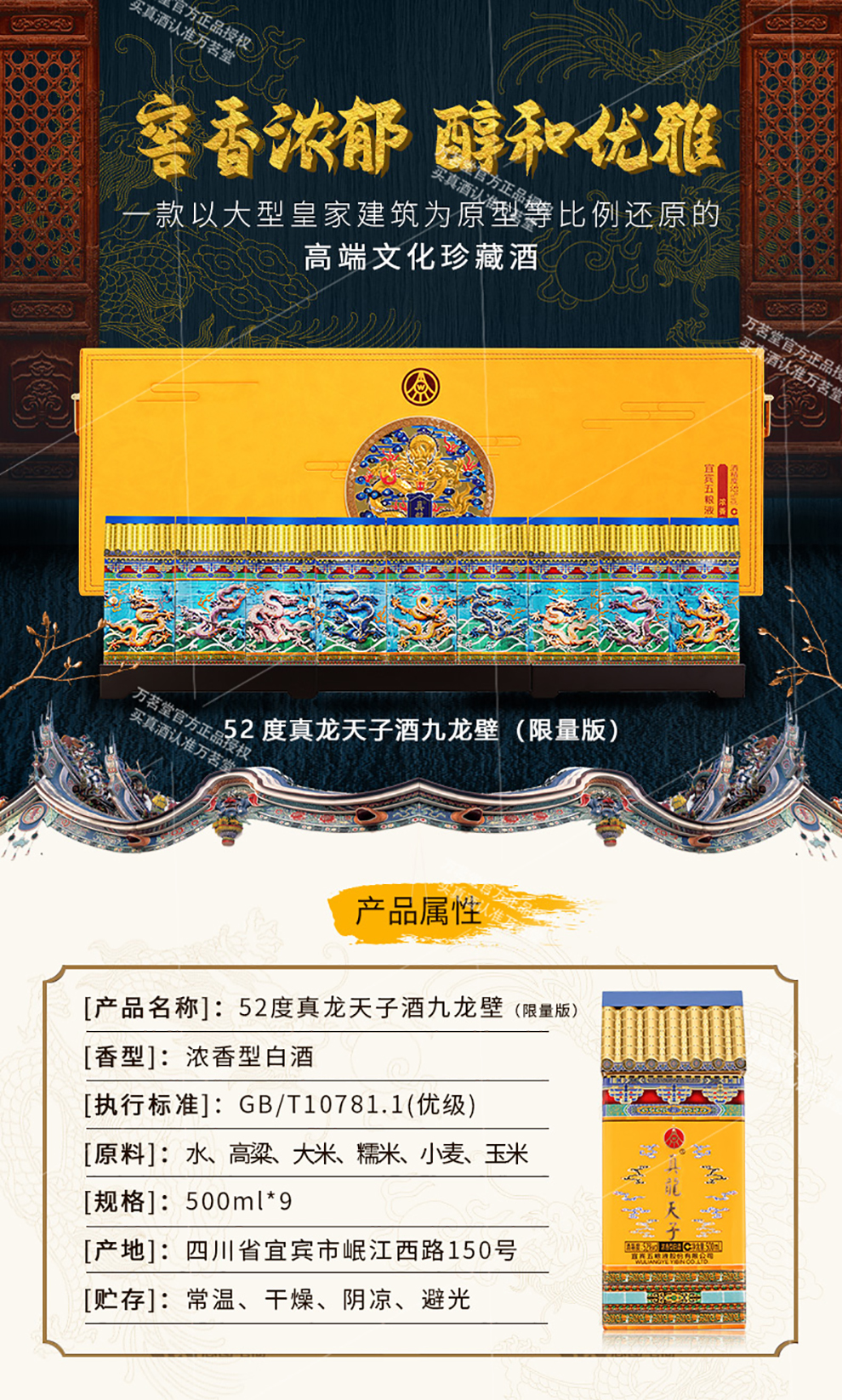 真龙天子酒九龙壁限量版 52度浓香型白酒 500mL*9瓶 高端文创酒 送礼白酒