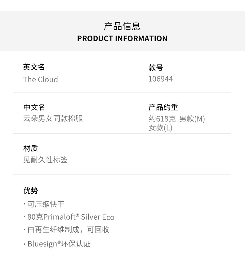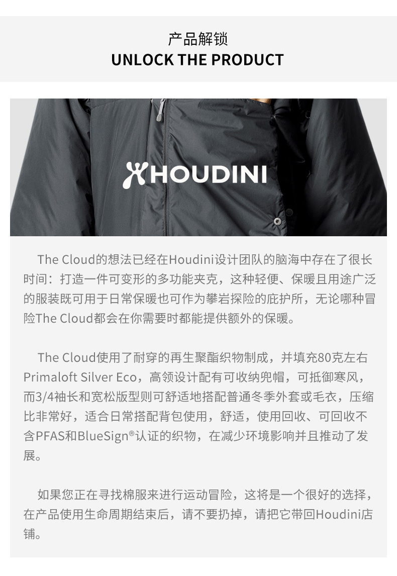 HOUDINI胡丁尼 The Cloud 云朵 户外保暖系列男女同款棉服带帽外套106944