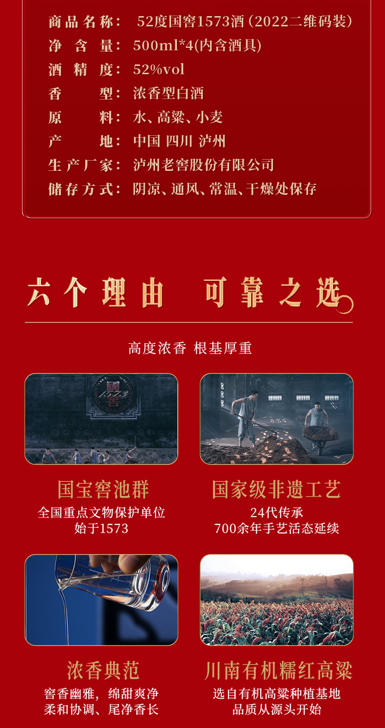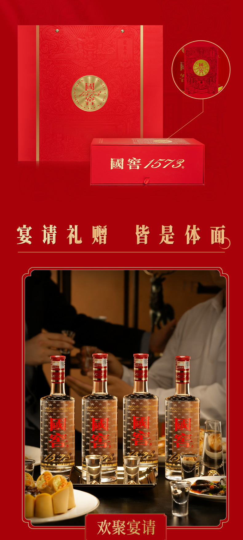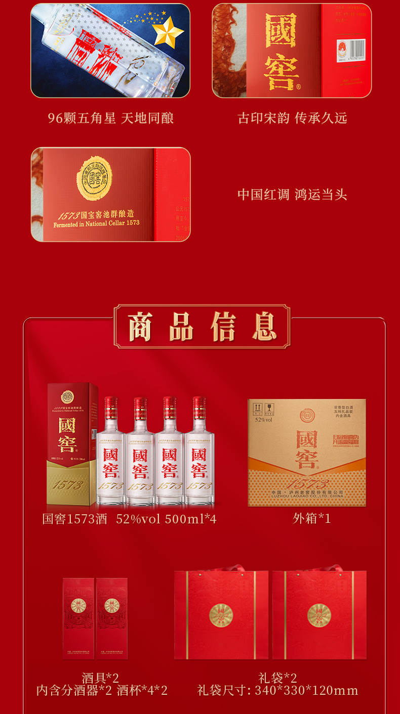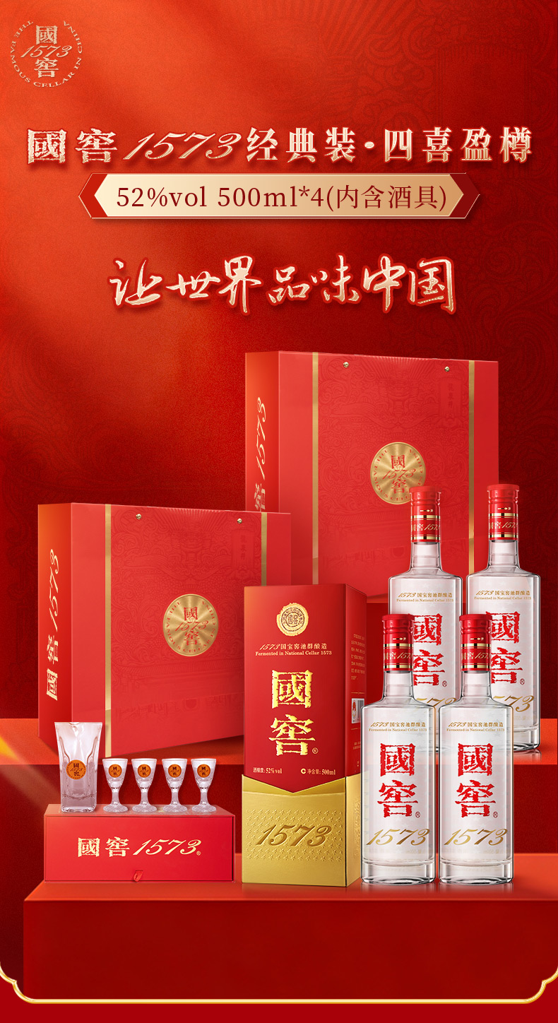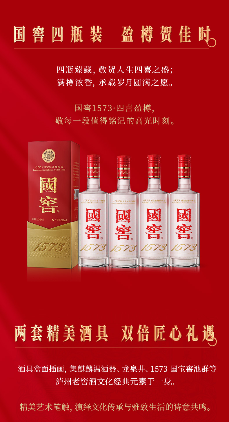 【扫码有好礼】52度国窖1573酒四喜盈樽礼盒(五码礼品装)500ml*4 泸州老窖官方旗舰店