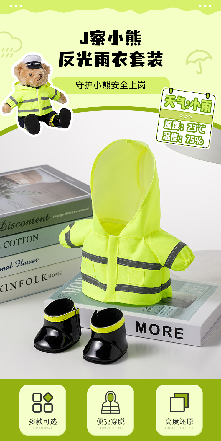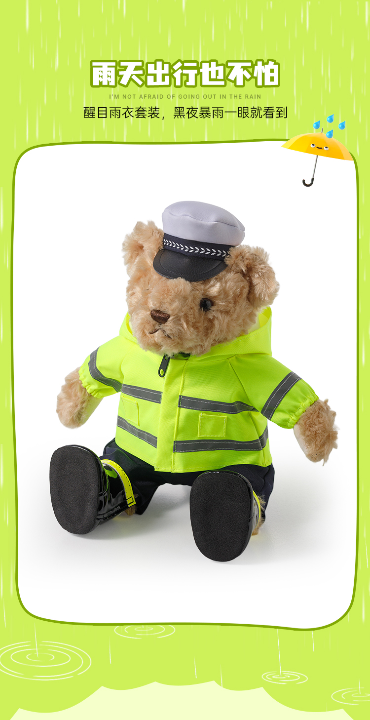 【J察小熊雨衣套装】儿童毛绒公仔熊熊雨衣雨鞋套装配件布娃娃玩偶替换衣服