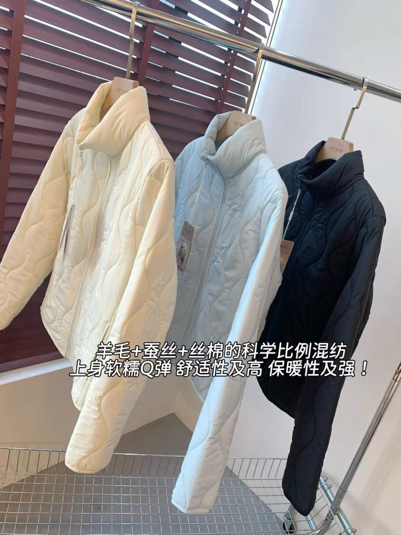【超模君严选 可机洗不会跑绒!】特妮娜 立领羊毛蚕丝气绒服 品牌同款面料 上身升温快 久穿如新 三层保温结构 丝绵+羊毛+蚕丝混纺 简洁小立领 弹力捆边避免冷风 显瘦百搭