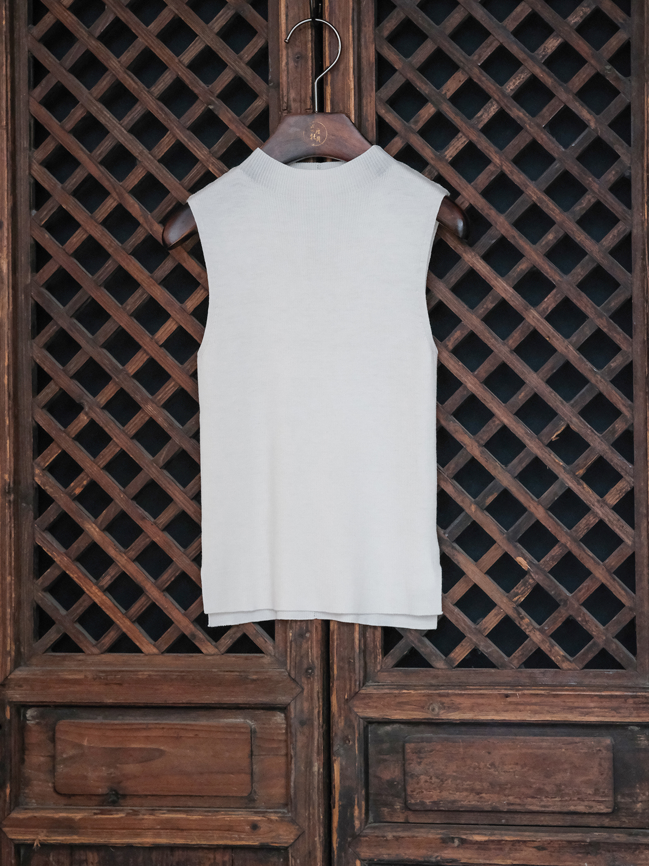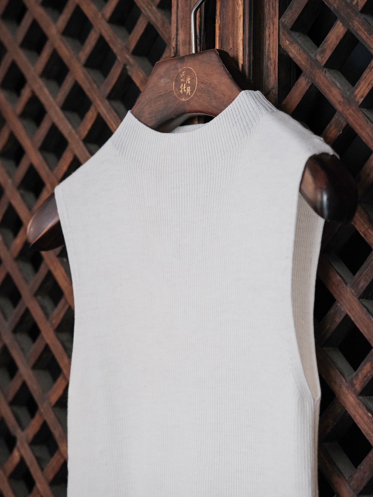 盛唐婧| 精纺羊毛气质半高领针织背心-白色