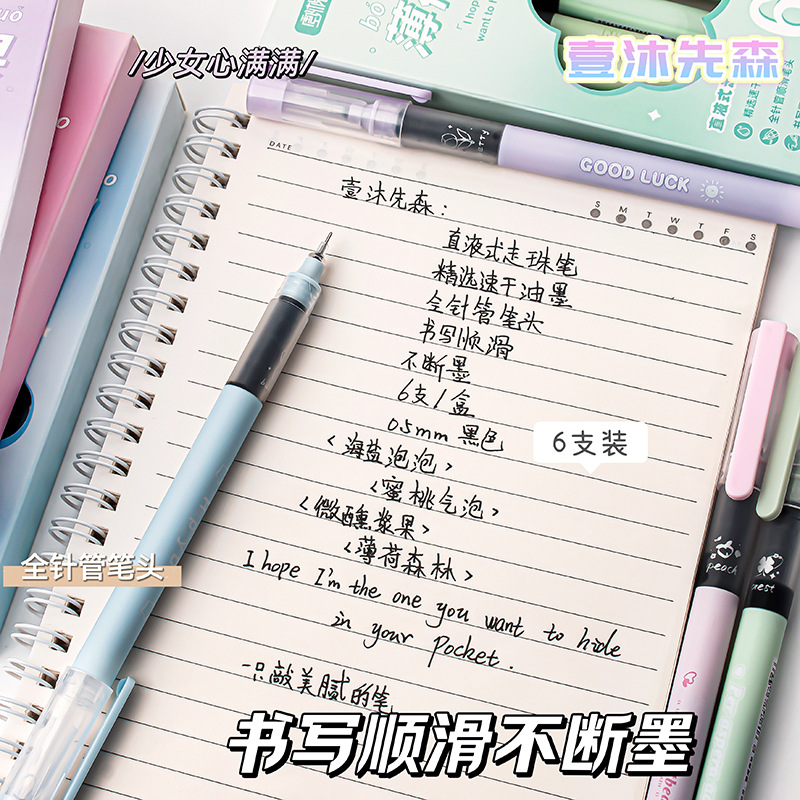 【买一送一❗️莫兰迪直液式中性笔】马卡龙走珠笔套装,字迹清晰,速干成型!开学季学生考试中性笔刷题笔0.5黑笔笔芯顺滑水笔L