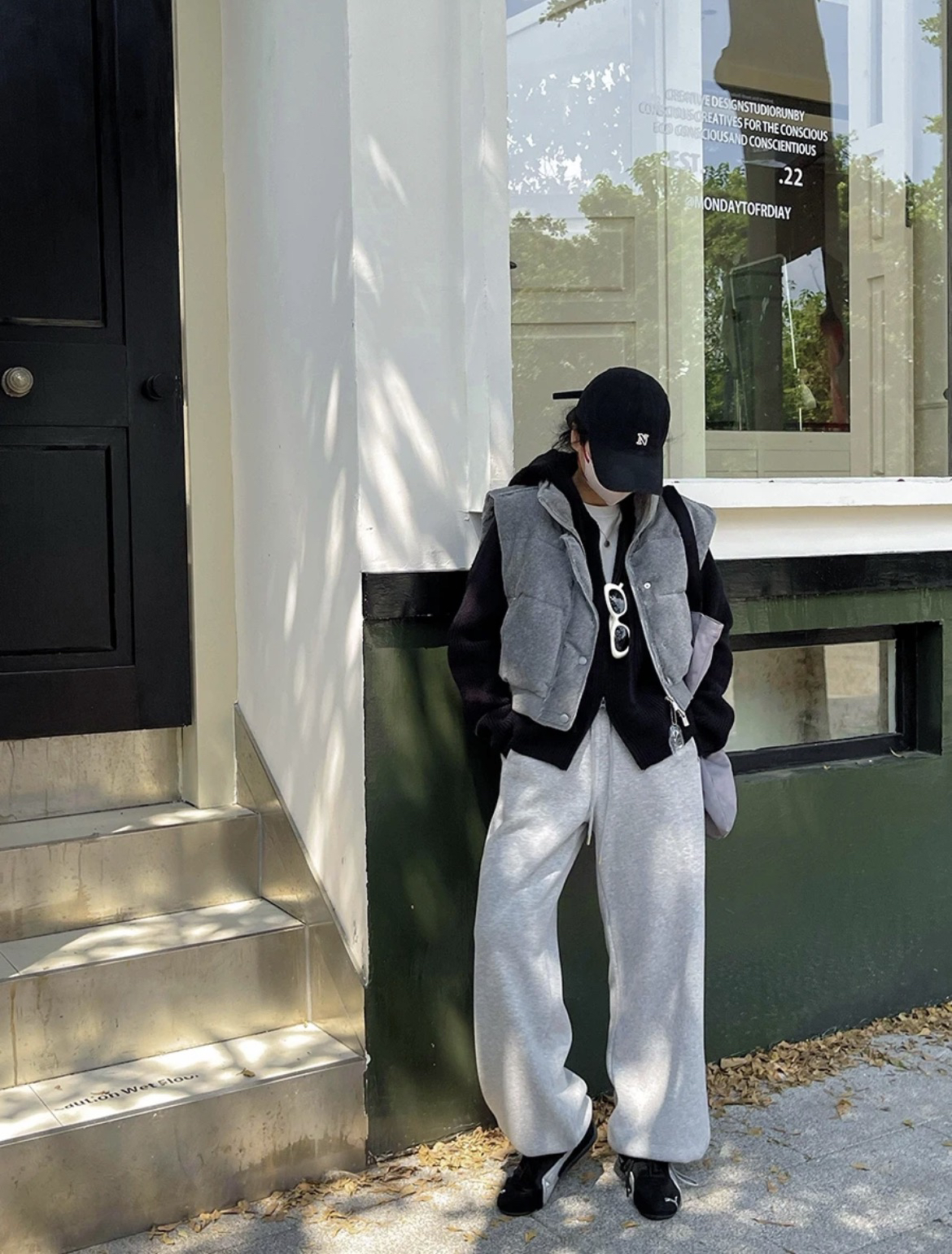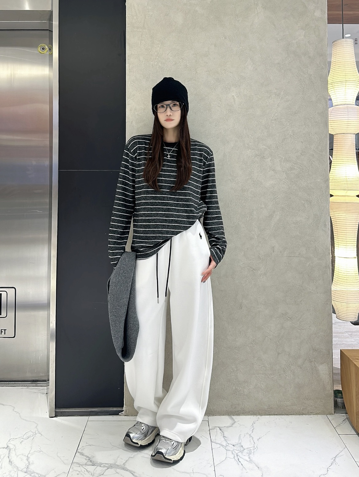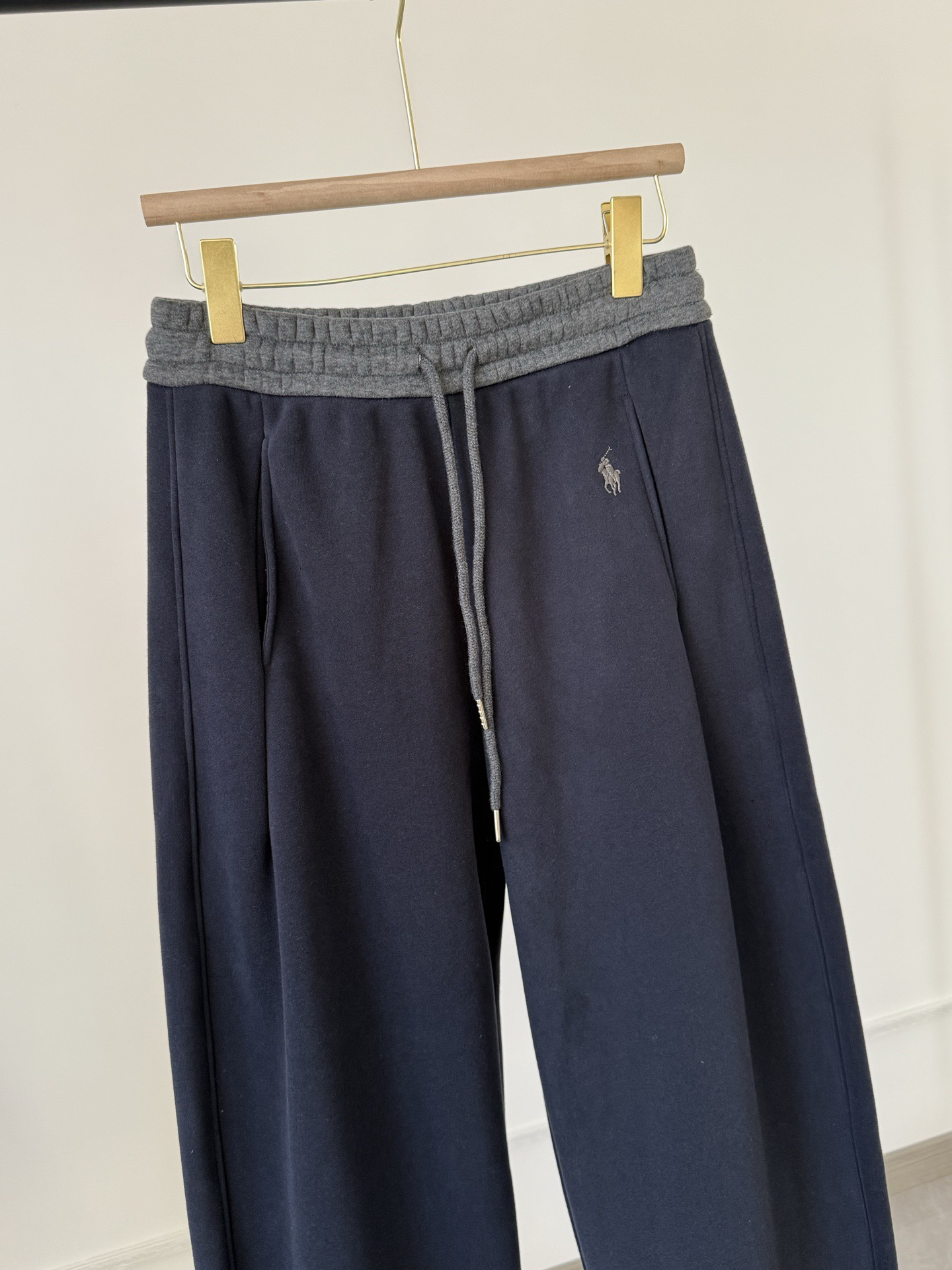拉夫 拼色腰 加绒弯刀裤 两穿卫裤