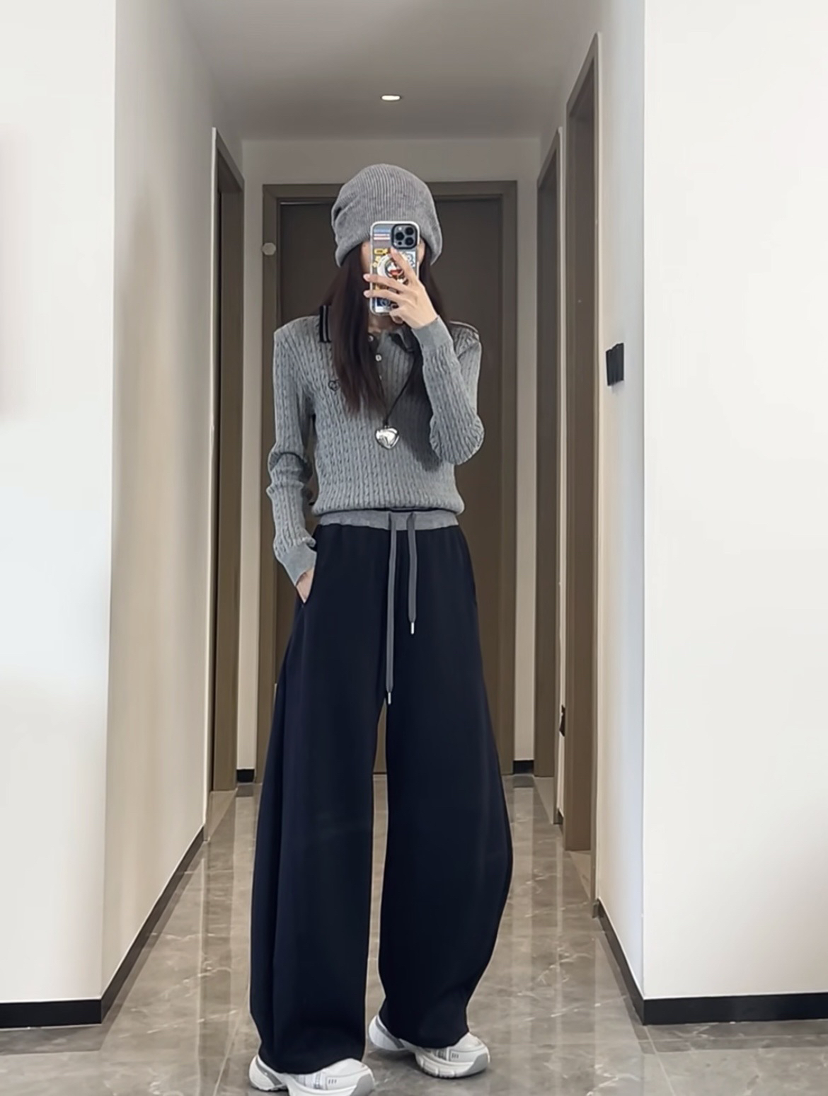 裤长长了也不怕,稍微一收就不会拖地了哈