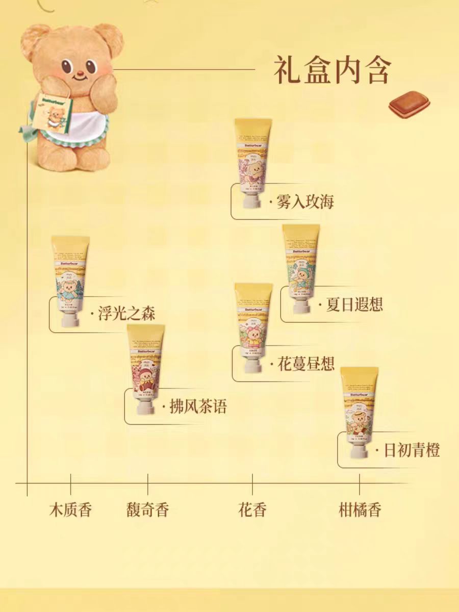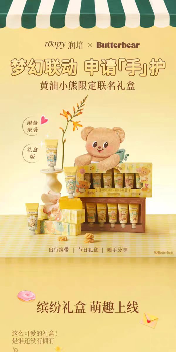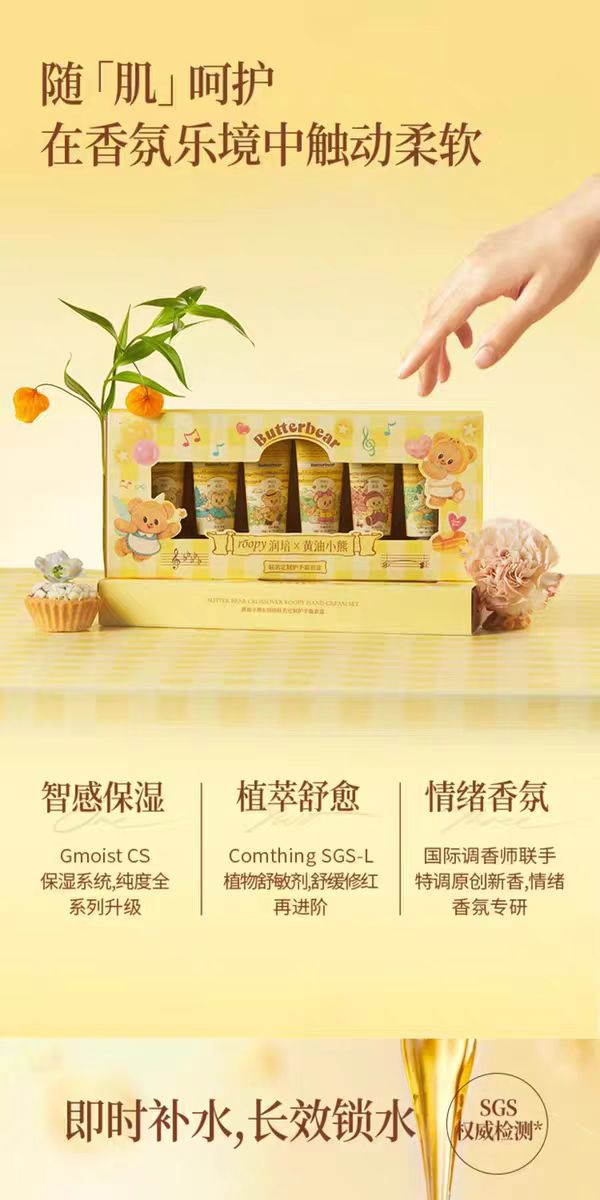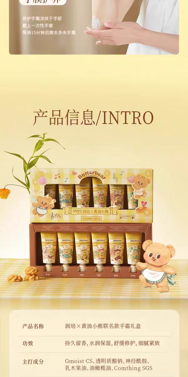 4楼Eubelle欧蓓 roopy润培护手霜12g*6支/盒 三丽鸥黄油小熊礼盒套装 滋润补水防干裂 吊牌价:56元 活动价:49元